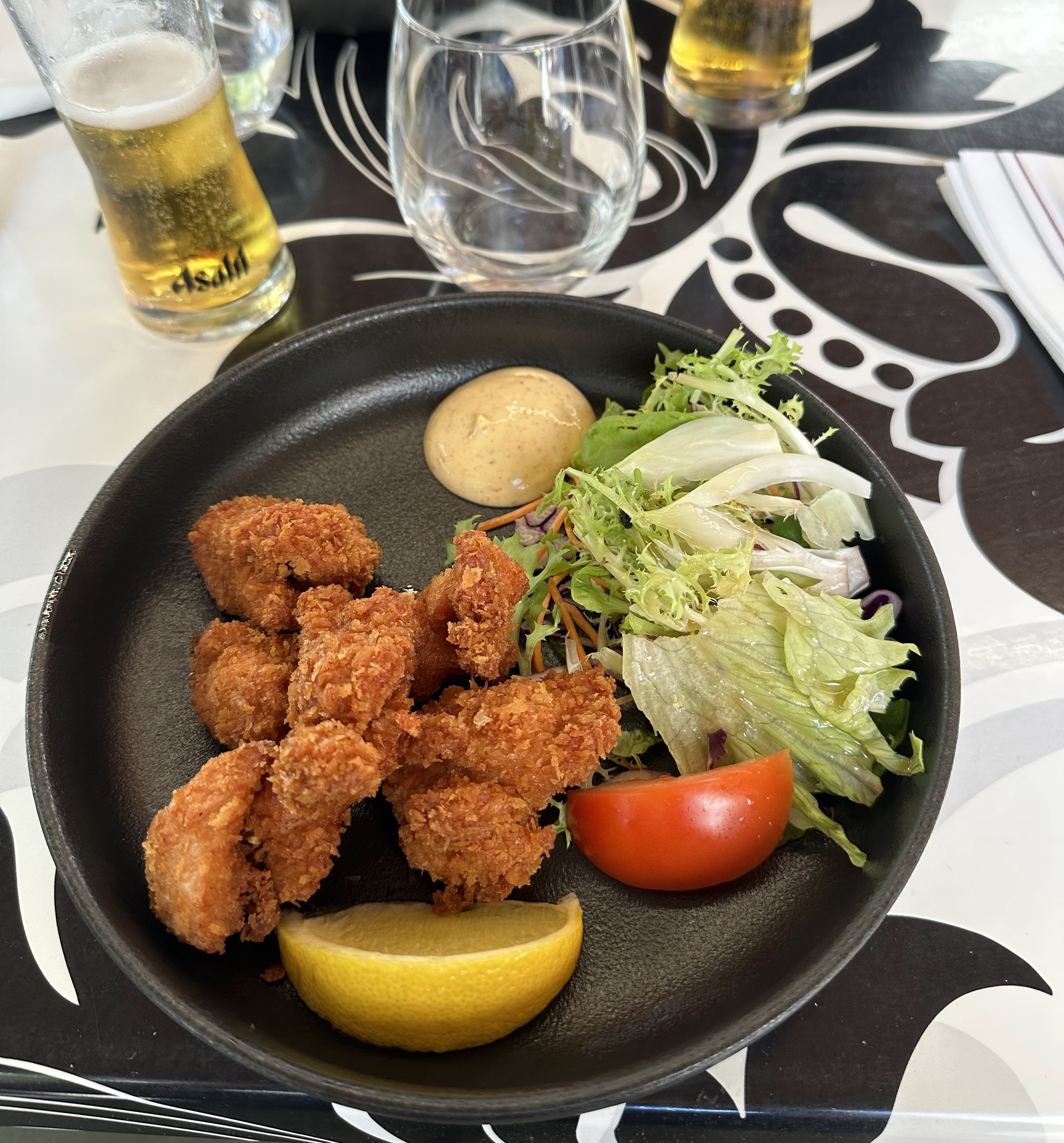 Je recommande ce restaurant pour leur spécialités asiatiques uniquement et encore la crevette tempura n’était pas excellent et je la soupçonne d’être surgelé tout comme les beignets de calamar.. le reste était bon Nous avons aussi commandé un fish and chips mais malheureusement lui aussi surgelé et les frites aussi. J’ai demandé un doggy bag on m’a ramener la boîte pour que je me fasse moi même cela ne pose pas problème mais je n’y étais pas habitué.