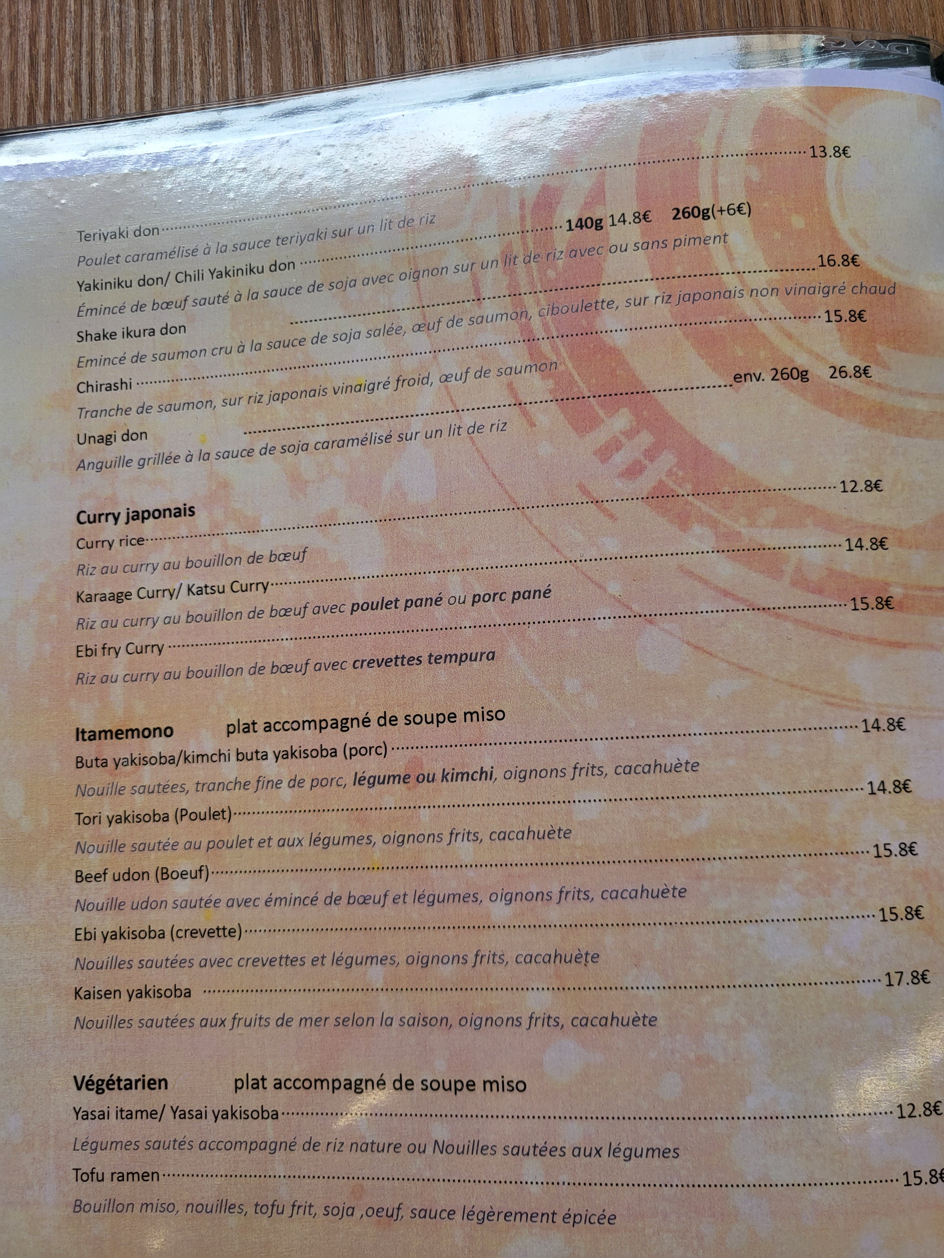 Posté le 27/07/2021 à 20:09"Bon petit restaurant. N’étant pas spécialiste de la cuisine japonaise je ne saurai critiquer objectivement mais nous avons personnellement apprécié nos plats et notre entrée. Prix corrects. Serveuse très sympathique."
