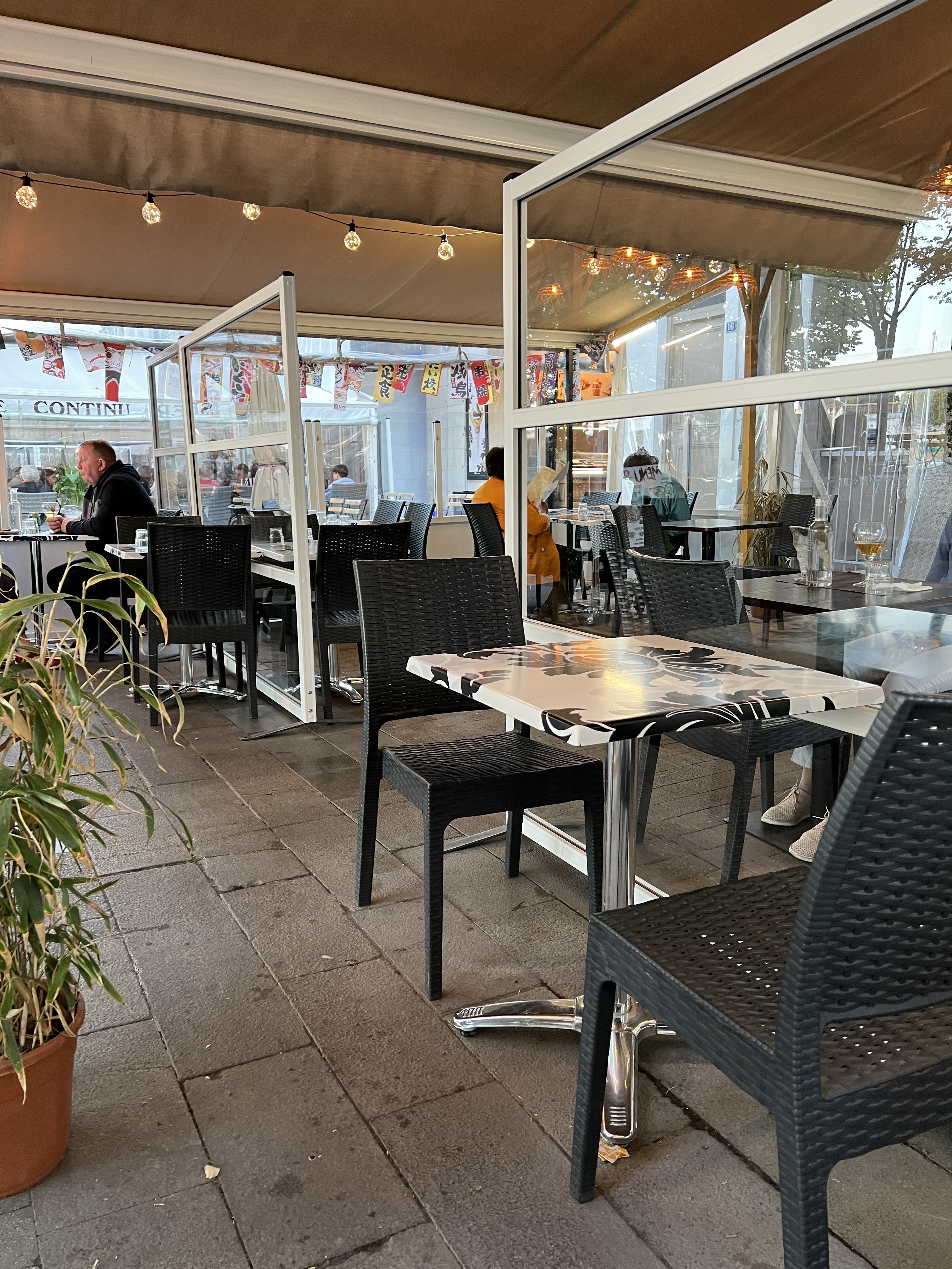 La terrasse est assez grande et c’est agréable de manger dehors sur le port de La Rochelle. Les prix sont totalement raisonnable, les menus aussi. On s’est tous régalés ! Je recommande les gyozas et les ramen!