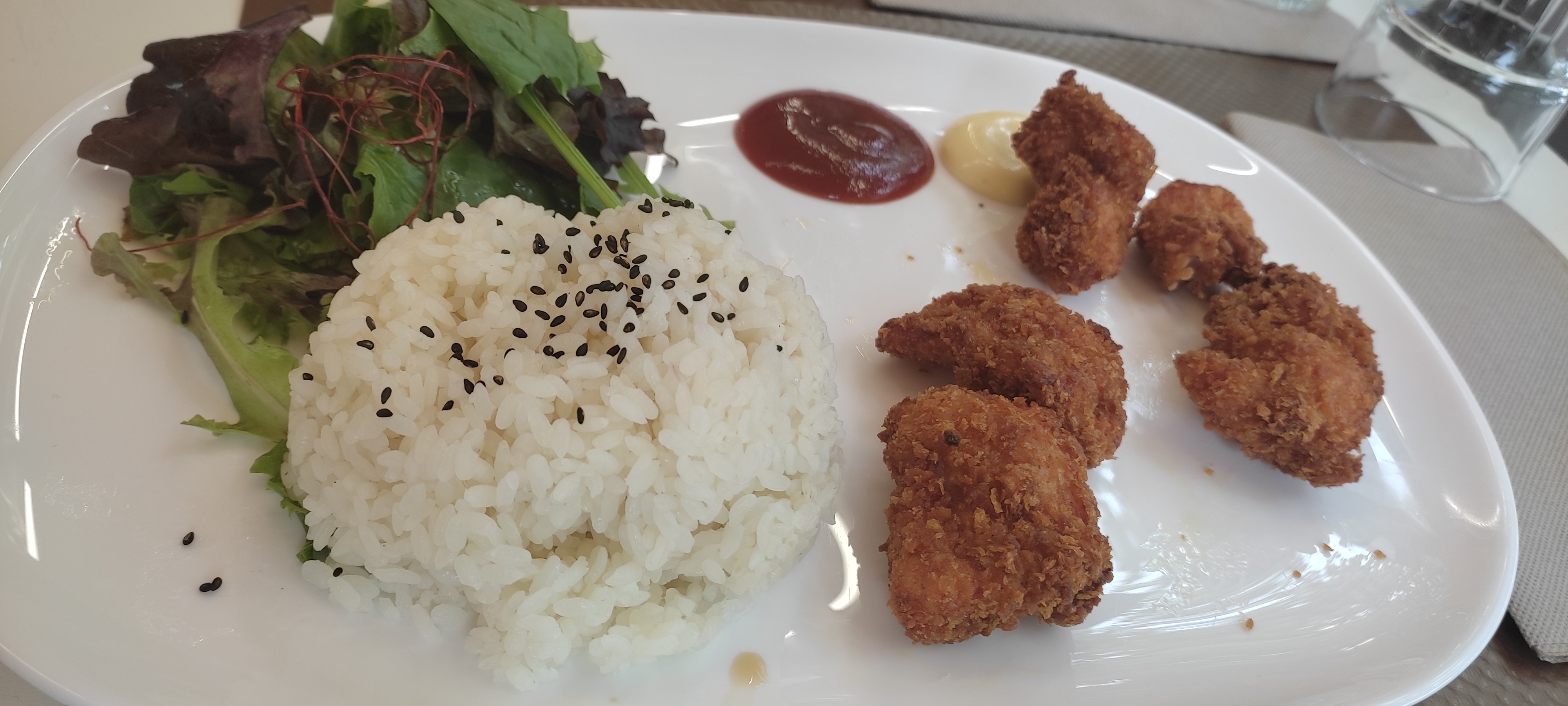 Nous sommes venus à 3 et franchement ont en a eu pour notre argent vraiment les plats sont copieux et exquis il y a du choix la présentation est parfaite franchement pas déçus, le menu enfant est parfait pour les petit mangeur je vous conseil le tayaki en dessert (un personnel au top aussi rapide et à l'écoute).