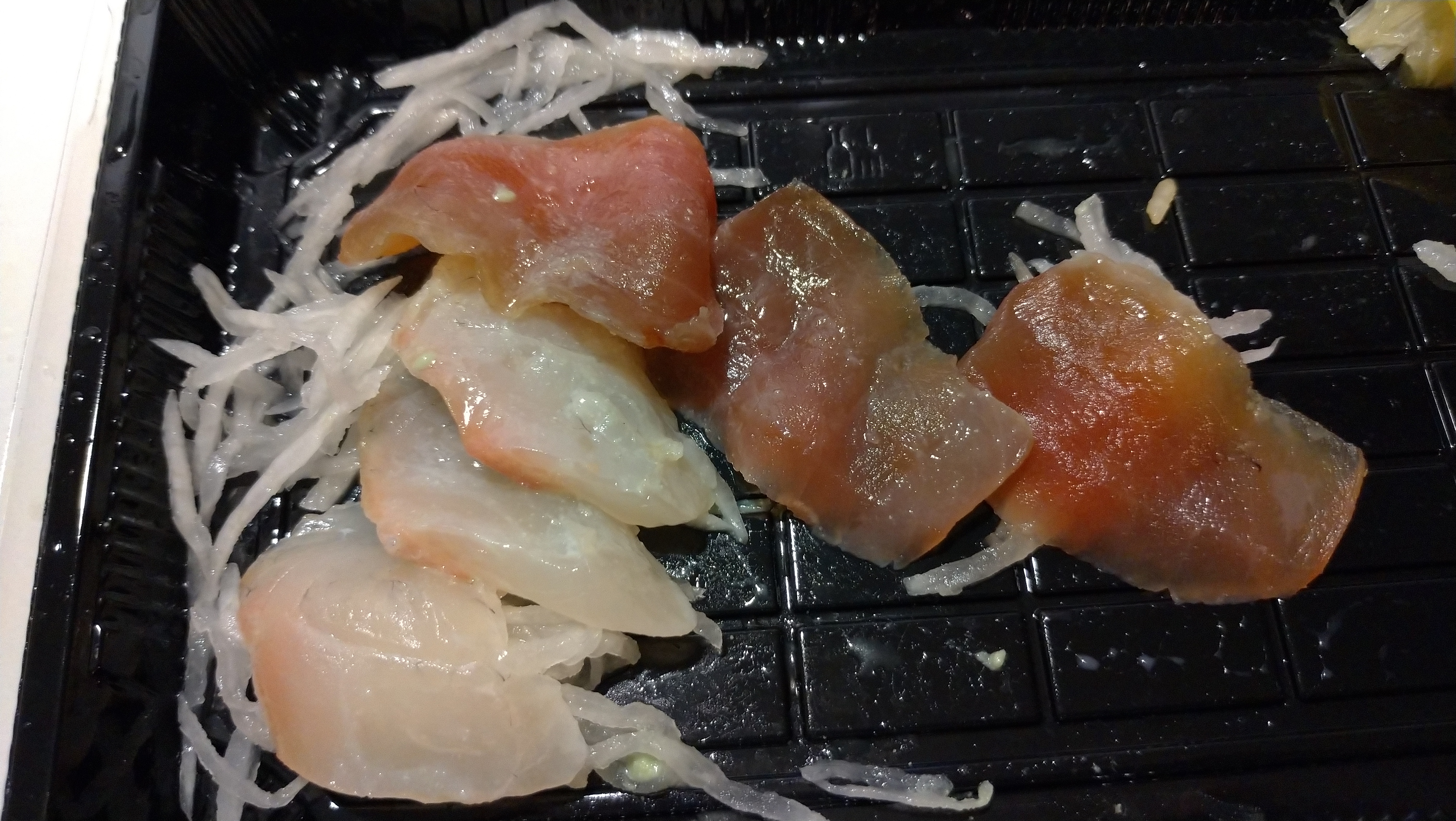 Posté le 13/04/2020 à 09:51"En passage à Arras et un amateur des sushis. J'ai pris un menu Pacifique à emporter et une très mauvaise surprise à mon arrivée à l'hôtel ! Je suis vraiment très déçu, le riz n'avait pas l'air d'un riz japonais, les california minuscules, les sashimi de thon et de dorade immangeables car l'odore de pourriture étaient très forte (voir la photo qui donne une idée sur la couleur). J'ai demandé un supplément de wasabi et gingembre que je n'ai pas eu. Le resto est pourtant bien noté... peut-être l'effet COVID-19 ?"