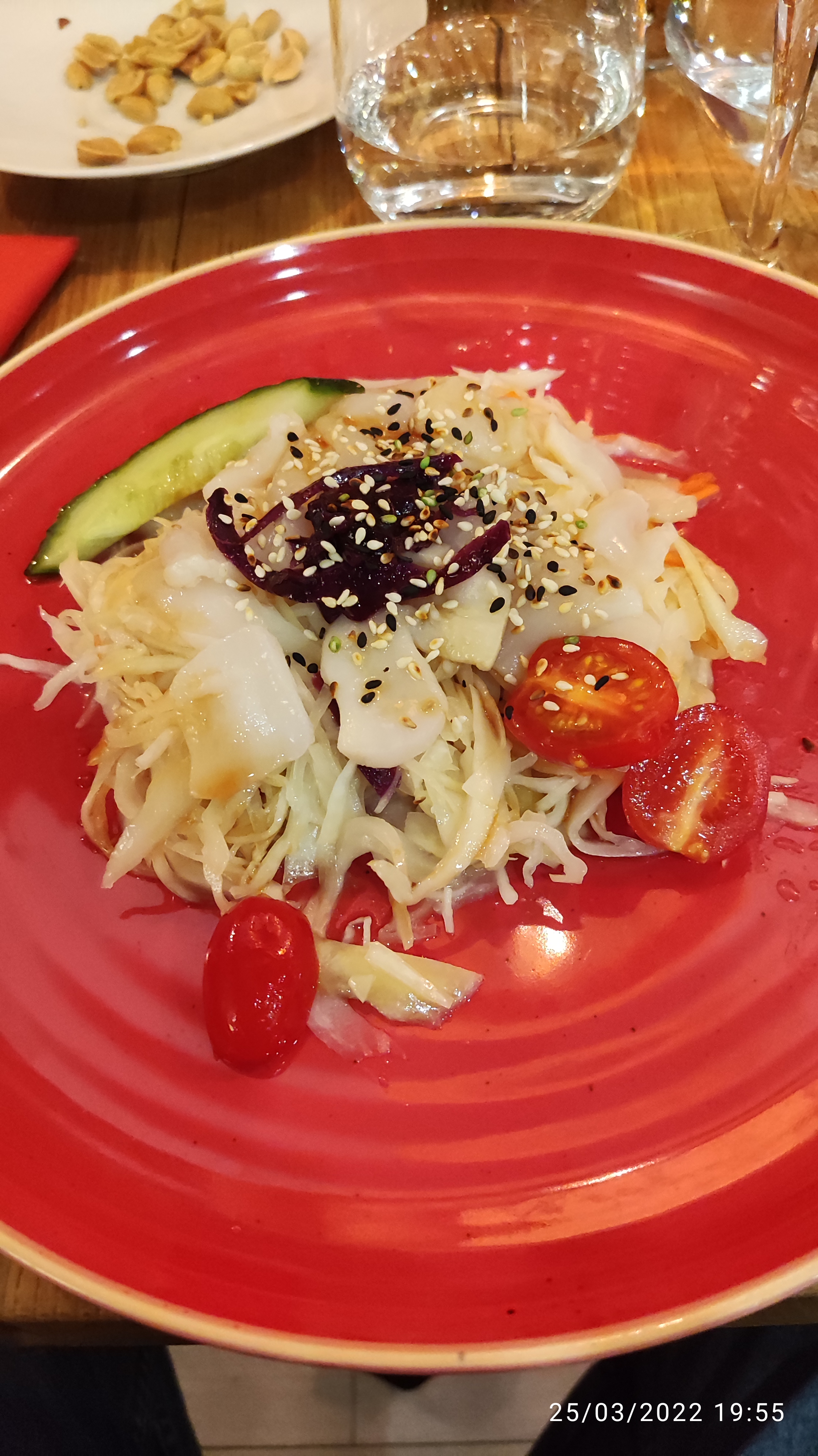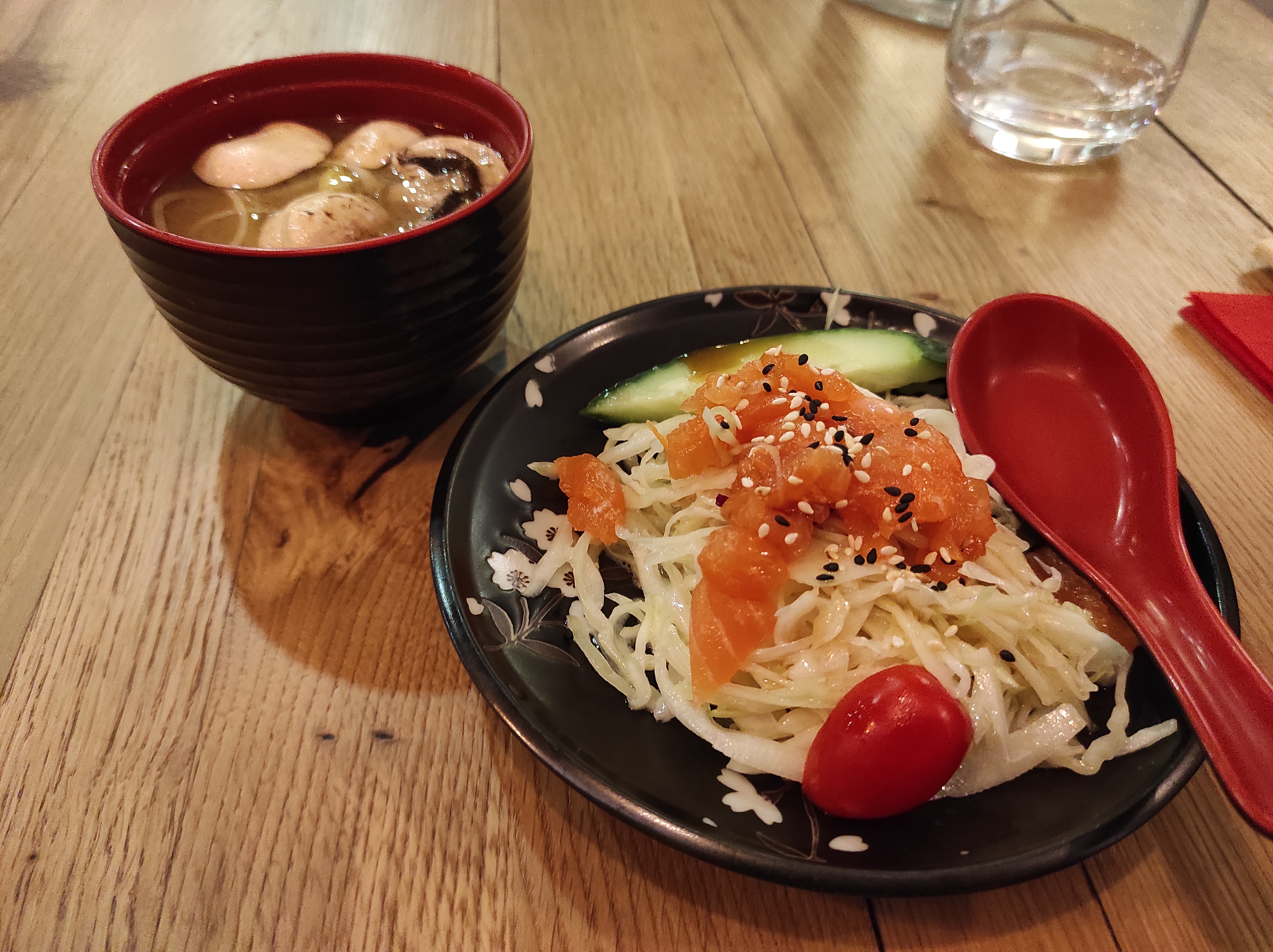 Menu peu cher pour des plats excellents. Avons pris soupe miso et salade de chou, brochettes ou pad thai (crevettes ou poulet), le tout très bon. Produits frais. A recommander.