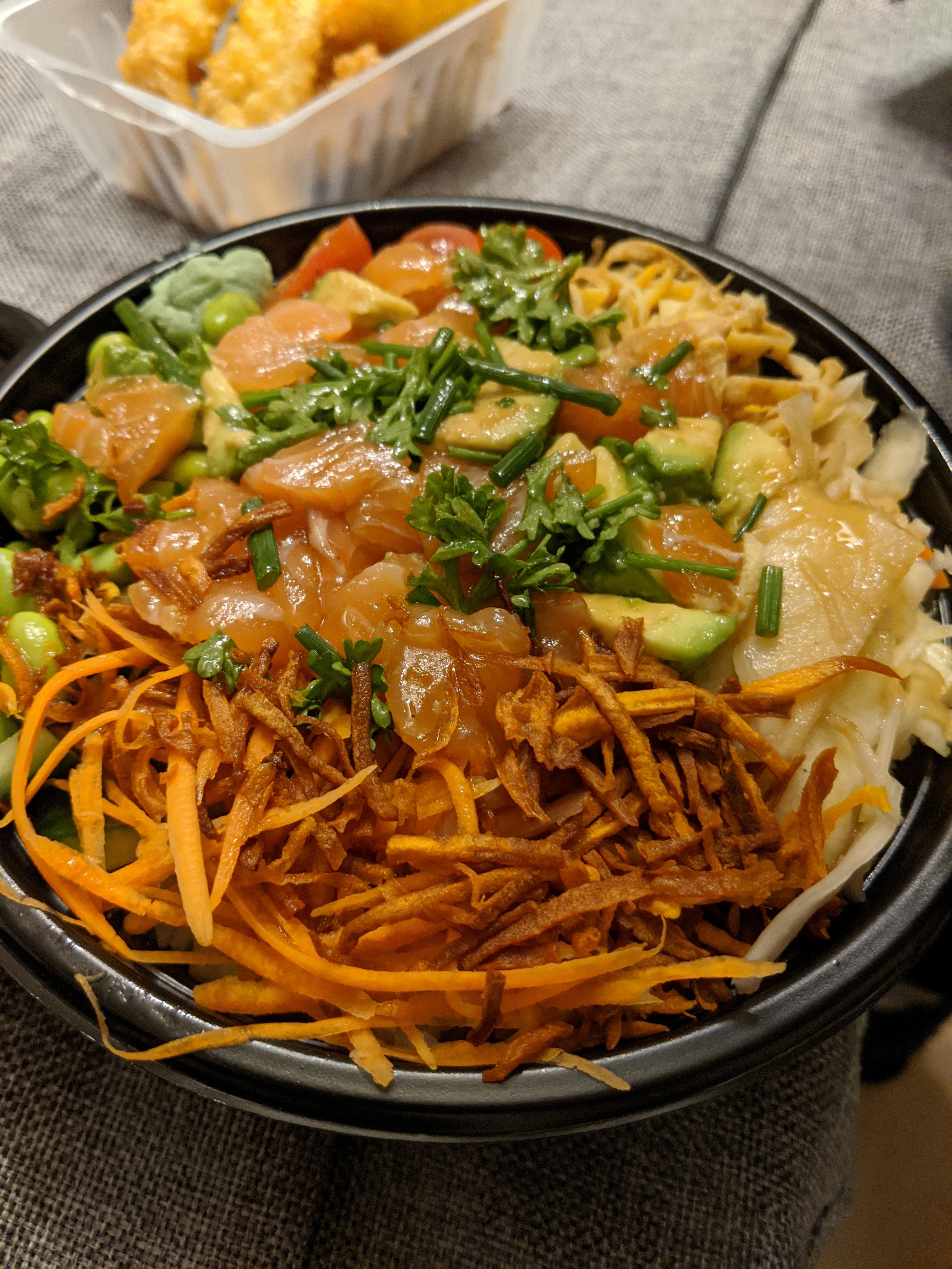 Riz très bon. Tempura seiche aussi. Poké saumon un délice. Je vais y retourner c'est sûr. 😁