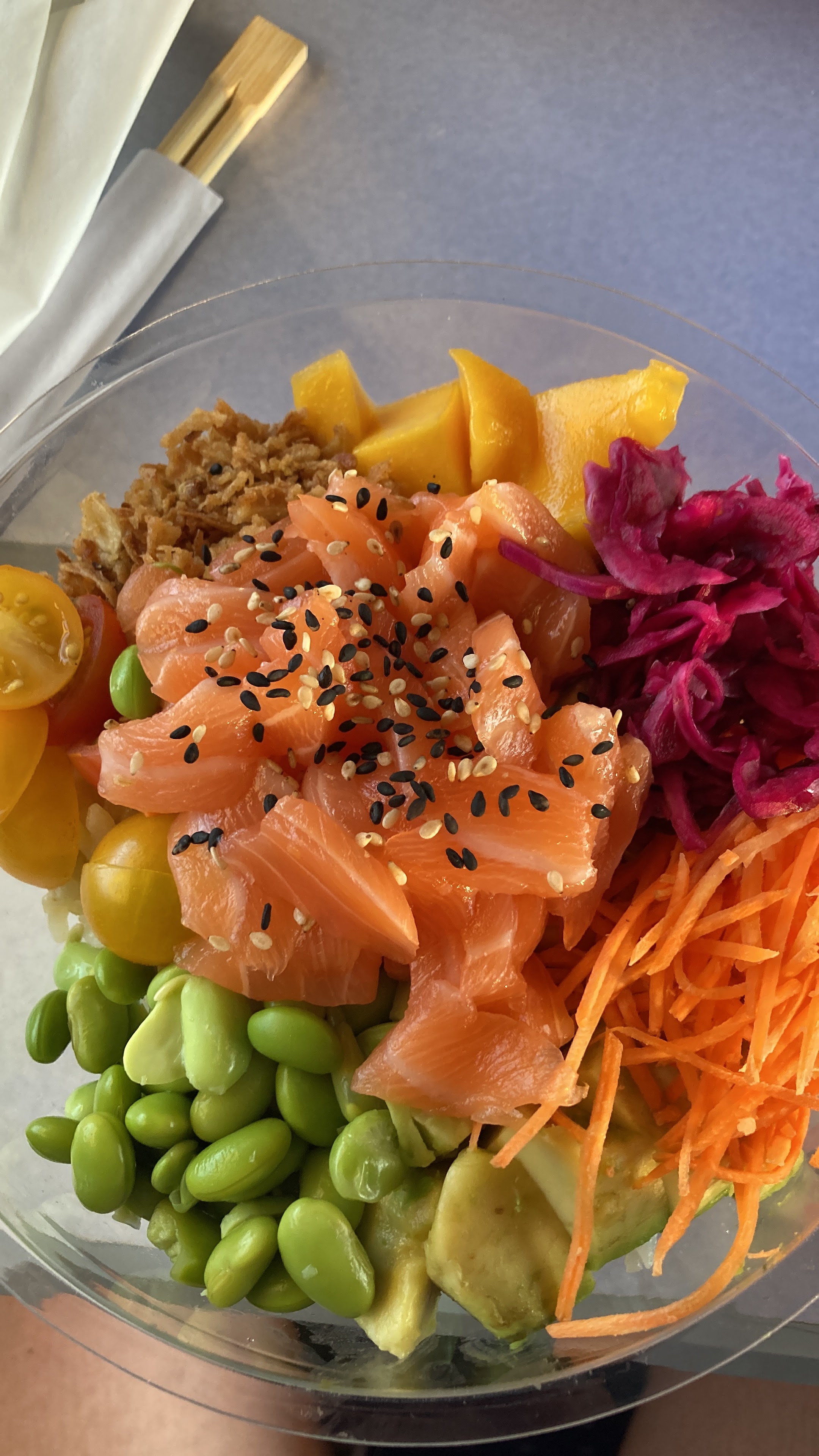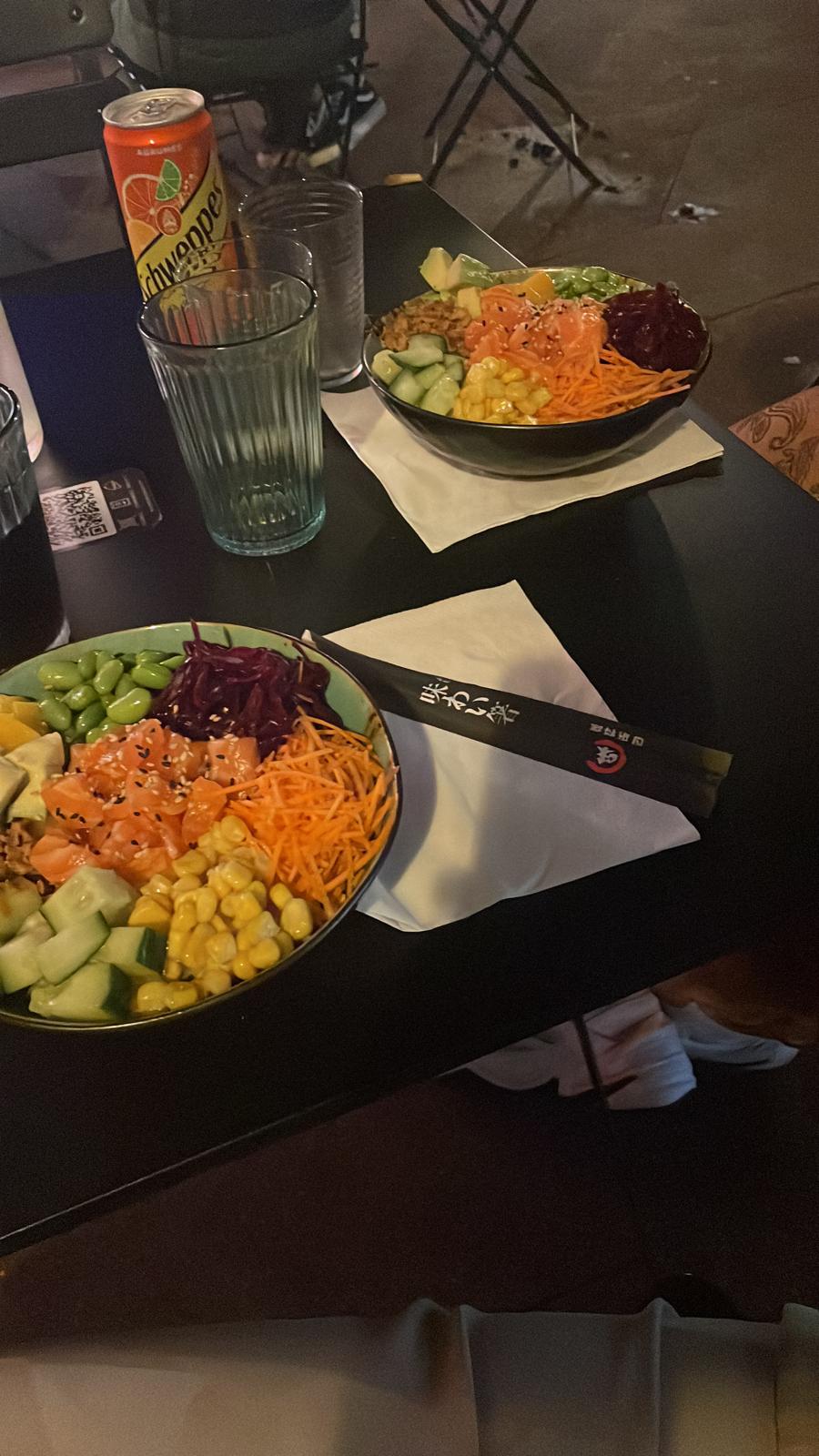Ce fut le poke bowl de ma vie… Et je ne pense pas que je pourrais en regoûter des pareils. D’un point de vue esthétique, c’est magnifique et appétissant !! Et je ne vous parle même pas du goût, le saumon est frais ! L’avocat est mûr ! La mangue, exquise ! Et le riz indescriptible… Le personnel est accueillant et nous a même offert des boissons gratuites pour l’attente.