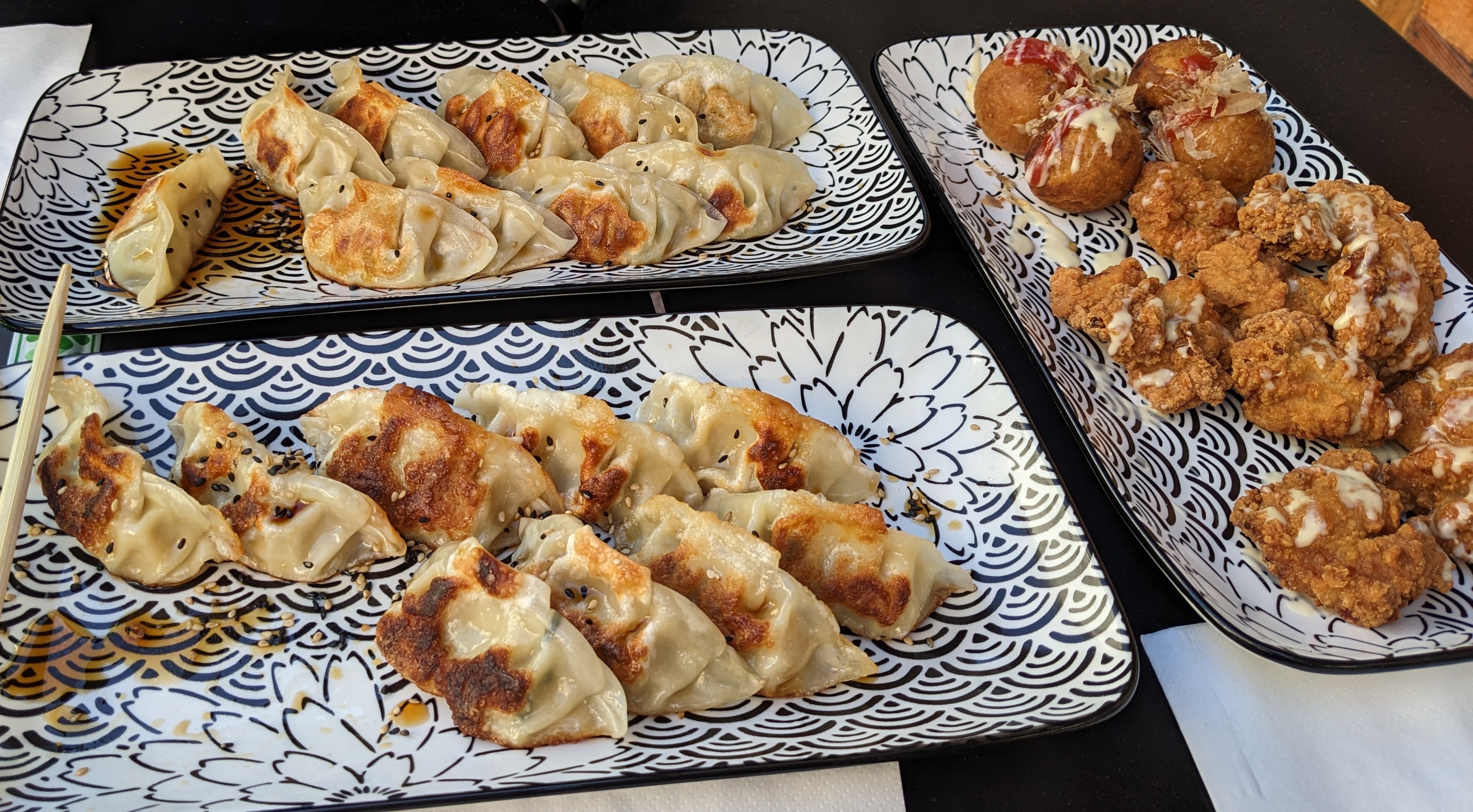 Moi et mon copain avons découvert ce petit restau il y a quelques mois , nous avons été très surpris de leur poulet frit , je pense que je n'ai jamais mangé un poulet aussi bon et tendre que celui si ,leur takoyaki et leur gyozas sont aussi très bons ! nous étions revenu hier , par surprise ils ont réaménager l'intérieur et quelques places sont disponibles au chaud , heureuse de pouvoir y aller meme quand il fait froid maintenant !