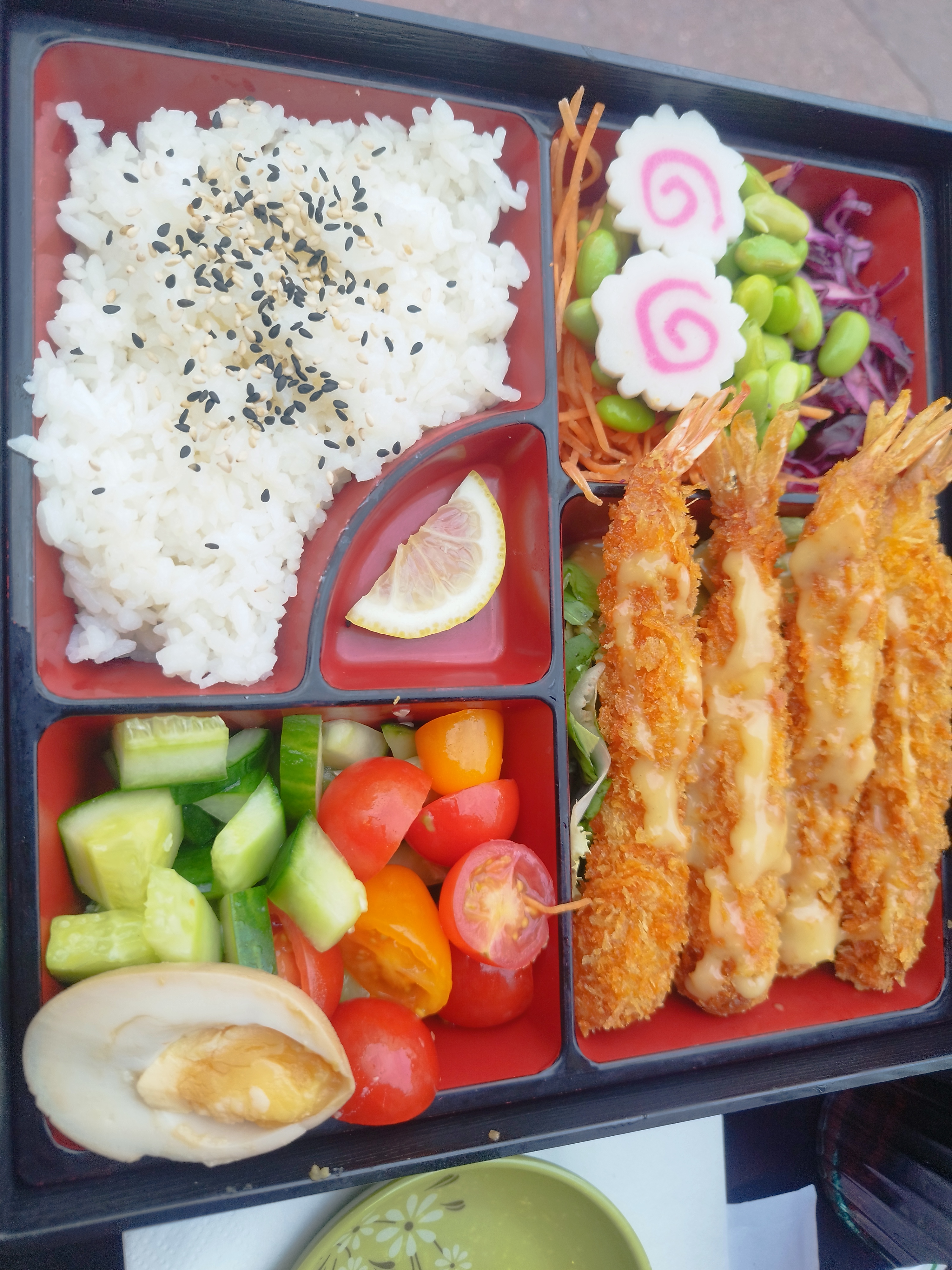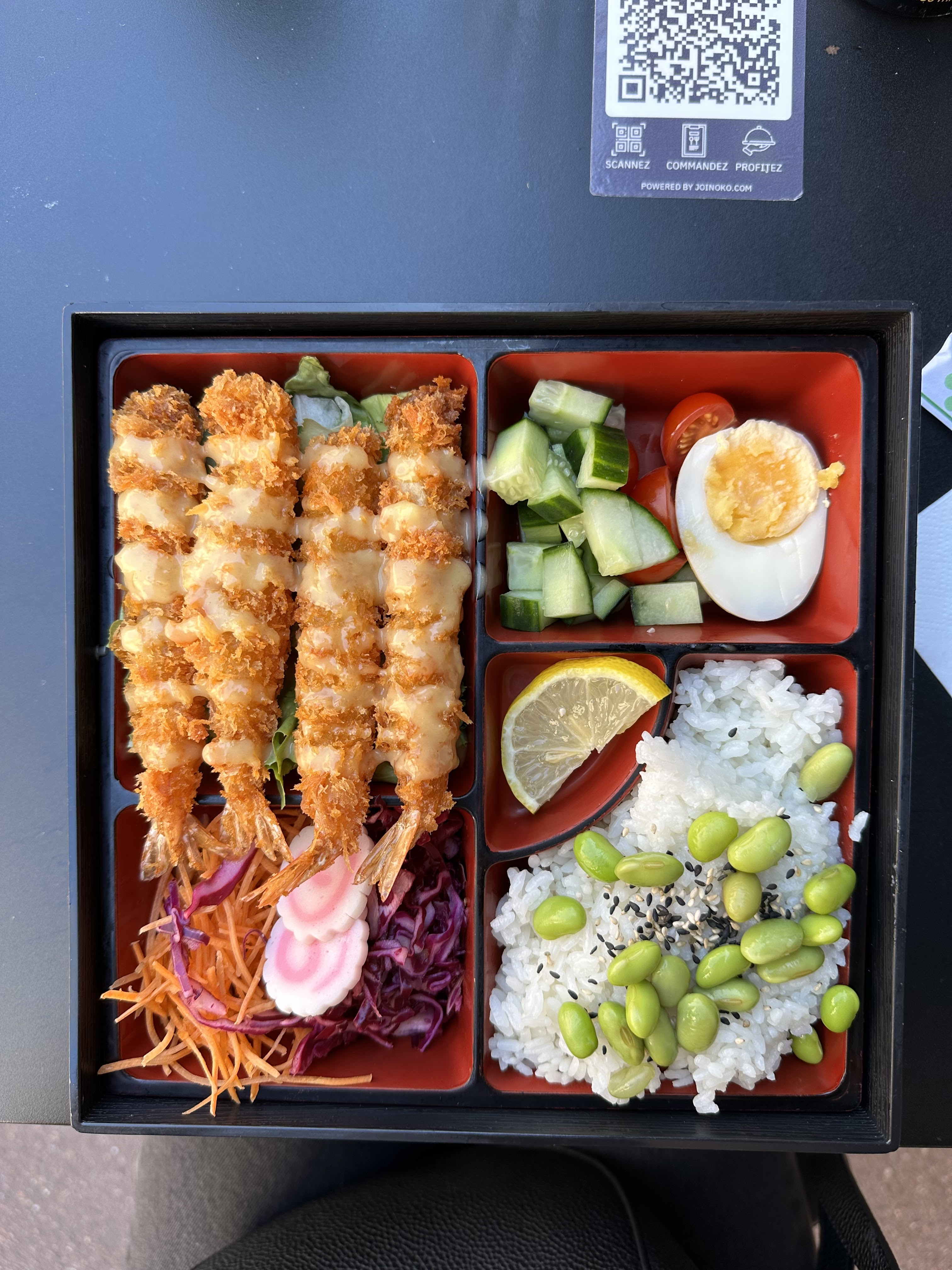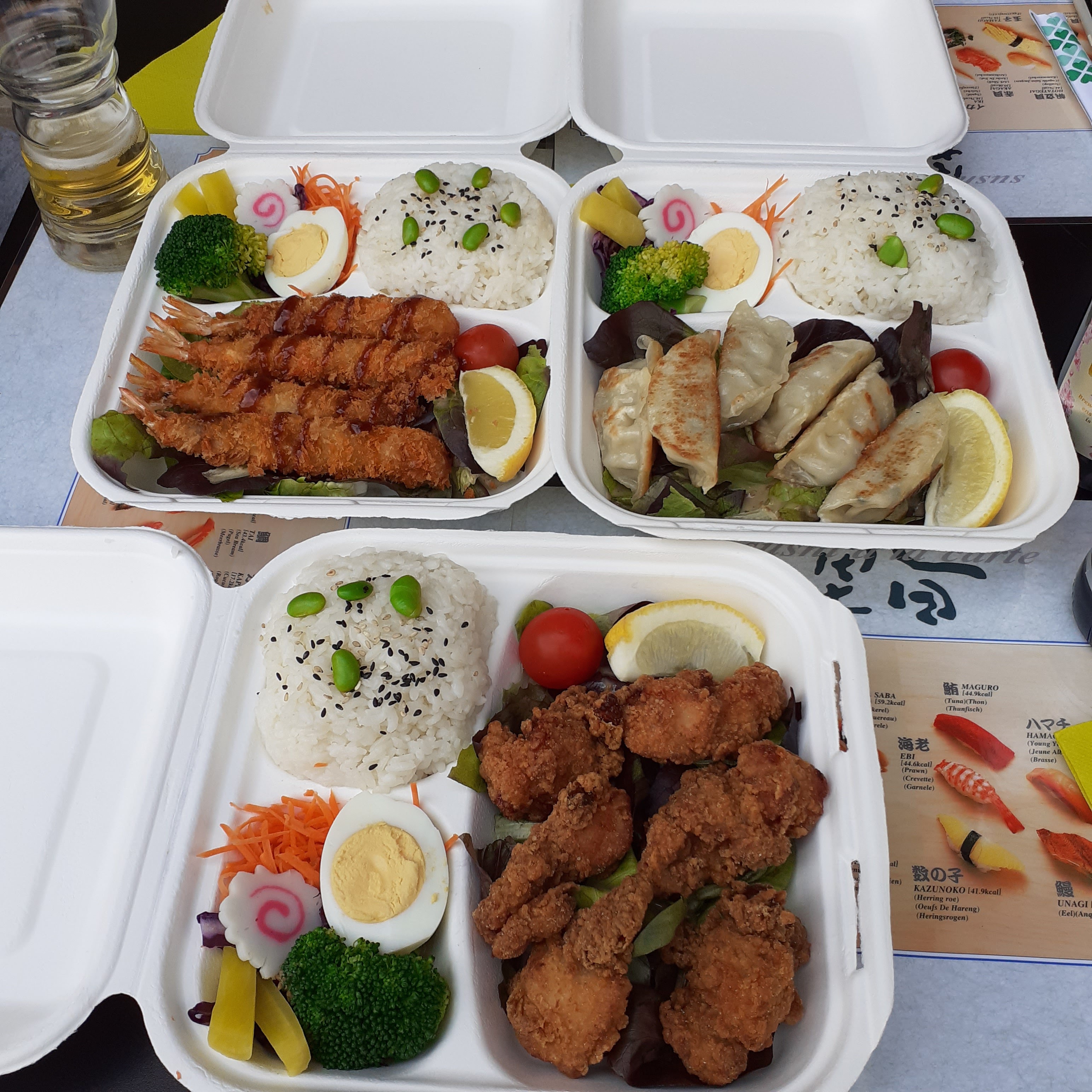 Très belle découverte. Des bentos très bien présentés. (À emporter sur la photo) Un patron très à l'écoute de la clientèle.