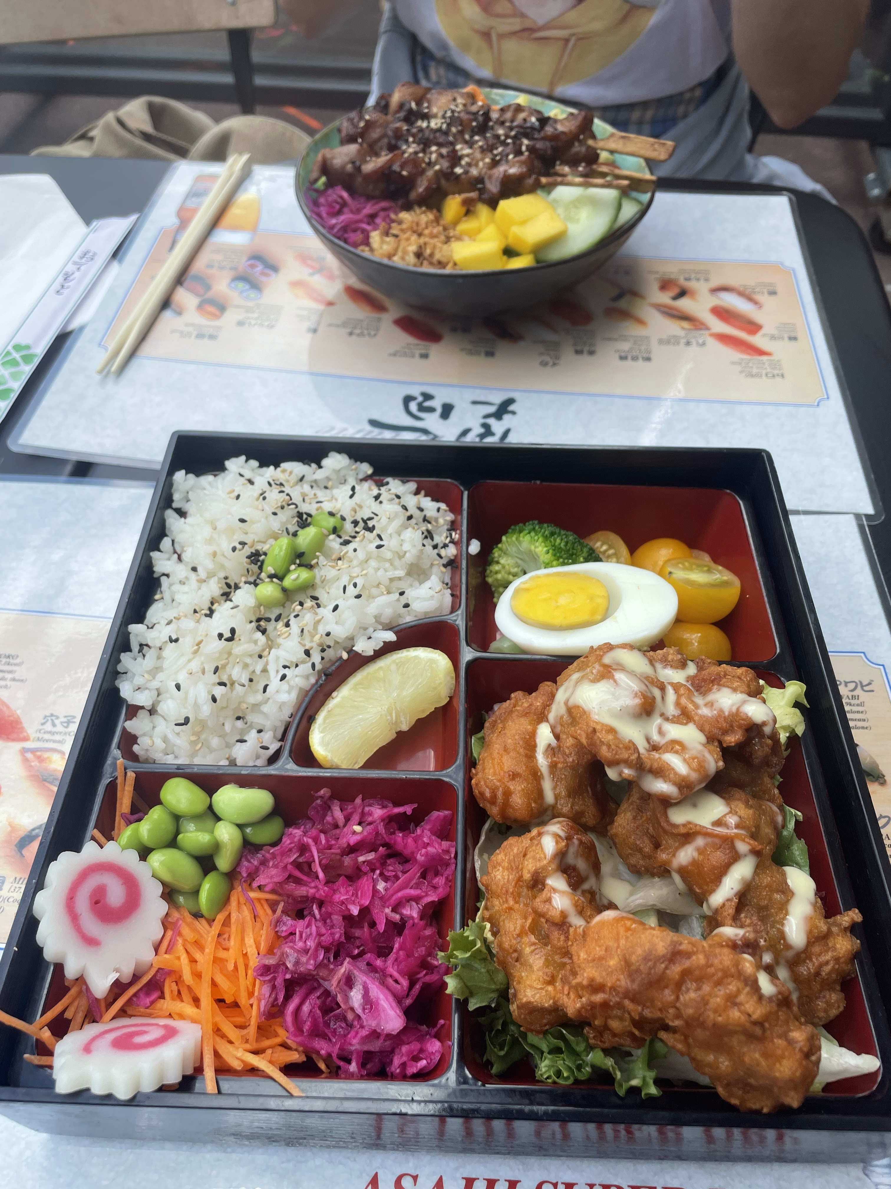 Le bento Kara-Age (poulet frit) est délicieux, le poulet est fondant et croustillant, et les accompagnements se marient très bien avec !