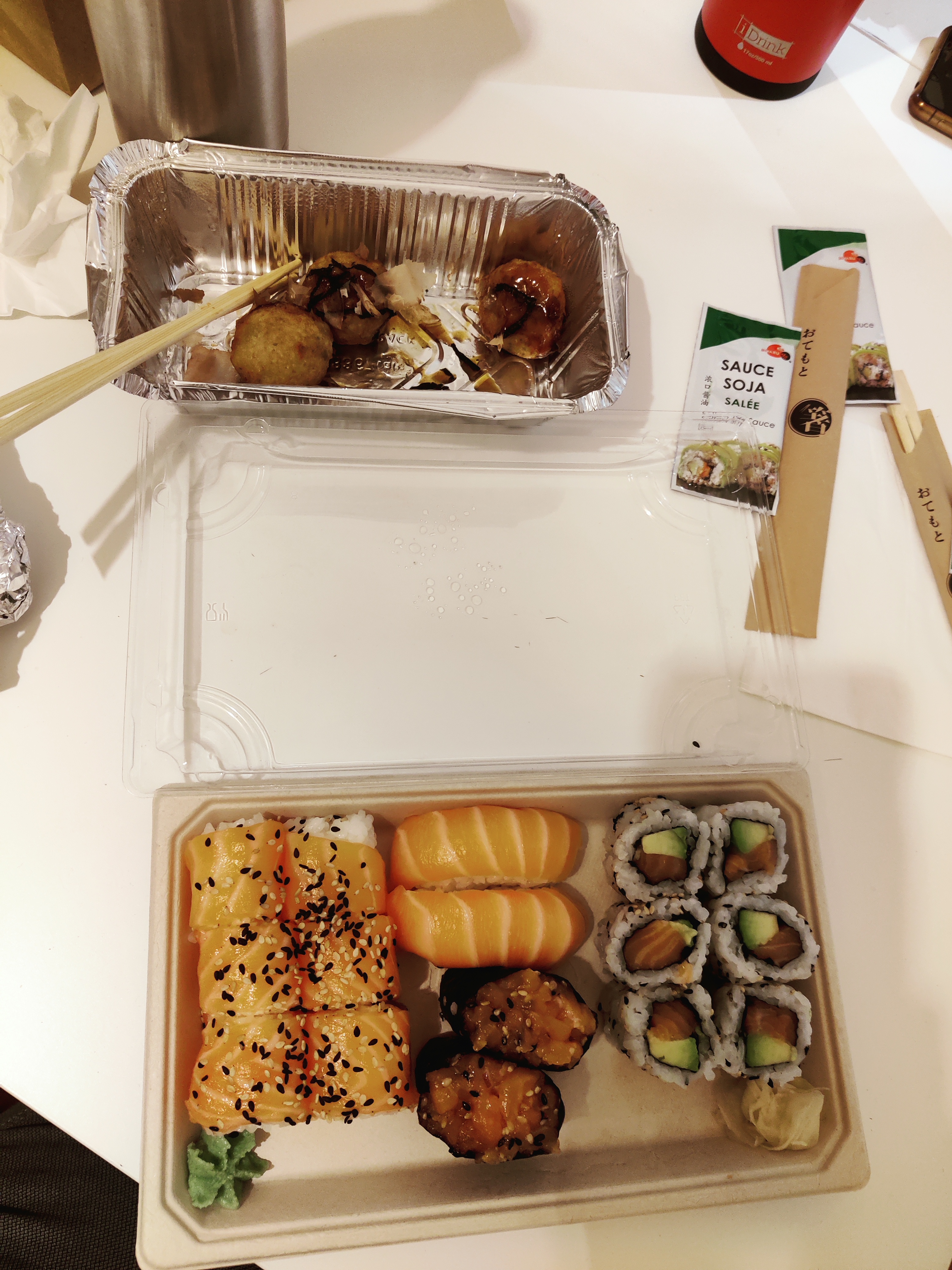 Les sushis et takoyaki étaient bons, mais l'attente était vraiment longue (30 min)