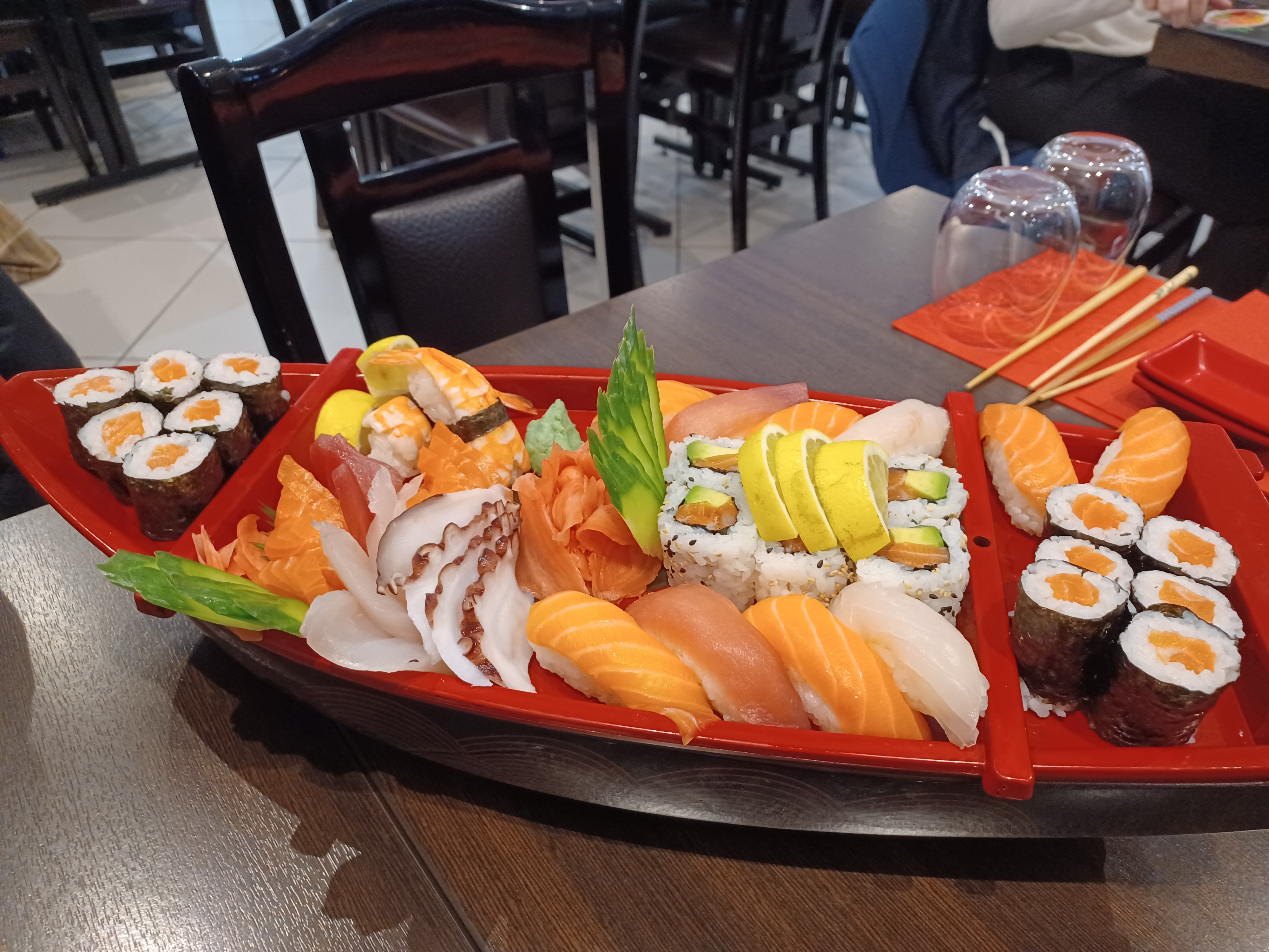 Posté le 01/02/2024 à 07:40"Très bon restaurant asiatique. L'un des meilleurs dans lesquels j'ai mangé. Leurs prix sont très attractifs et la qualité des plats est présente. On trouve des associations et des accompagnements originaux que l'on ne trouve pas dans d'autres restaurants à sushi. NB: Plat : Bateau sushi"