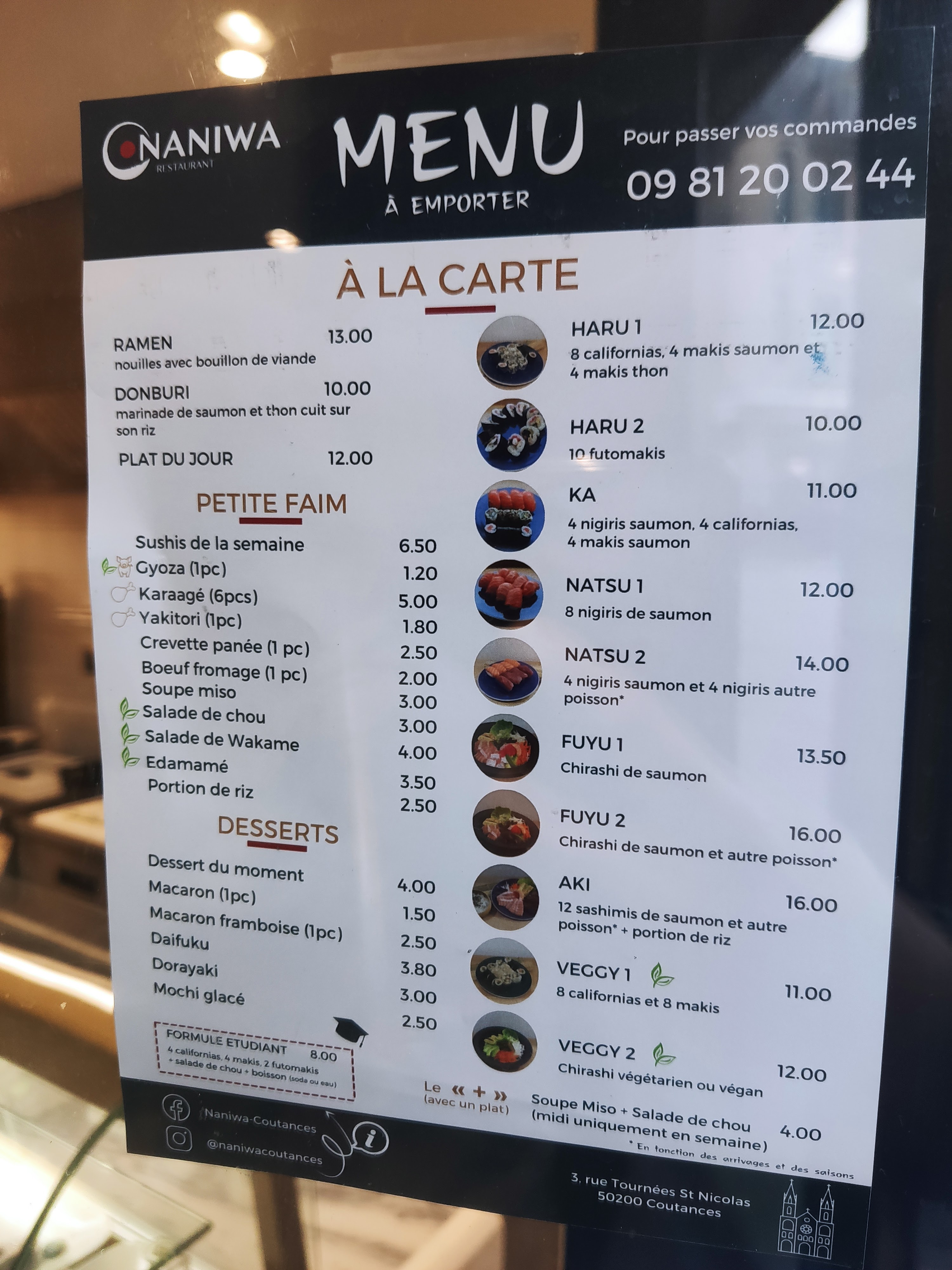 Si vous voulez de la fraîcheur à Coutances, allez dans ce superbe restaurant japonais où vous aurez de bons produits à emporter faits maison. Et un service avec le sourire, systématiquement. Je recommande les yeux fermés.