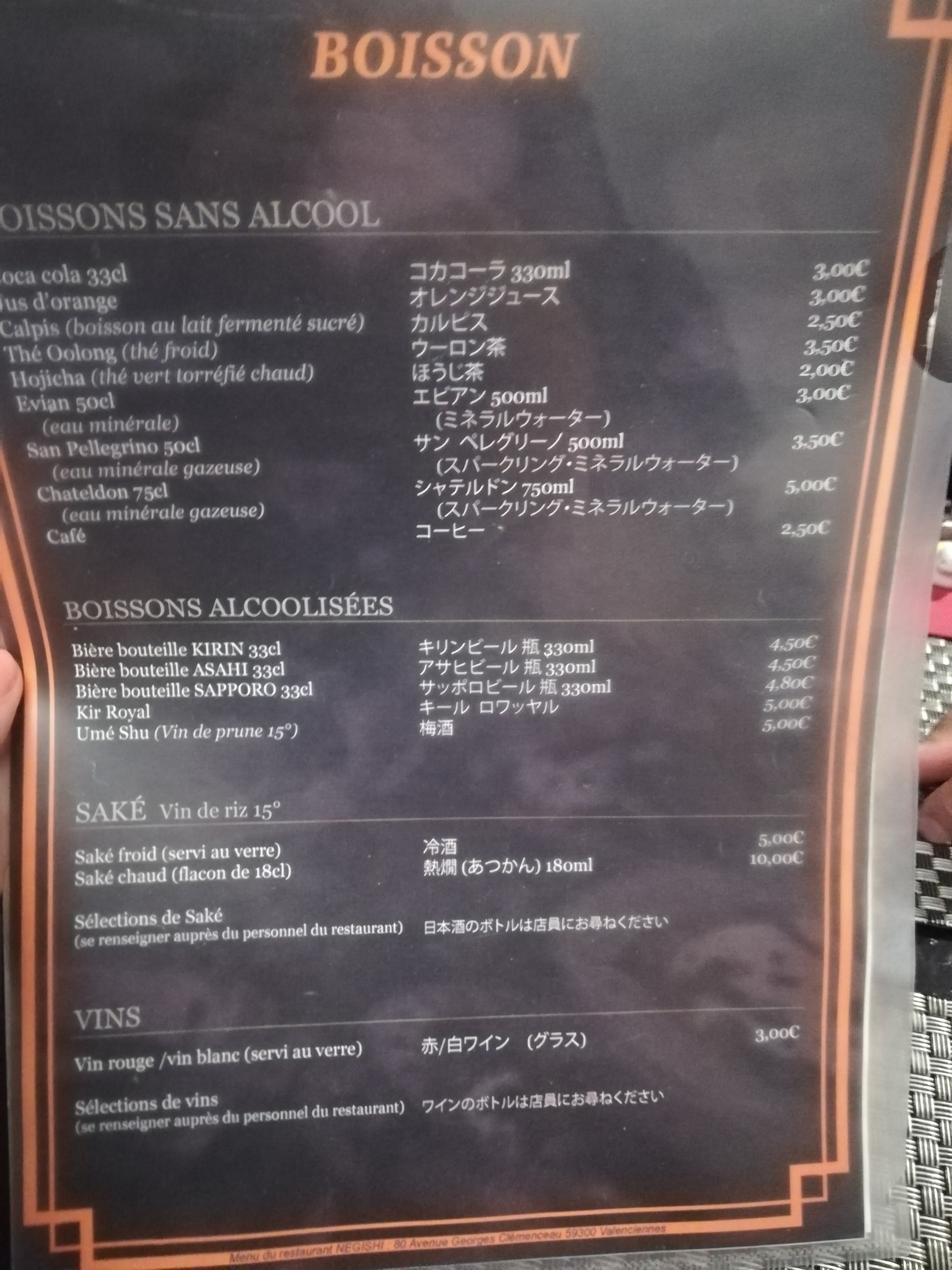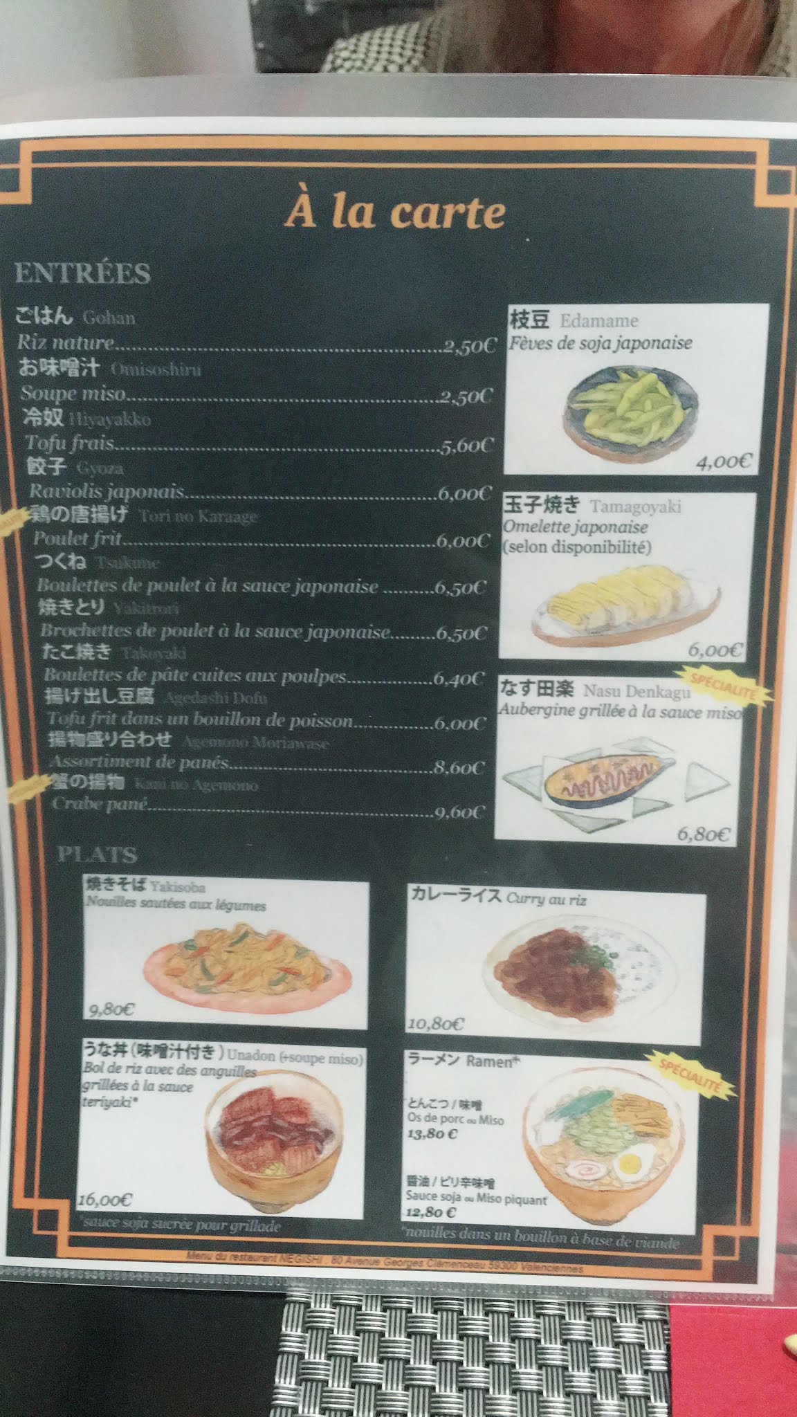 Le meilleur restaurant japonais de Valenciennes et je dirai même des environs. Déguster de vrai plats japonais, fait par des japonais et oui si vous pensez encore que le Tokyo, le sushi val ou encore même le panda wok et j'en passe sont de la cuisine faite par des japonais détromper vous, les cuisiniers sont eurasiens, enfin bref revenons sur le Negishi. Les + (résumé): -Une carte avec des plats japonais typique avec je pense pour une clientèle moins ouvert dans la culture le traditionnel sushi fait par un maître sushi (faite l'expérience d'un vrai sushi qui fond dans la bouche !) -Un personnel accueillant et à l'écoute du client. Les - (résumé): -Faites attentions à votre portefeuille, en prenant en individuels les plats la facture monte très vite -Un espace pas très grand, il est même vivement conseiller de réserver à l'avance sous peine pas avoir de table -Malheureusement comme citer par certain, beaucoup de plats ont disparu de la carte pour faire place au sushiserie de nous autres consommateur. Globalement j'ai adorer ce restaurant et je continue encore à y retourner pour le plaisir de mes papilles, petit portefeuille s'abstenir malgré que ce restaurant soit excellent si vous êtes un grand gourmand avec un petit budget, préférer plutôt un autre restaurant les plats typiques seul peuvent déstabilisés. Bref je recommande !