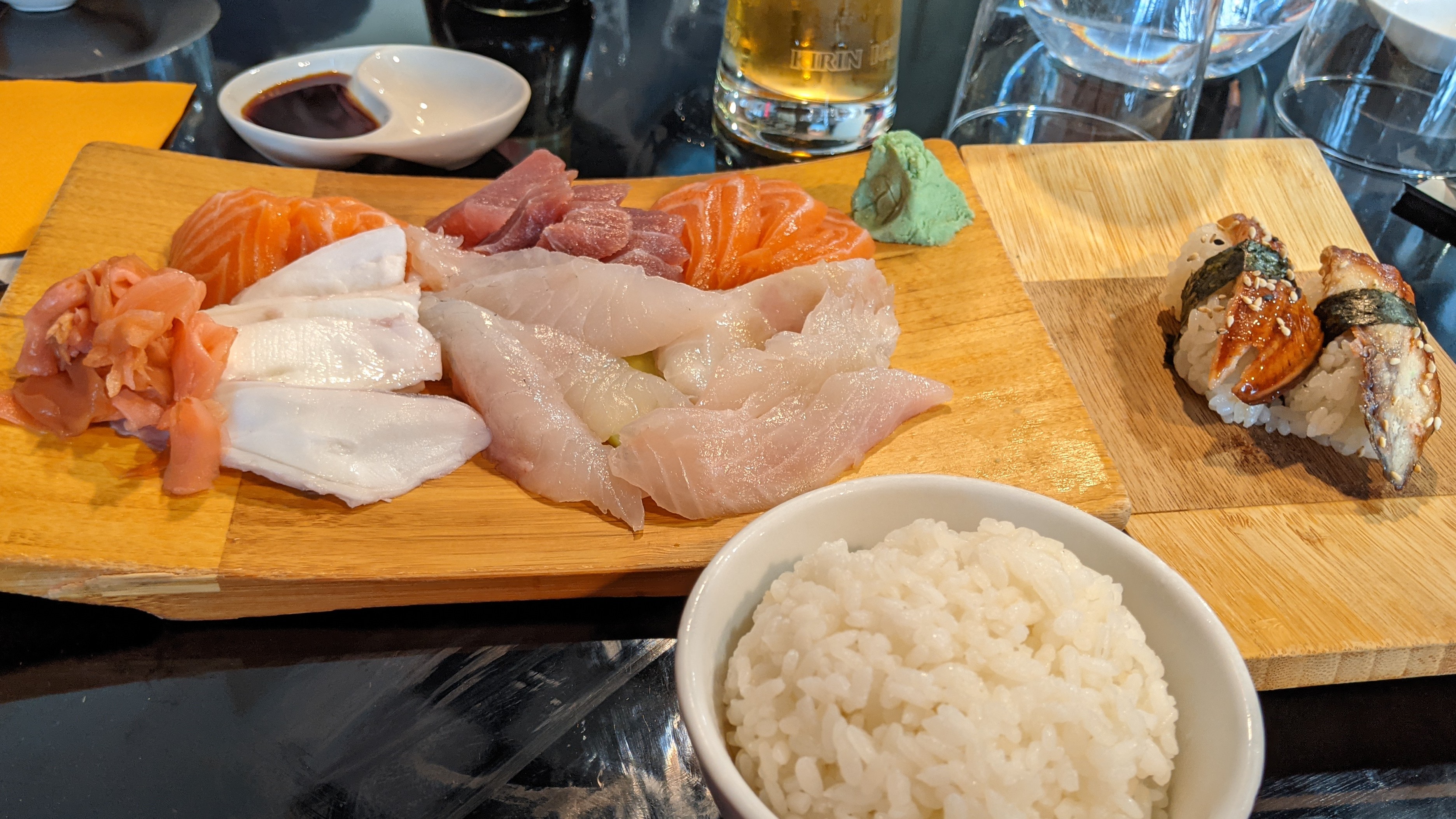 Nous avons mangé à midi, le service et l'accueil au top. Les serveurs ont été très gentil, respectueux et à l'écoute. Bémol sur la qualité de la nourriture. Le riz trop cuit, en trop faible quantité. Le gingembre et le wazabi disposé d'office dans le bol qui laisse un goût persistant au plat et qui le gâche. Les tarifs ont augmenté, trop à mon goût. L'expérience ne sera pas renouvelé.