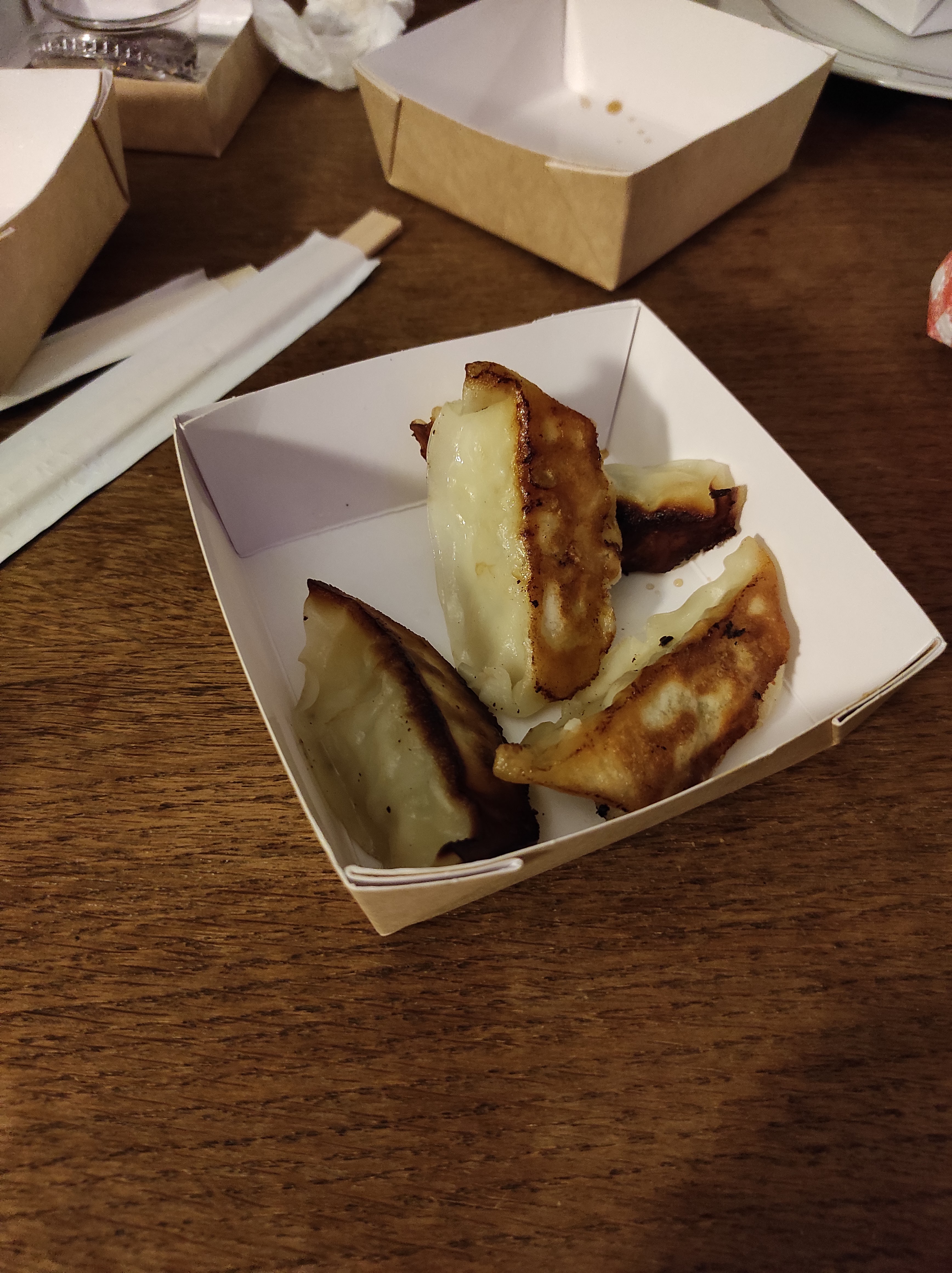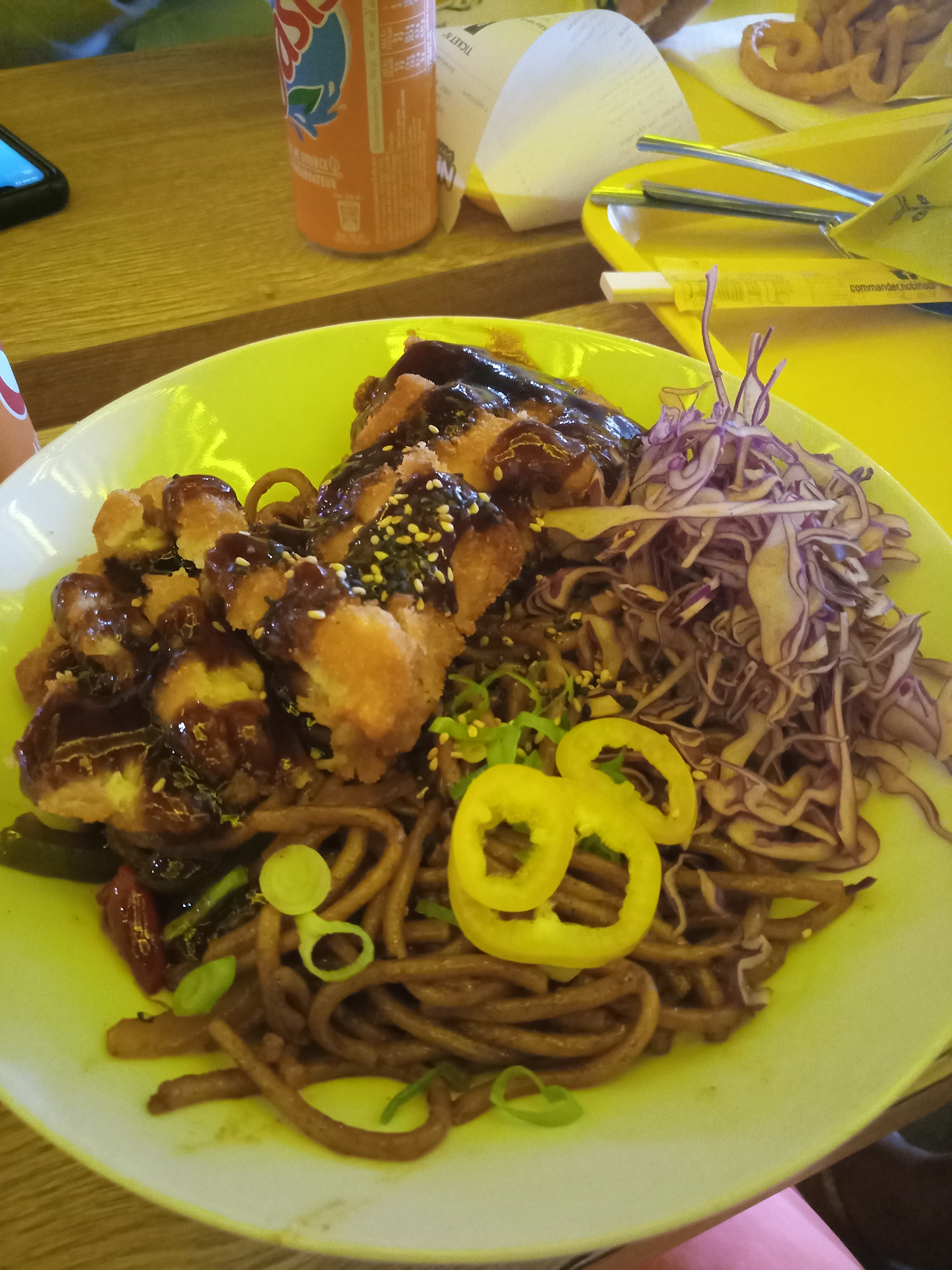 Très très bon. Seule déception : les gyosa qui comme vous pouvez le constater, sont trop cuits d'un côté et cru de l'autre. Pour 5,90 euros les 6 gyosas, sachant que nous en avions pris 2 fois, c'est très décevant pour le prix d'un repas. Nous avons pris des suppléments et franchement ; il y en a trop pour des moyens/petits mangeurs. Je n'ai pas fini tellement c'est copieux mais tant mieux ! Et pourtant j'ai un gros appétit. Les plats étaient excellents. Petit rajout sur notre commande, non désiré mais absolument pas mécontents : des morceaux de poulets. Et c'etait excellent !! Très content d'avoir enfin un fast food asiatique a saint eulalie.