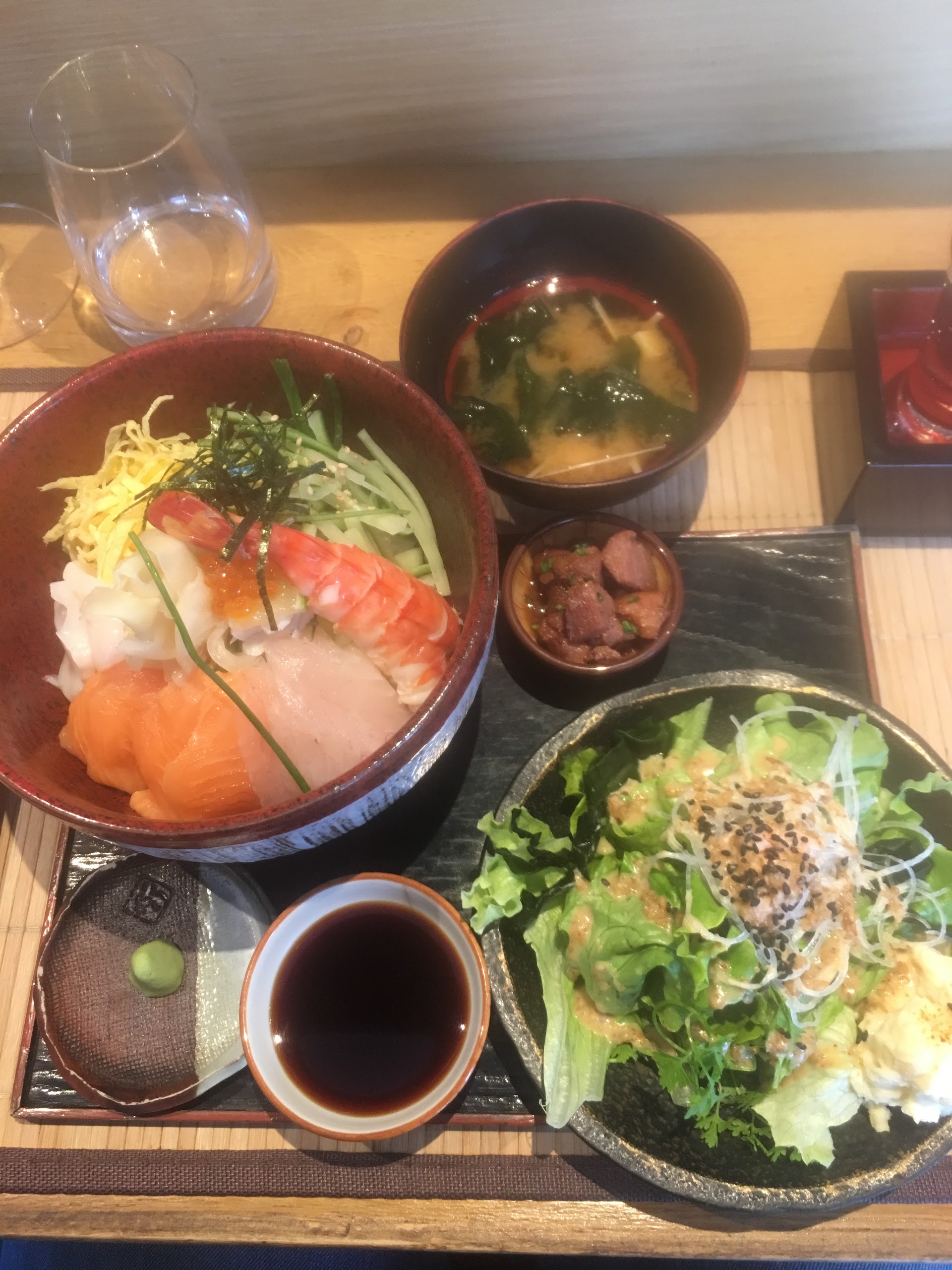 Bonne expérience pour un repas du midi. Produits frais et de qualité. Cependant tarif beaucoup trop élevé au regard de la prestation (quantité comme qualité). 26 euros un chirashi avec 3 lamelles de saint jacques, une crevette, 3 micros tranche de saumon et de bar c'est prohibitif malheureusement...le café gourmand à 12 euros est également avec une boule de glace, une coupelle de soupe de fraise et une tranche de tiramisu yuzu... vraiment dommage le prix gâche un peu l'expérience.