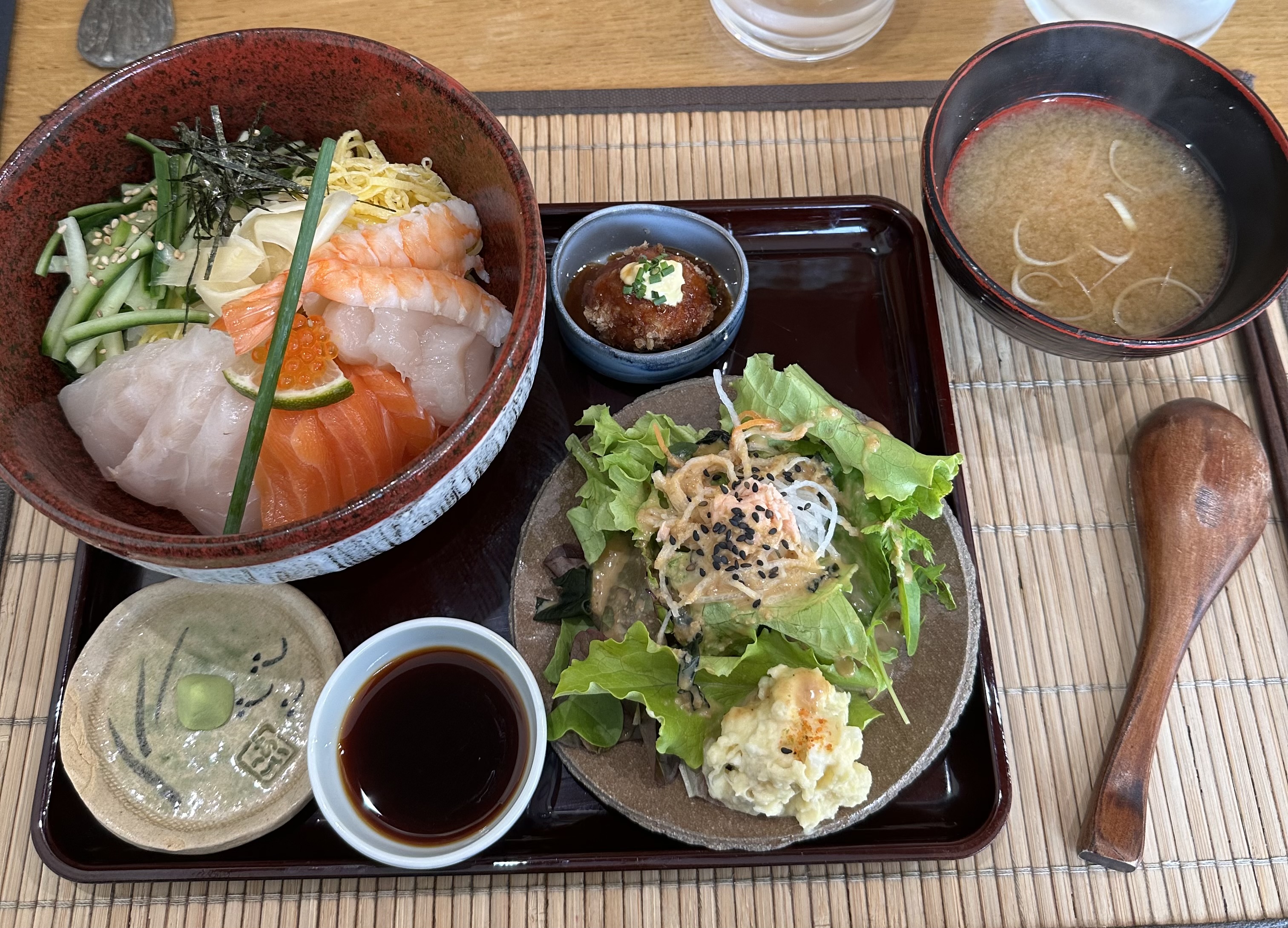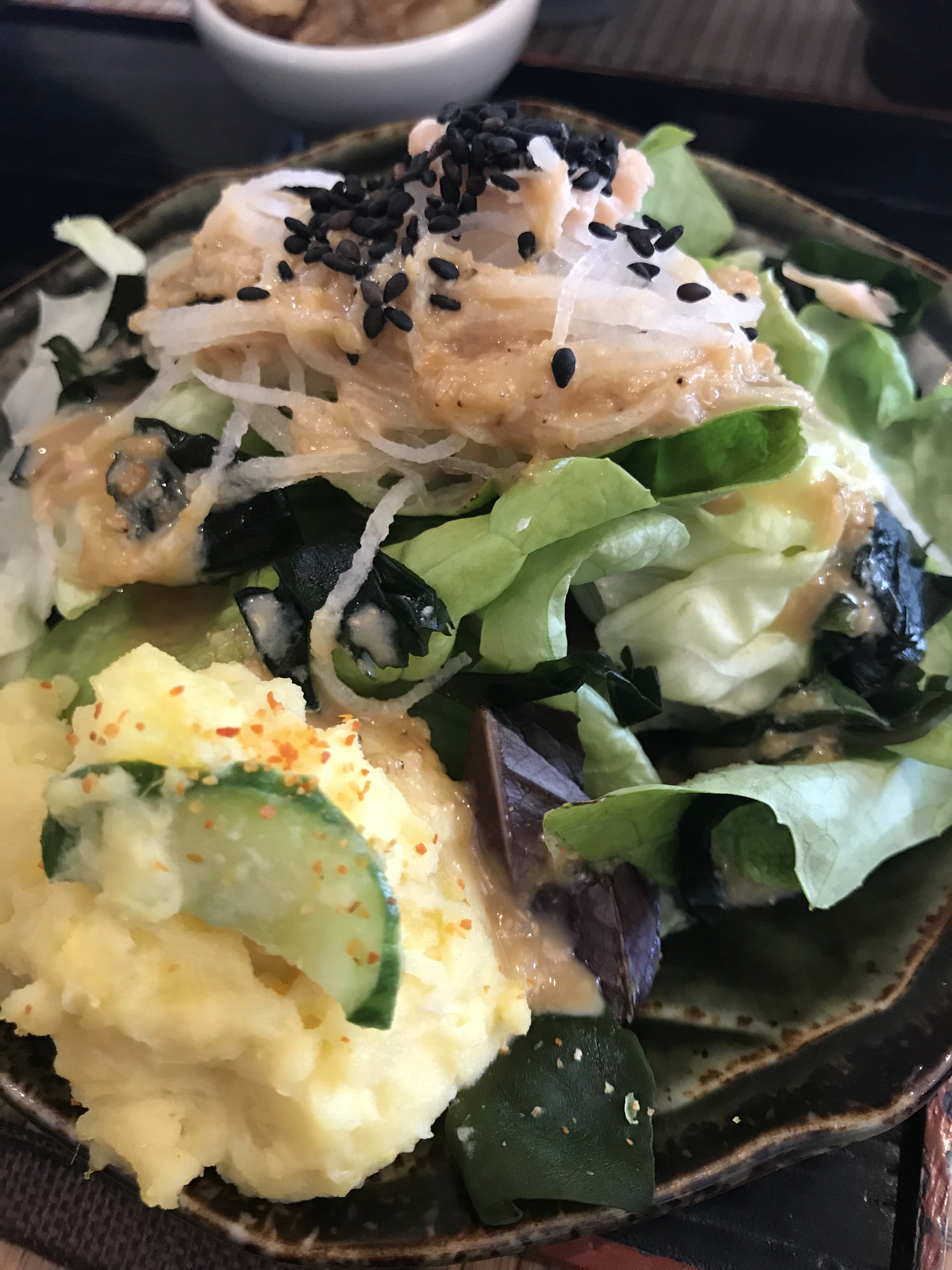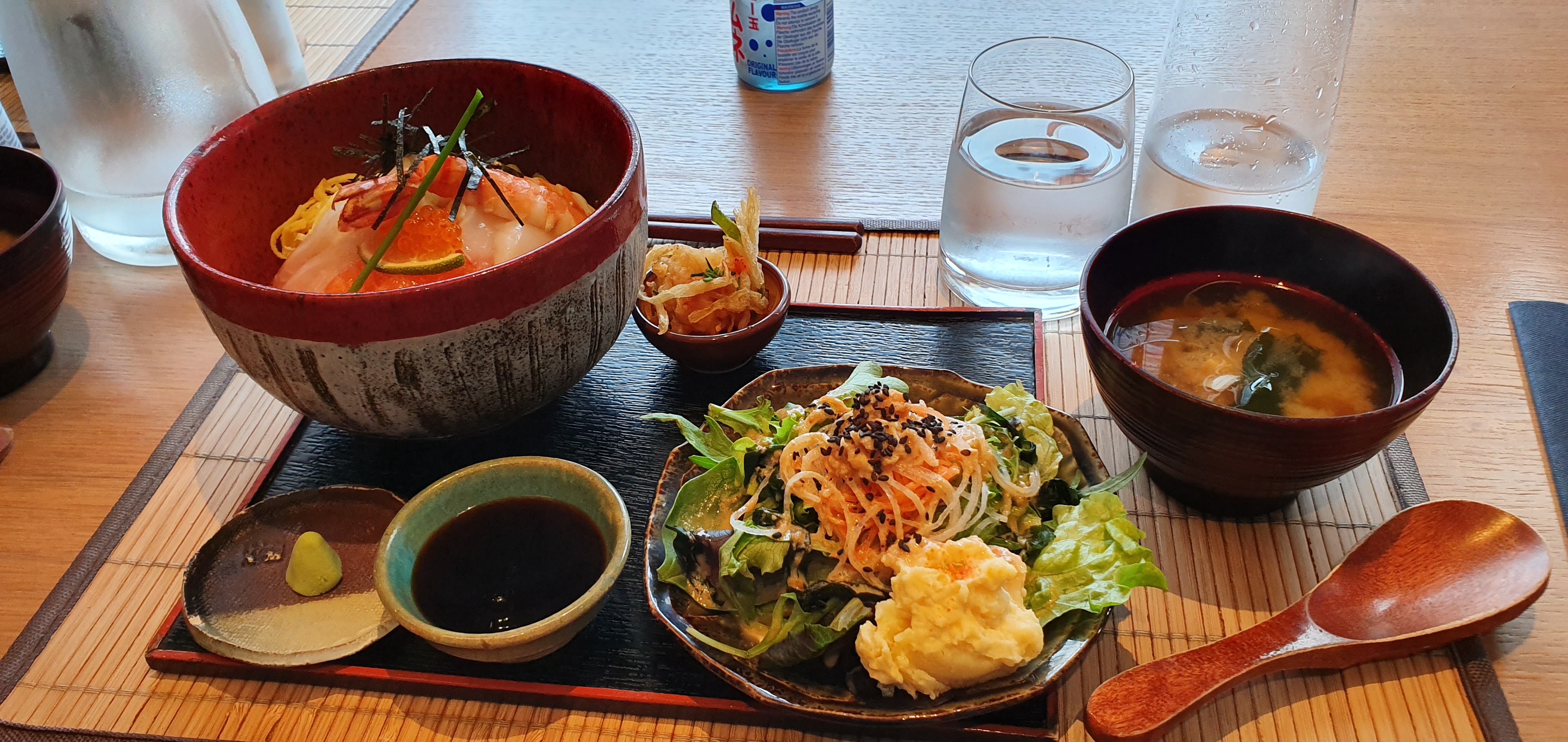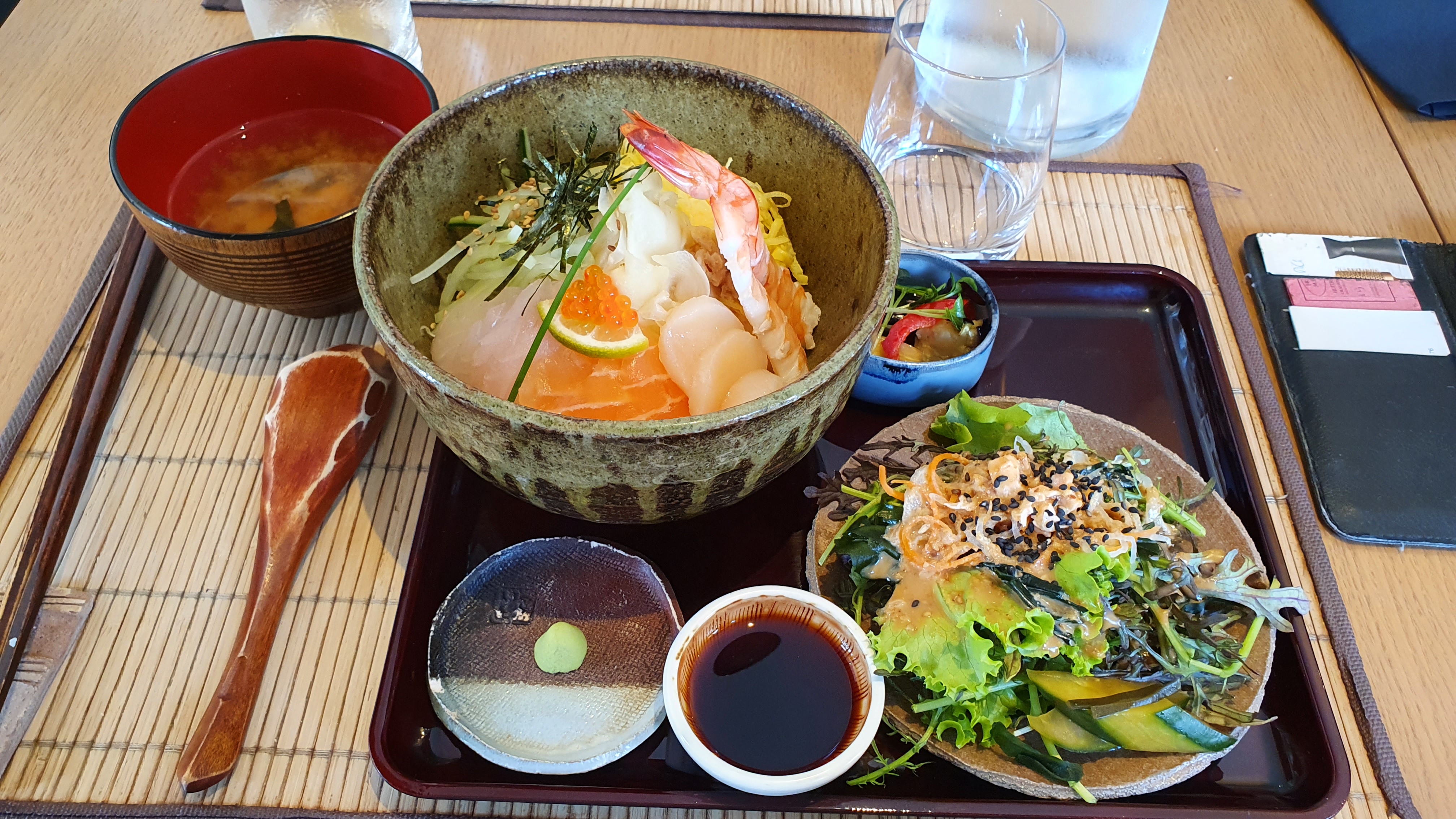 Si je pouvais, je mettrais 6 étoiles. Nous avons pris à emporter le bento végétarien et le chirashi, chacun accompagné d’une salade et d’une soupe miso. C’était certes cher, mais ça les vaut. C’était vraiment délicieux, fin et savoureux. Accueil au top pour parfaire le tout !