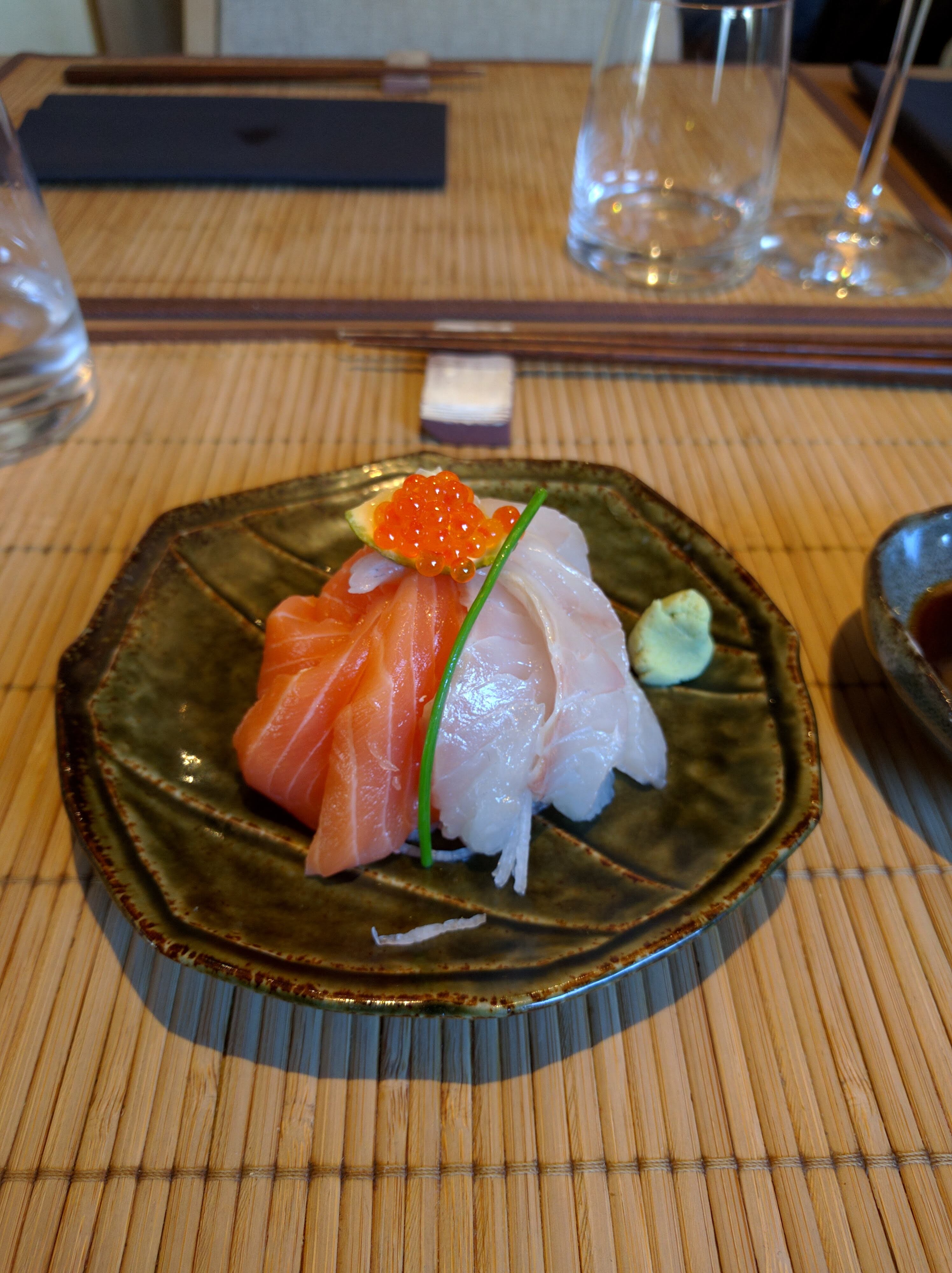 Restaurant au décor agréable, on y mange très bien avec les yeux et les papilles, bonne carte de saké et whisky japonais, plus cher que d'autres japonais, les glaces au sésame et au thé vert sont inédites et délicieuses, c'est la troisième fois que j'y vais et je recommande seul regret :le restaurant n'ouvre quasiment pas le soir