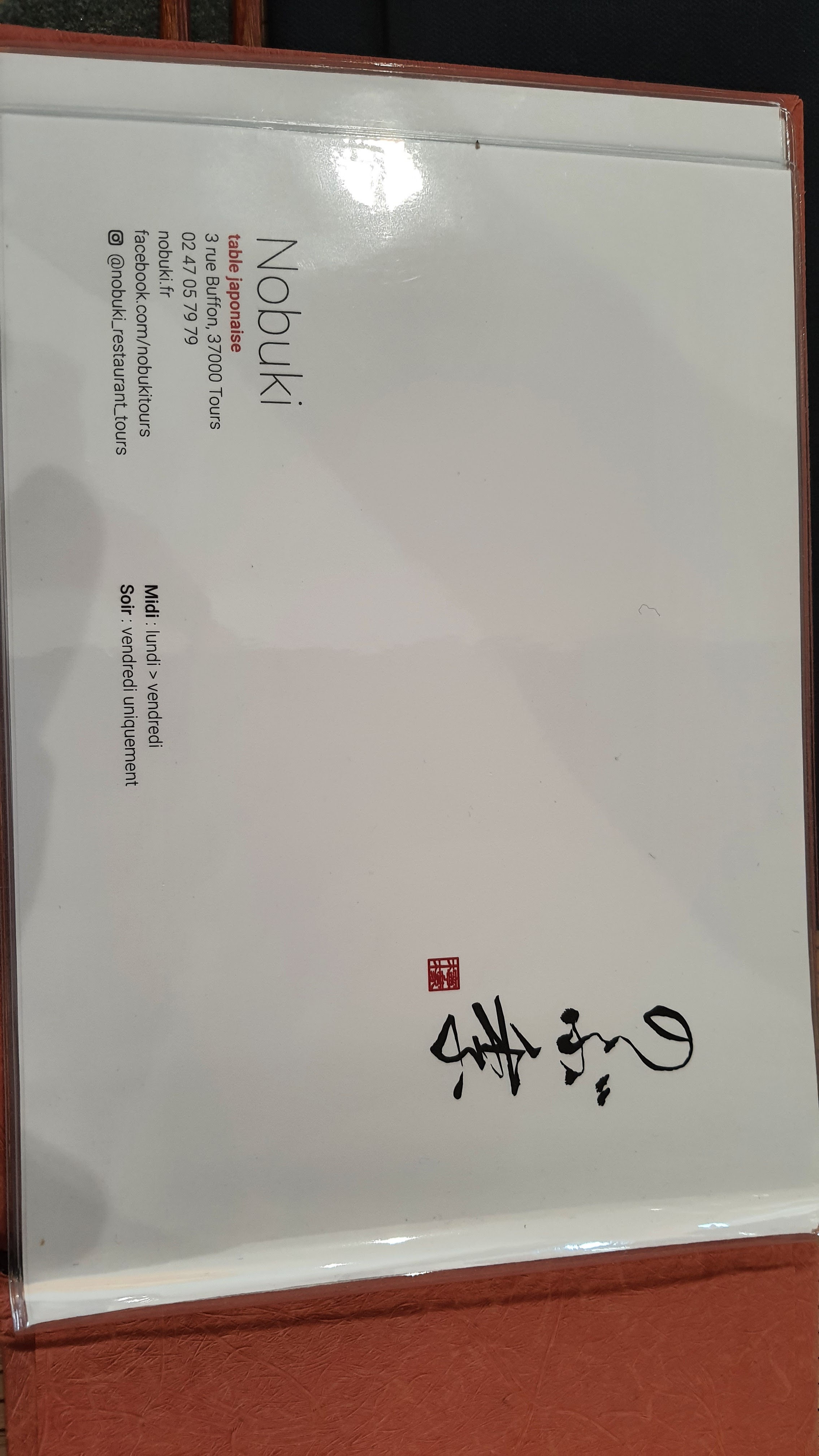 Une expérience vraiment incroyable, en trois temps. D’abord, obtenir une table n’est pas chose simple car l’adresse est convoitée (à raison). Cette rareté fait que l’on est très content d’enfin pouvoir pousser les portes du lieu. Ensuite, parlons de l’équipe. Le service est sans faute, et mériterait vraiment une étoile Michelin. Quant au contenu de l’assiette, les produits sont frais, les saveurs variées et bien choisies, et les menus changent régulièrement. Si vous en avez marre des classiques restaurants soi-disant japonais avec des menus à base d’une lettre et d’un chiffre, NOBUKI vous régalera et vous surprendra par la variété et la qualité de ses recettes. Une adresse incontournable d’Indre-et-Loire, où l’on emmène avec joie les personnes qui nous sont chères.