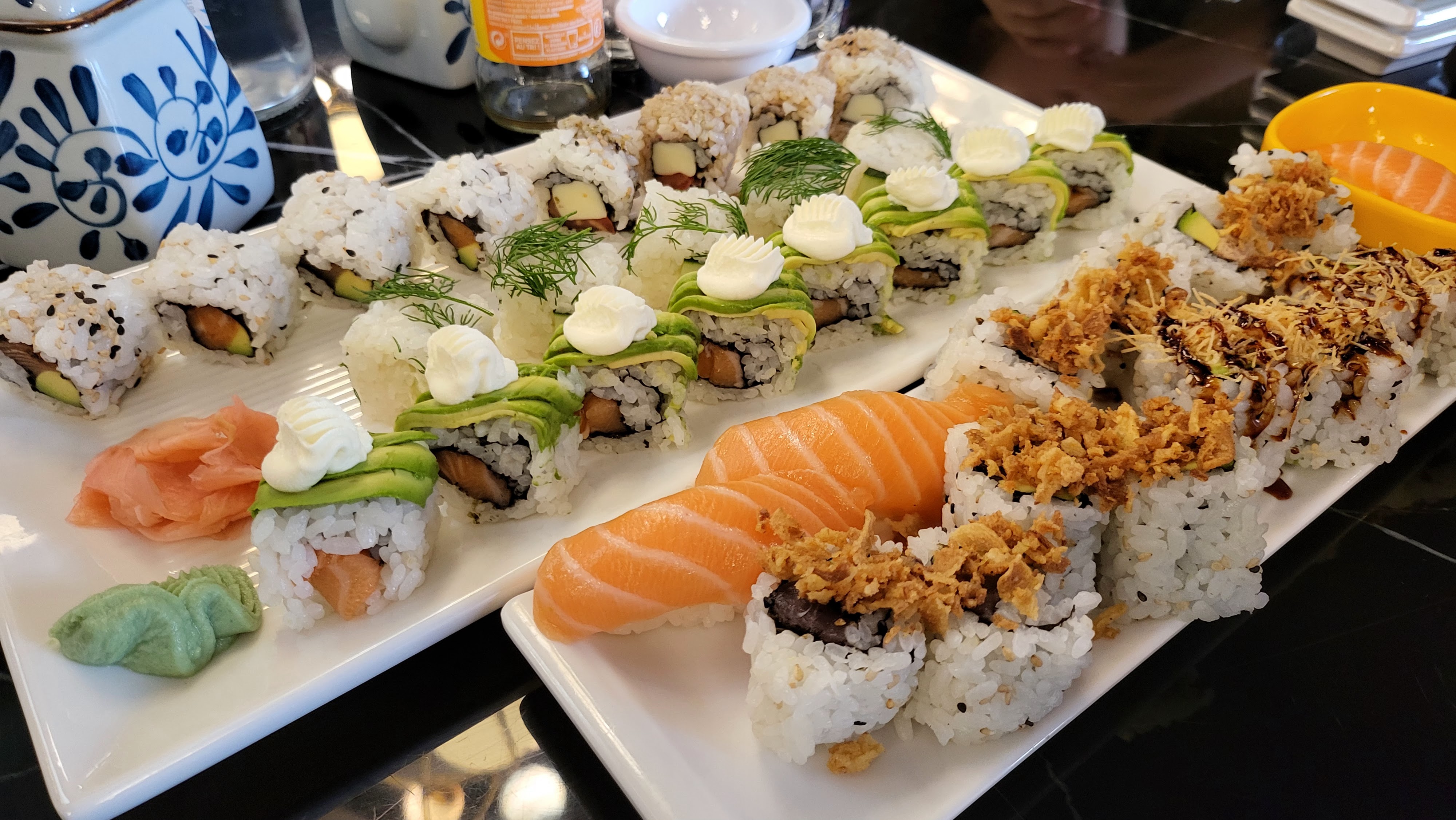 super présentation, super gout, accueille super et souriant. je dirai juste les tranche de saumon et de thon a peine plus fine, sinon c étais parfait.