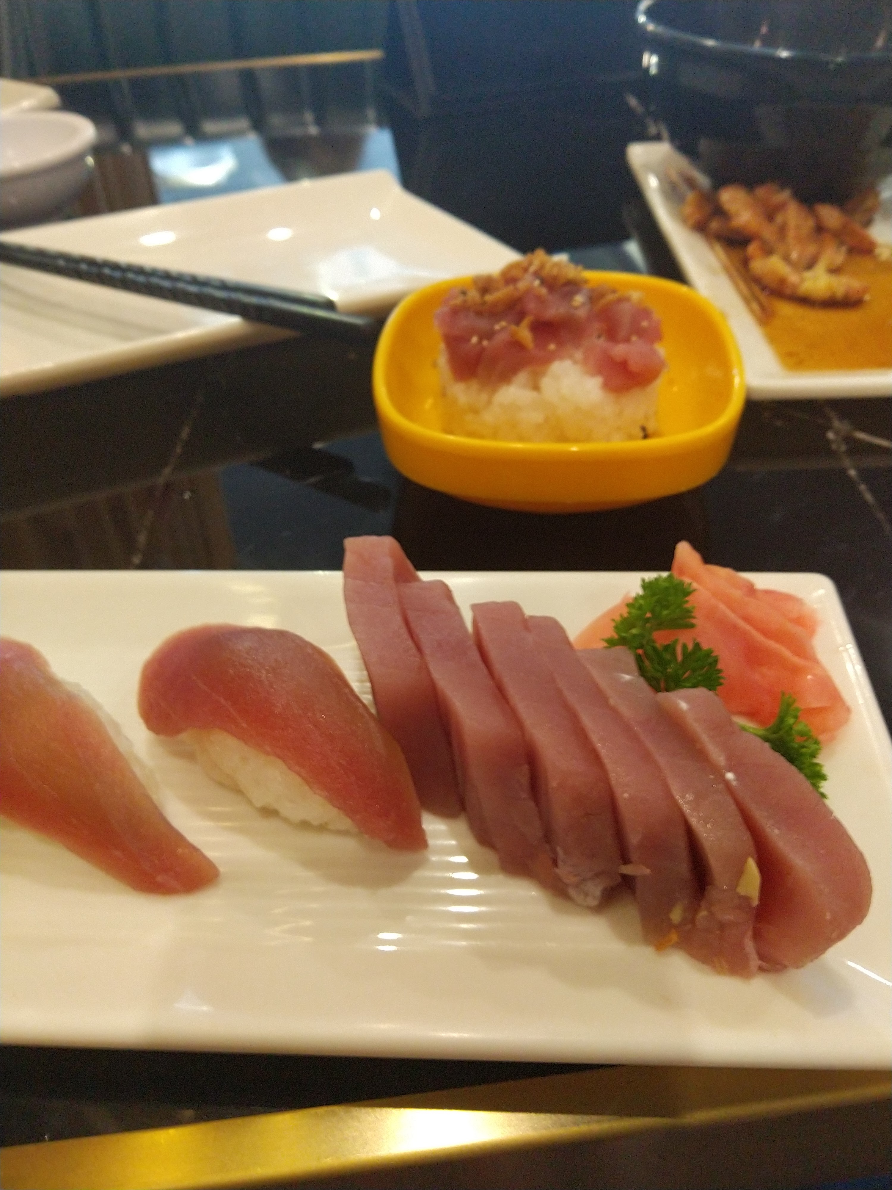 Lieu très bien décoré, des sushis d'une excellente qualité, service à volonté et ultra rapide ! J'ai déjà hâte de revenir !!