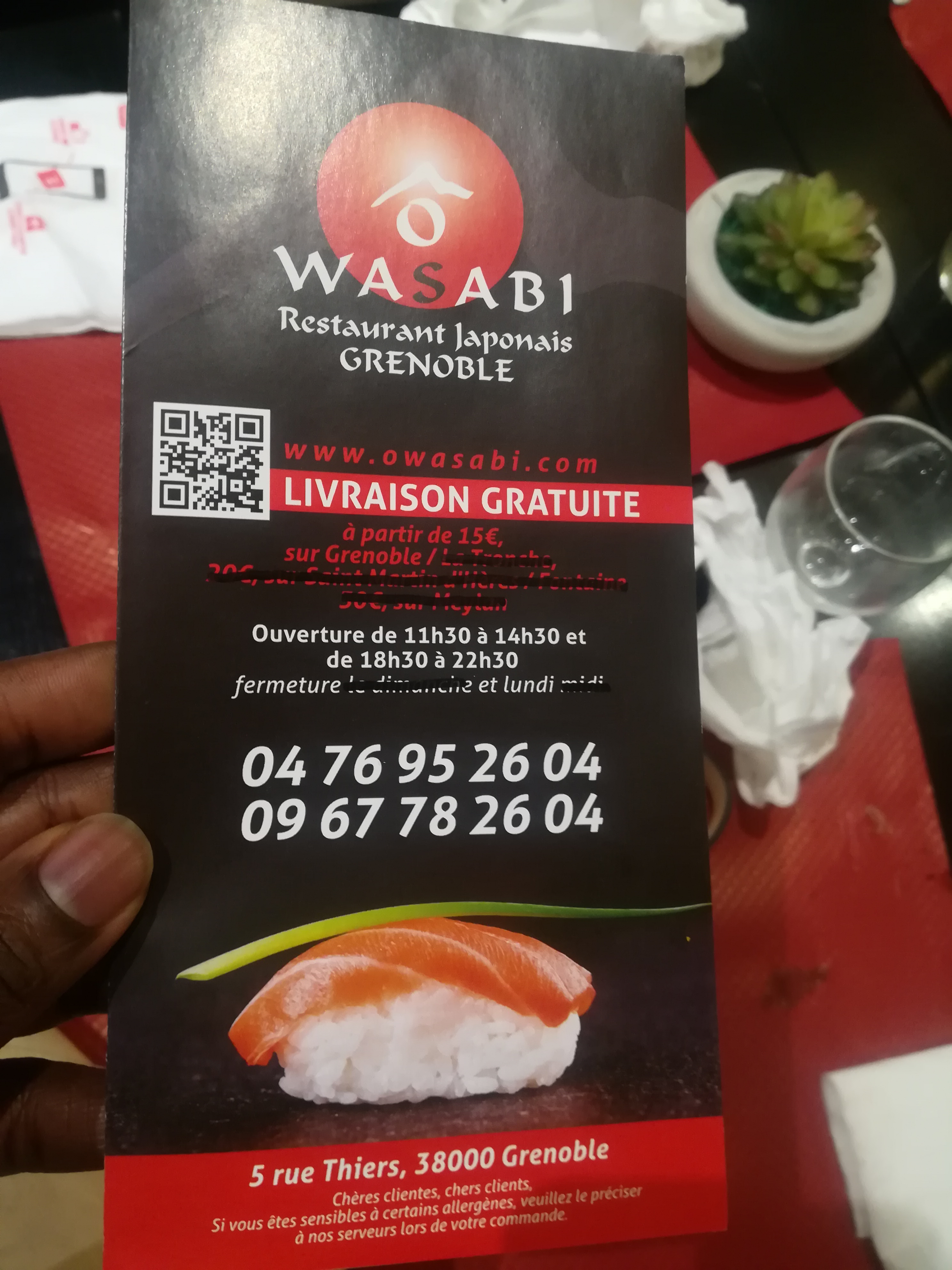 Si vous souhaitez déguster des sushis dans le centre de Grenoble, OWASABI est le restaurant où il faut se rendre. En tout point, il se différencie de ses concurrents : - Produits frais - Portions généreuses - Un vrai service client ( agréable et chaleureux) - Rapport qualité/prix plus que convenable Petit + : + Maki, California et Printemps servis par 8 ! + Services avantageux le midi + Livraison et a emporter + Pas déçue du UDON pour l’avoir goûté (portion généreuse et goûteuse)