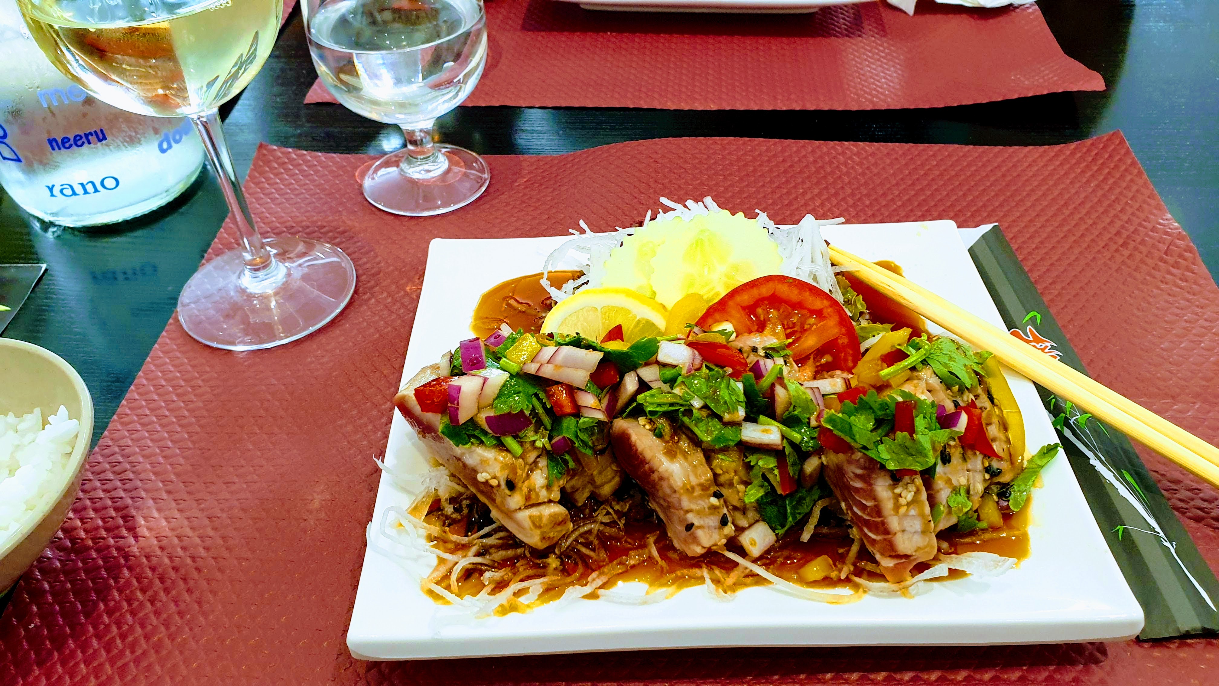 Nourriture vraiment pleine de saveurs ! On sent bien le jasmin dans le riz parfumé, un délice 🌼 De plus, rare sont les restaurants où j'ai pu manger des sushis avec du goût, & là on sent vraiment la qualité des ingrédients utilisés. De plus le gérant est trop adorable, nous avons eu un petit collier de bonbons en partant, ce qui nous a fait retomber en enfance. L'accueil est agréable, le personnel familier. On s'y sent vraiment bien ! ✨ (PS : les tempuras de crevettes étaient si énormes que j'ai pu en manger deux sur cinq MAIS c'était si bon & croustillant !)