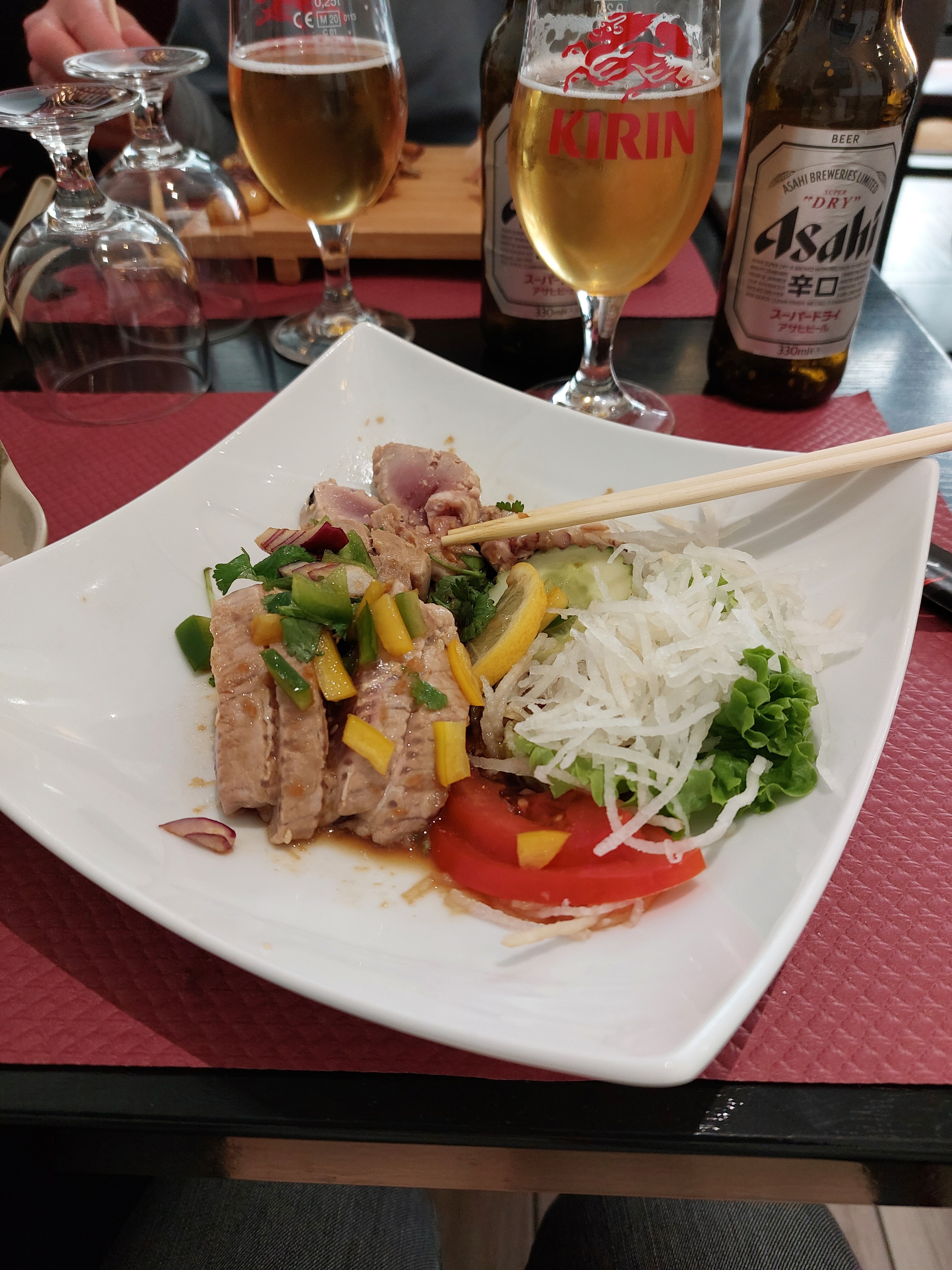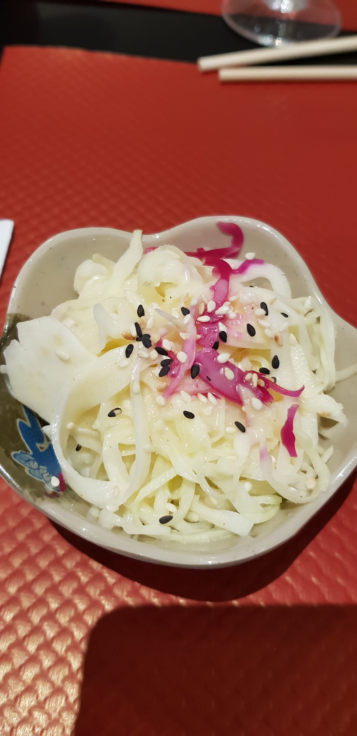 Nous avons été accueilli très chaleureusement ! Le personnel est très gentil et serviable. Nous avons également très bien mangé, les produits sont frais et préparés dans la cuisine ouverte visible depuis la salle. La salade de choux est incroyable. Je n'en ai jamais mangé d'aussi bonne et les sushis, maki et sashimi sont bien frais. La bière japonaise est également très bonne. Une très Belle découverte. Nous y sommes retournés une deuxième fois avec Monsieur.