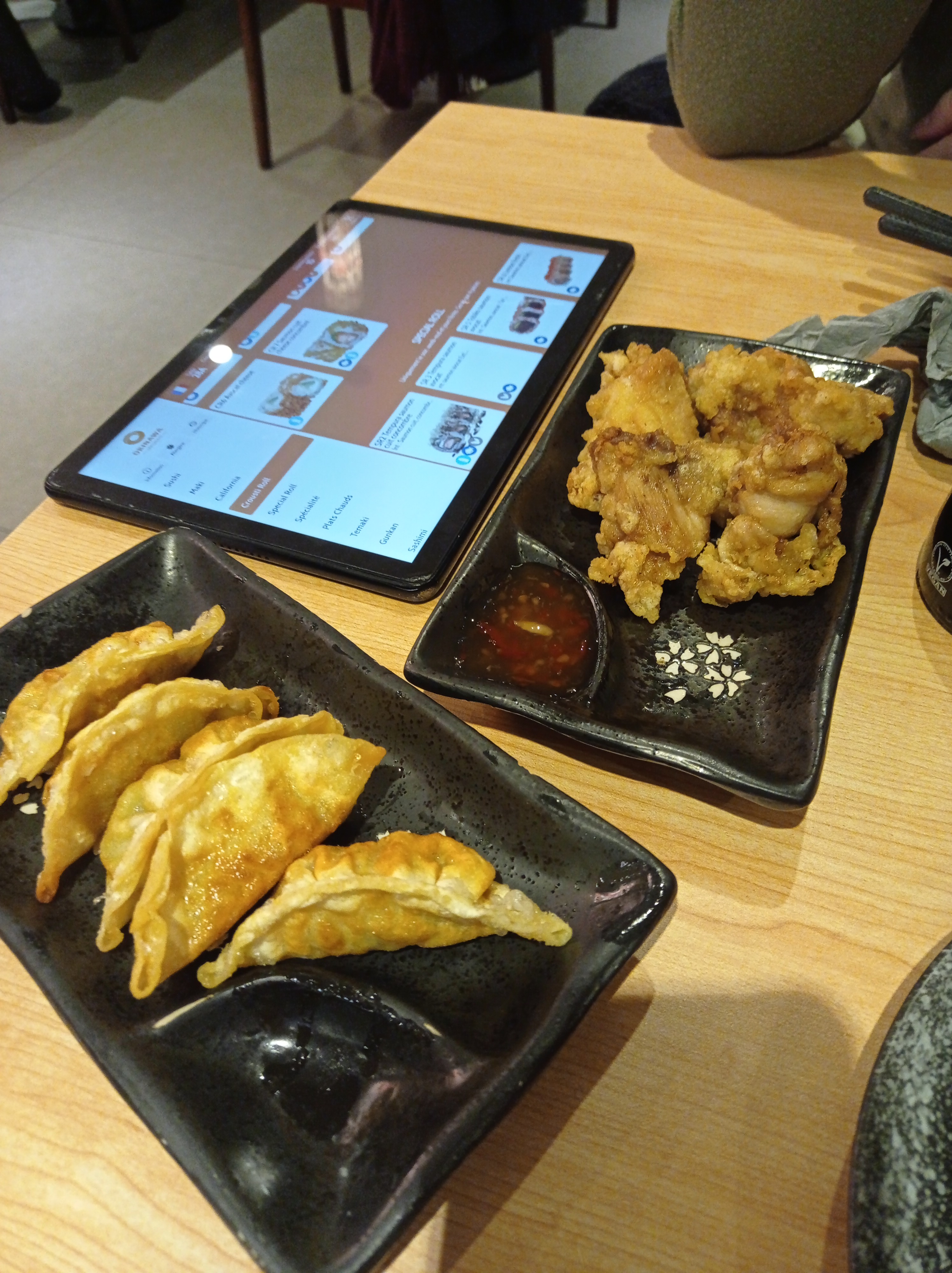 Quand on s'installe dans le restaurant, on nous fournit une tablette via laquelle on peut commander ce qui est à la carte. Grâce à, les produits viennent d'être préparés quand ils arrivent à table, et c'est le meilleur restaurant à volonté du genre sur Amiens. D'ailleurs les gens le savent, du coup je vous conseille de réserver avant de vous y rendre.