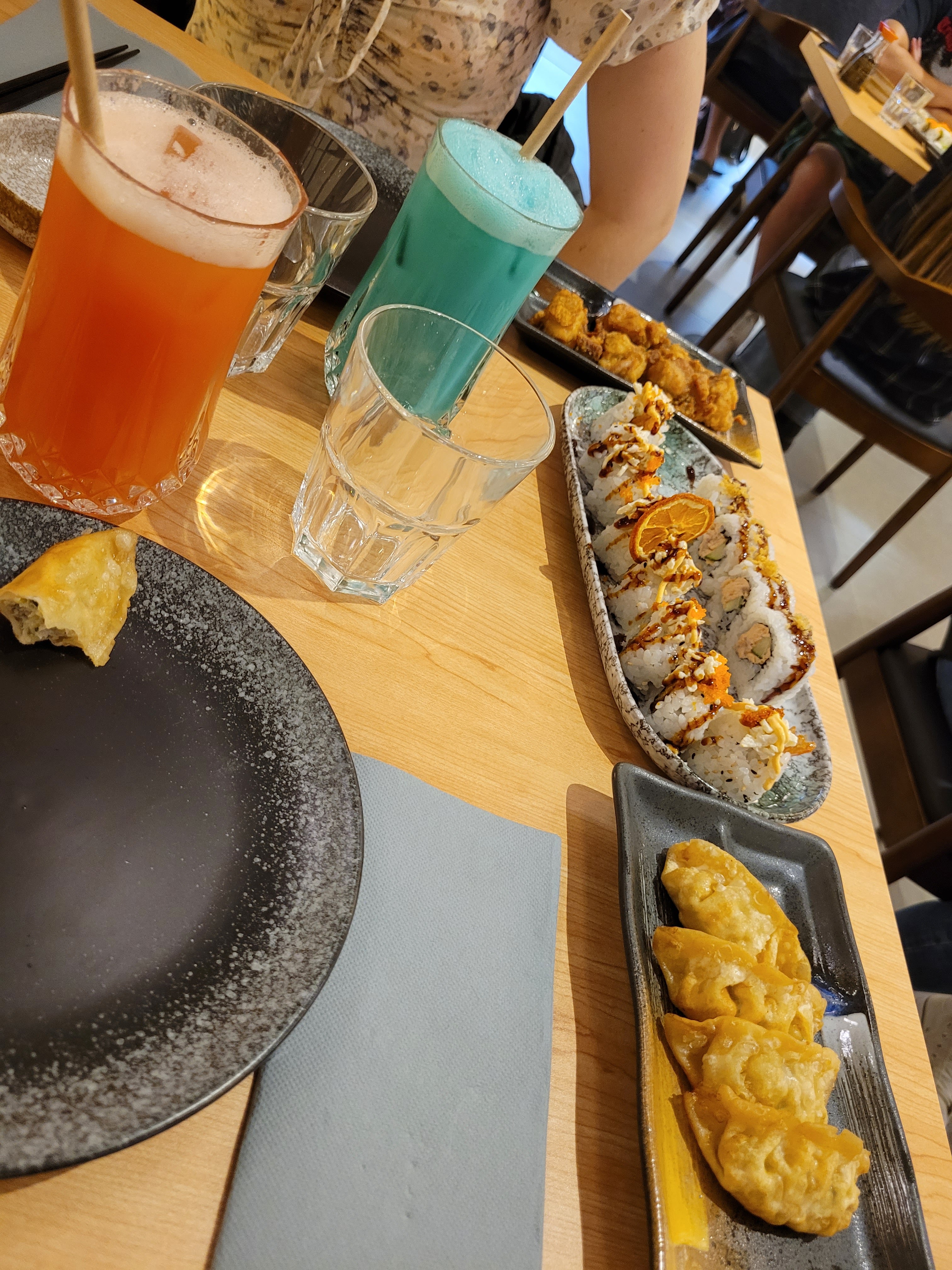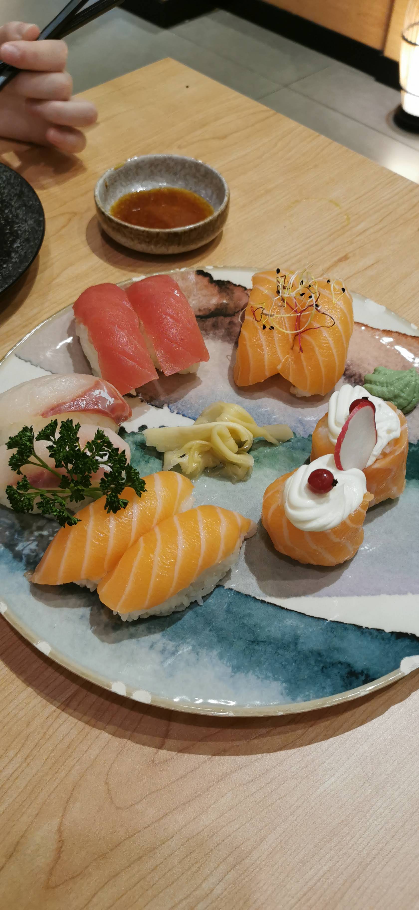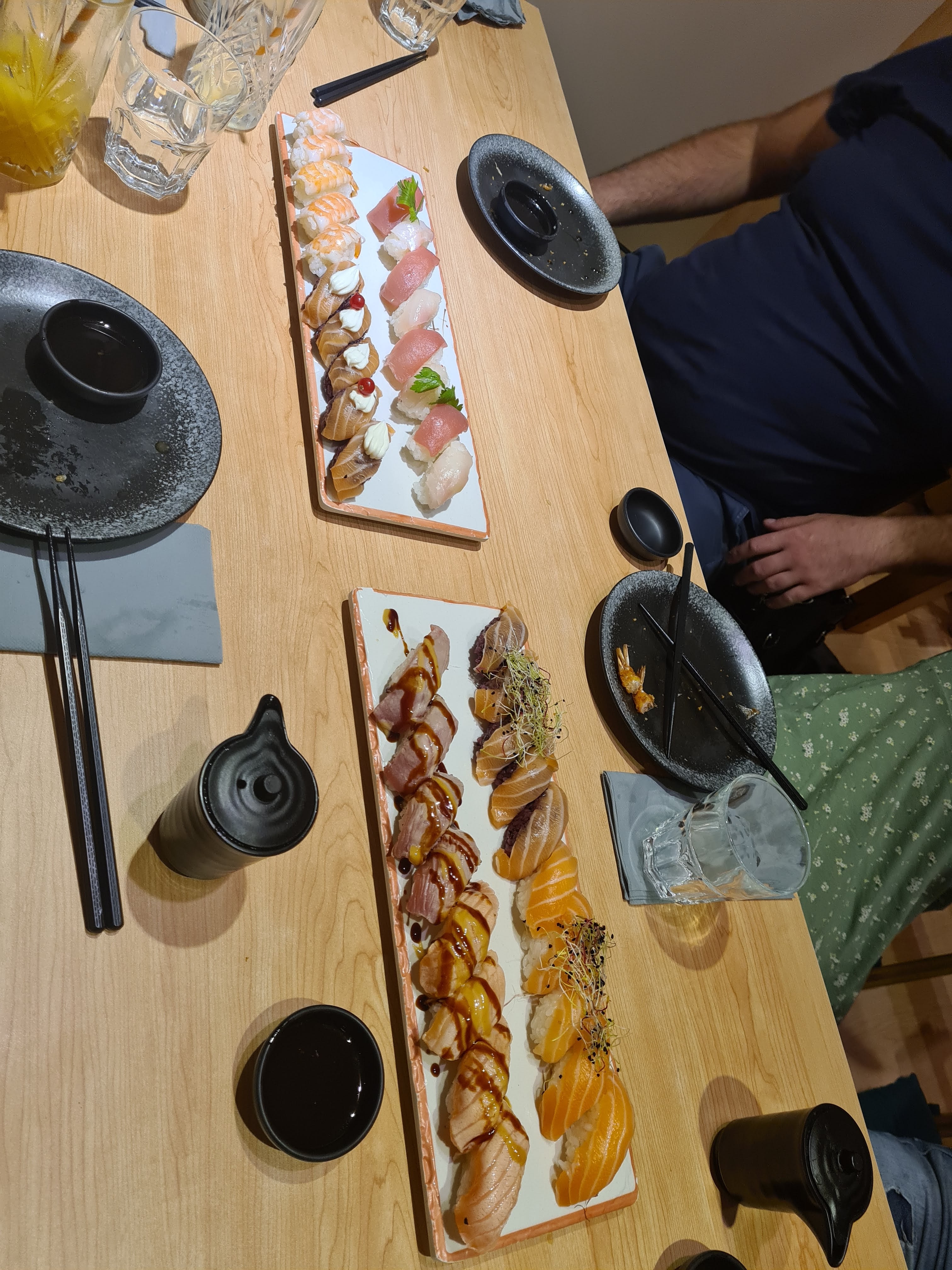 Restaurant très propre, décoration super joli. Il est recommandé +++ de réserver une table avant de venir surtout le soir. Tablette pour commandé les plats ce qui est sympa, service assez rapide. Cependant c'est très salé sans même y ajouter de la sauce.. mayonnaise sur certains sushis je suis pas très fan.. Je recommande quand même ce restaurant avec un large choix de plats, sushis, makis ect...