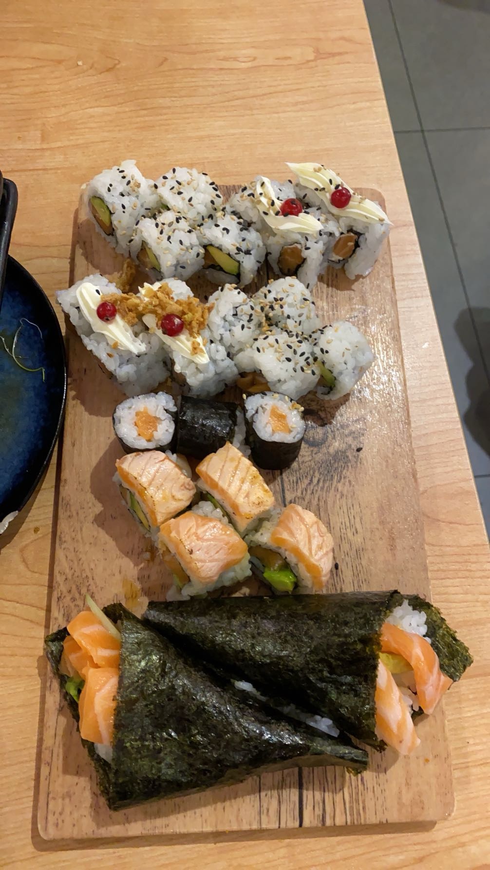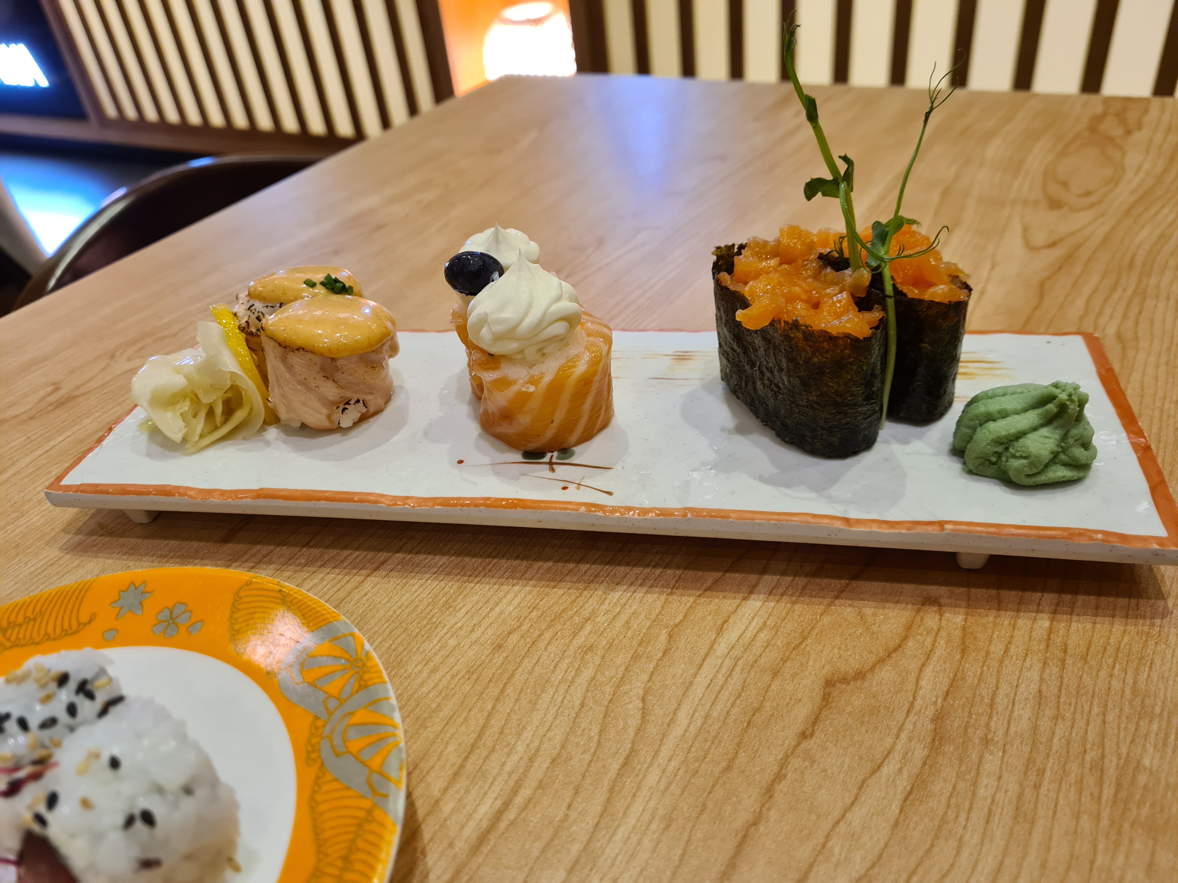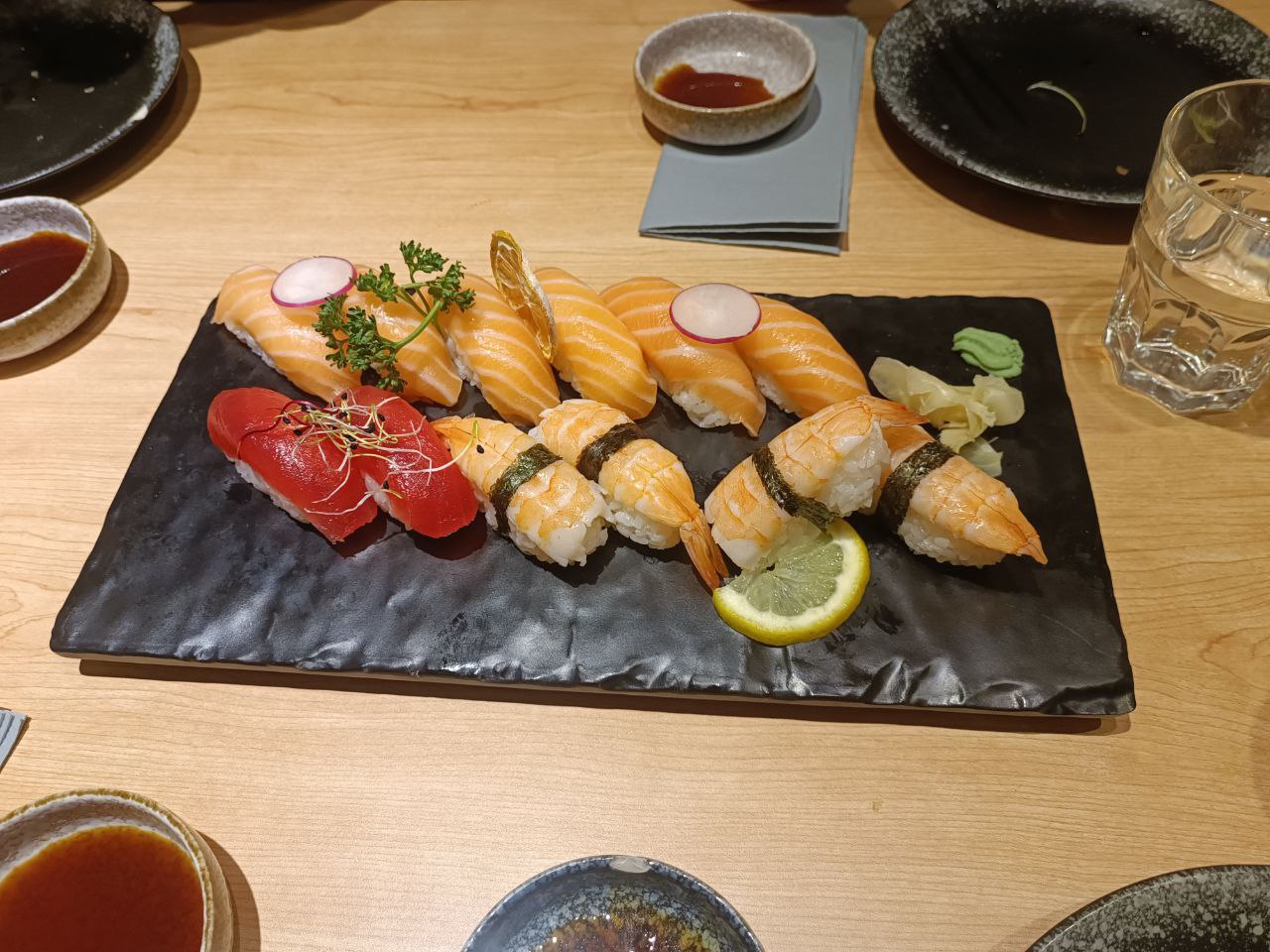 Restaurant très propre, décoration super joli. Il est recommandé +++ de réserver une table avant de venir surtout le soir. Tablette pour commandé les plats ce qui est sympa, service assez rapide. Cependant c'est très salé sans même y ajouter de la sauce.. mayonnaise sur certains sushis je suis pas très fan.. Je recommande quand même ce restaurant avec un large choix de plats, sushis, makis ect...