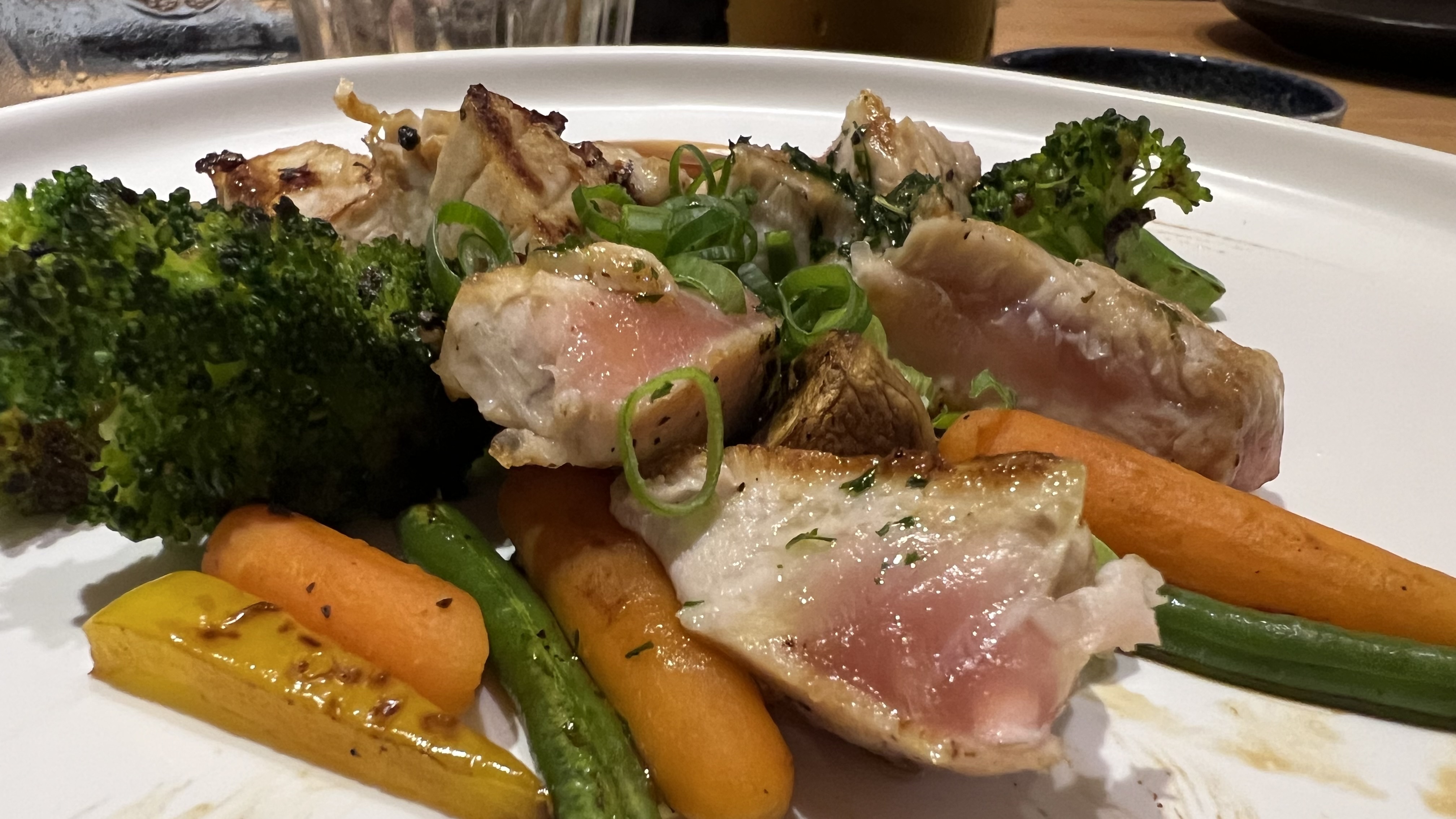Délicieux! C'est bon, c'est frais. C'est beau. Franchement je recommande Attention à ne pas y aller trop proche de la fermeture car le système de commande avec la tablette ne permet de commander que 10 item et il faut patienter 15 minutes pour pouvoir recommander. Ça ne m'a pas empêché de manger largement à ma faim. Je reviendrai essayer la carte du soir.