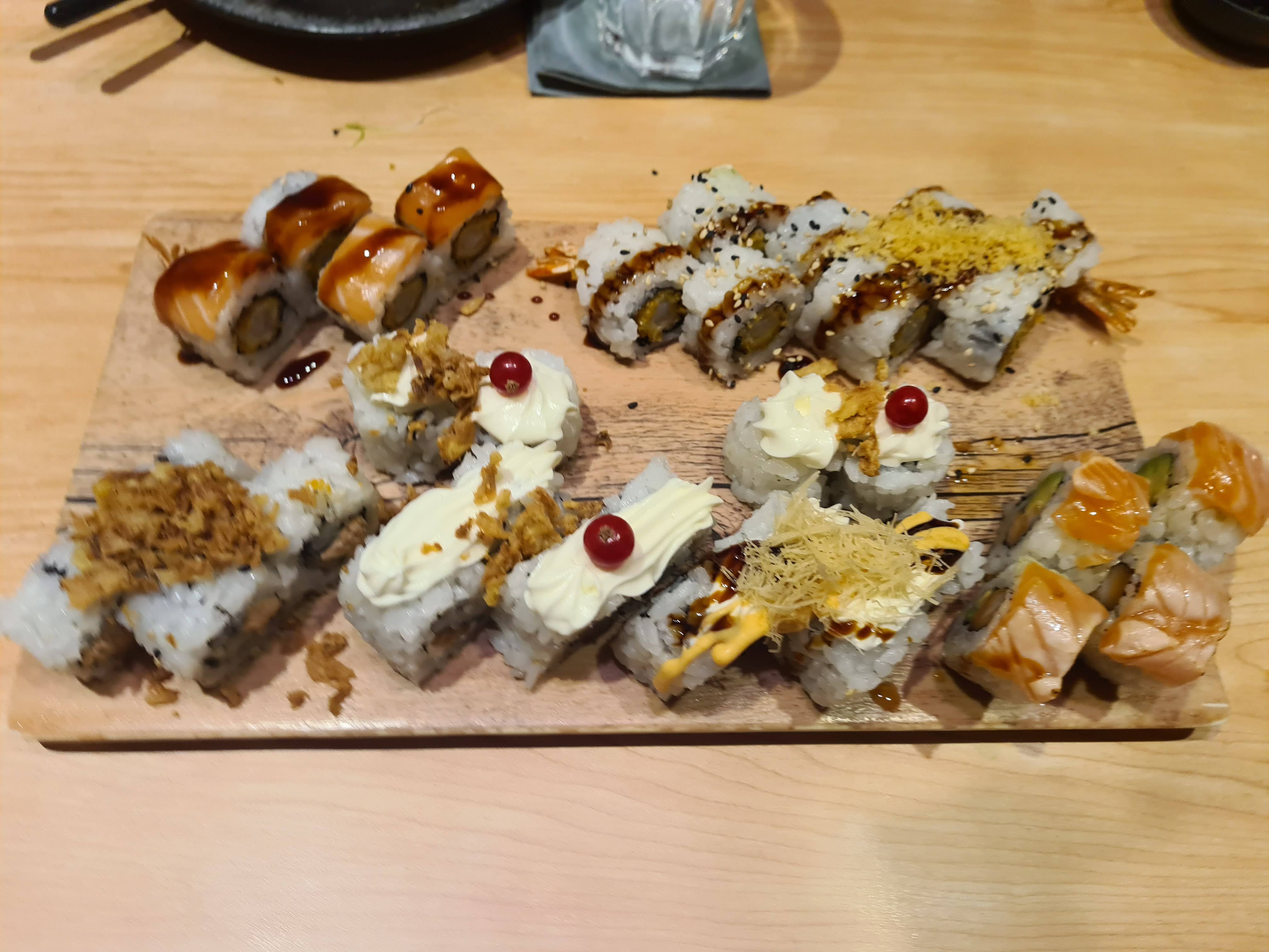 C'était super bon ! Le service très sympa. Il y a vraiment des sortes de sushi, maki ... très originaux. Tout était frais et très bon. Je conseille plus le frais car j'ai un peu été déçue des aliments frits mais je recommande même pour l'ambiance du restaurant.