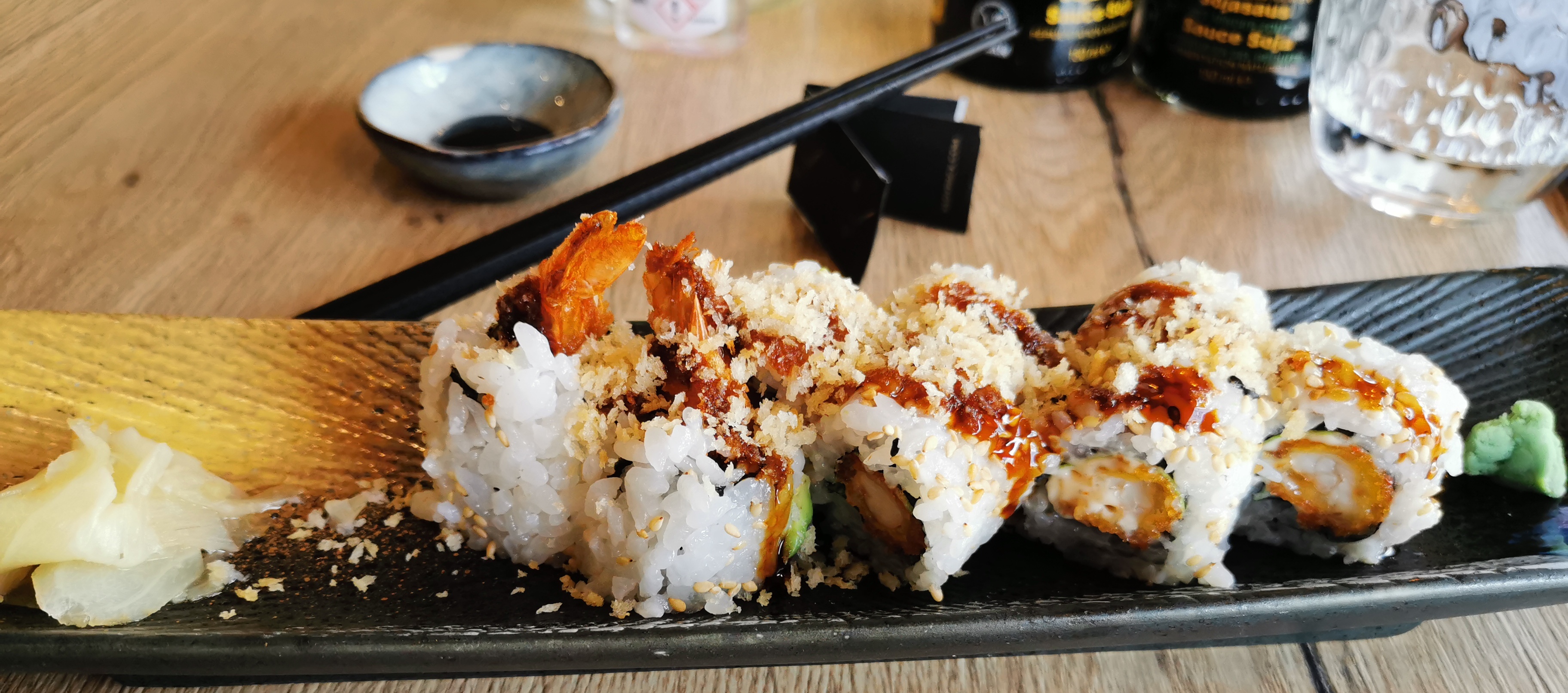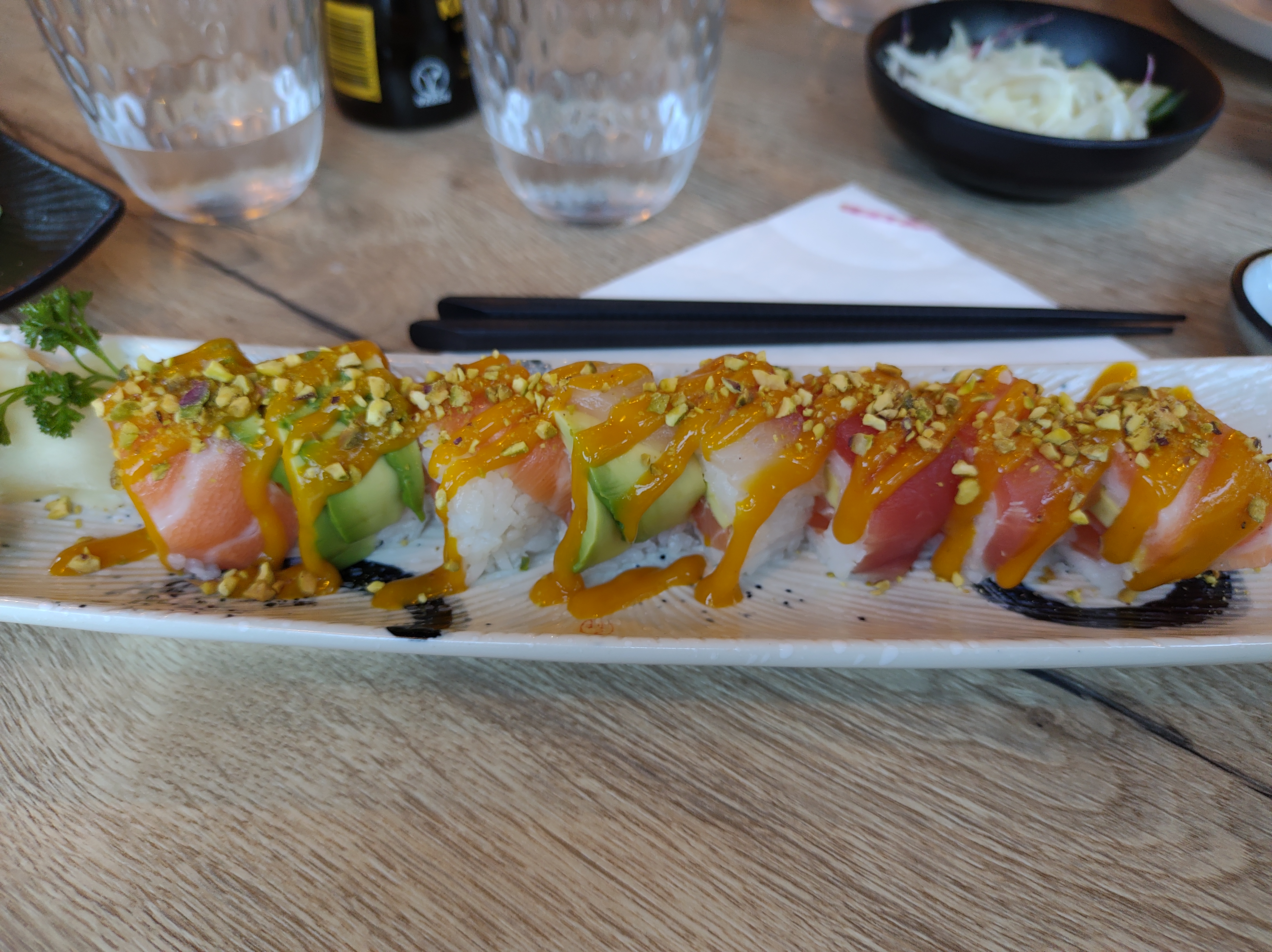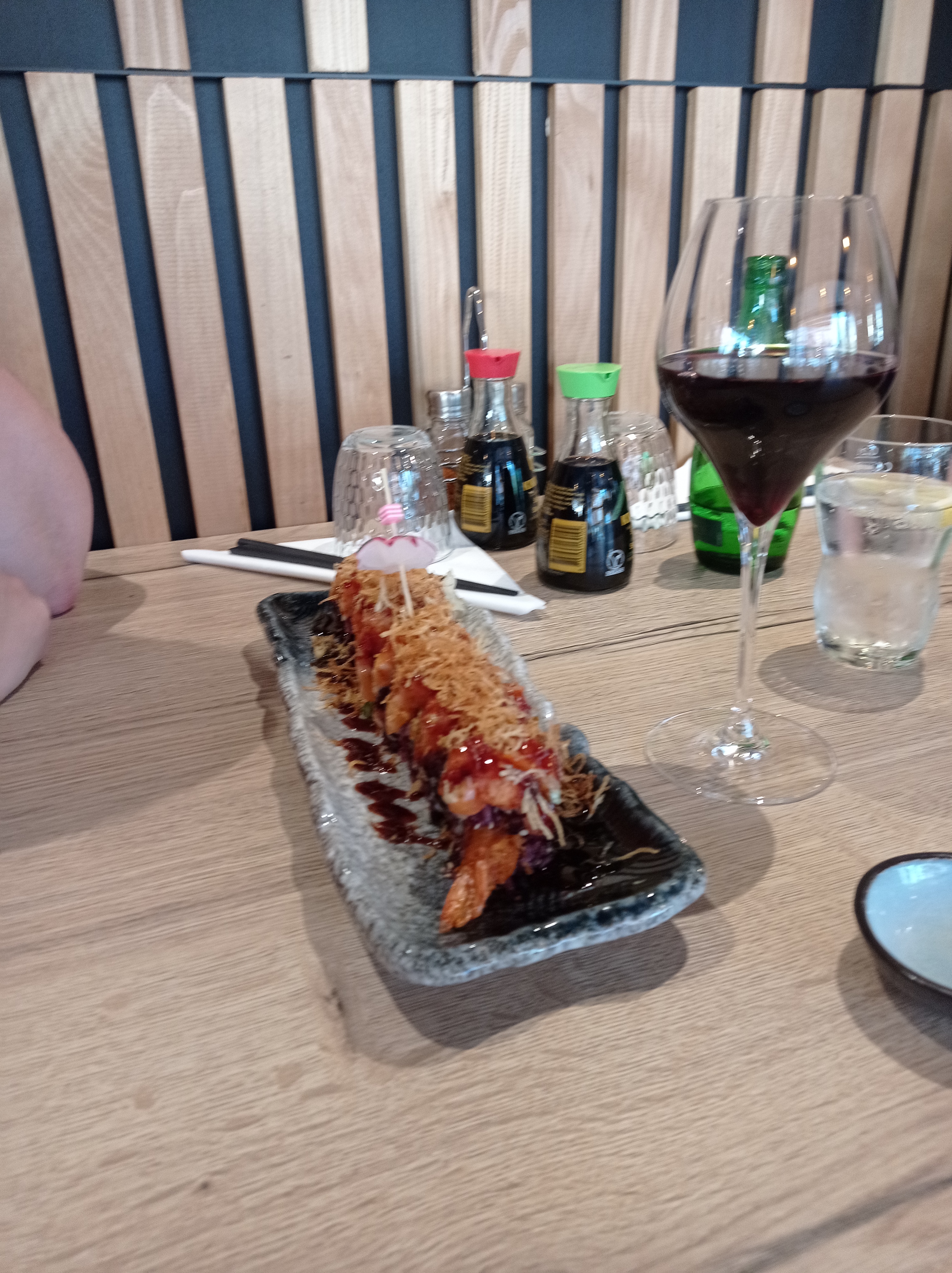 En arrivant, on profite d'une décoration super sympa qui met tout de suite dans l'ambiance. Pour le reste l'accueil est bien, le service sympathique. Les sushis signatures sont bons, mais au final l'addition est quand même importante dans l'absolu...