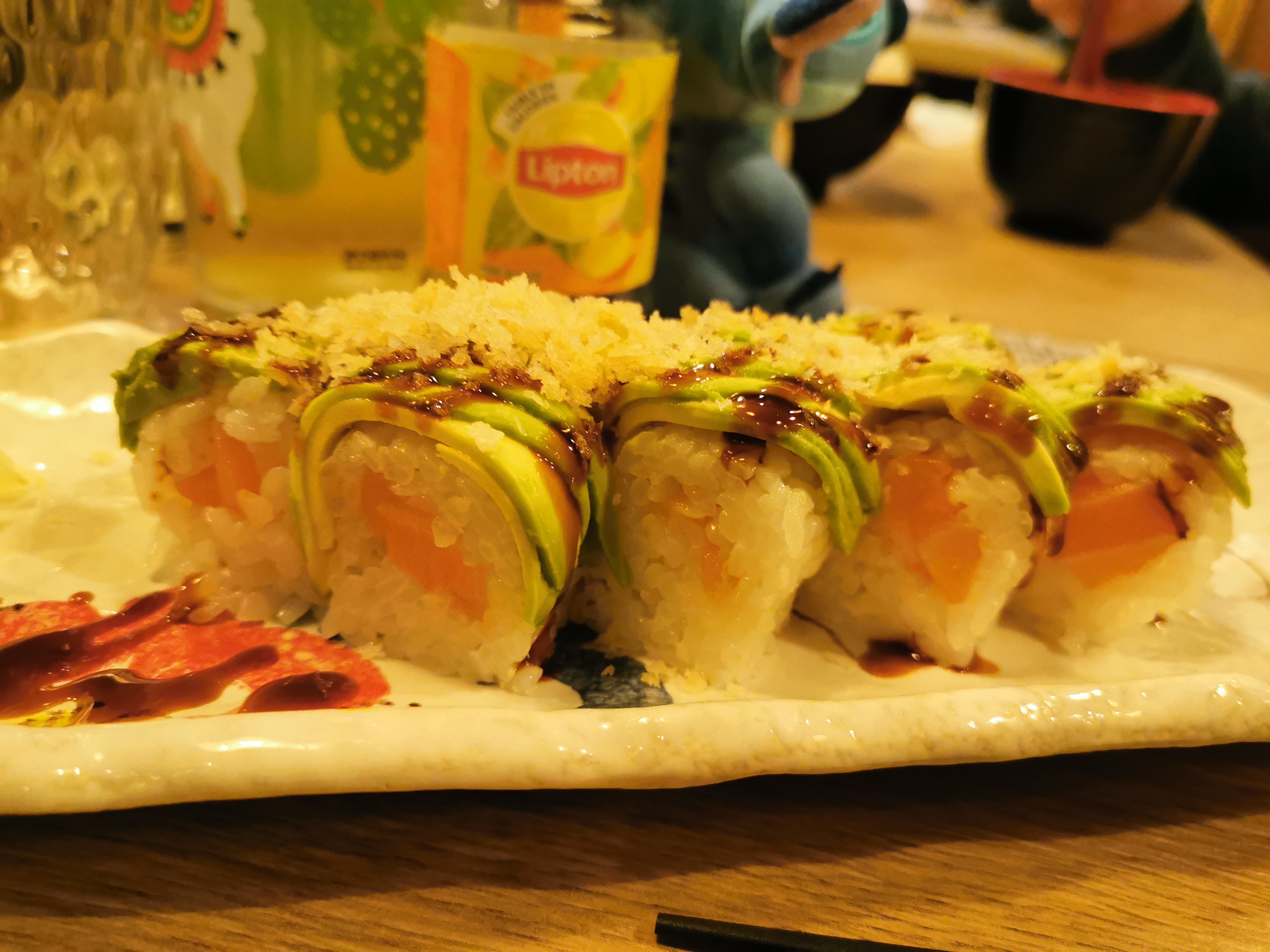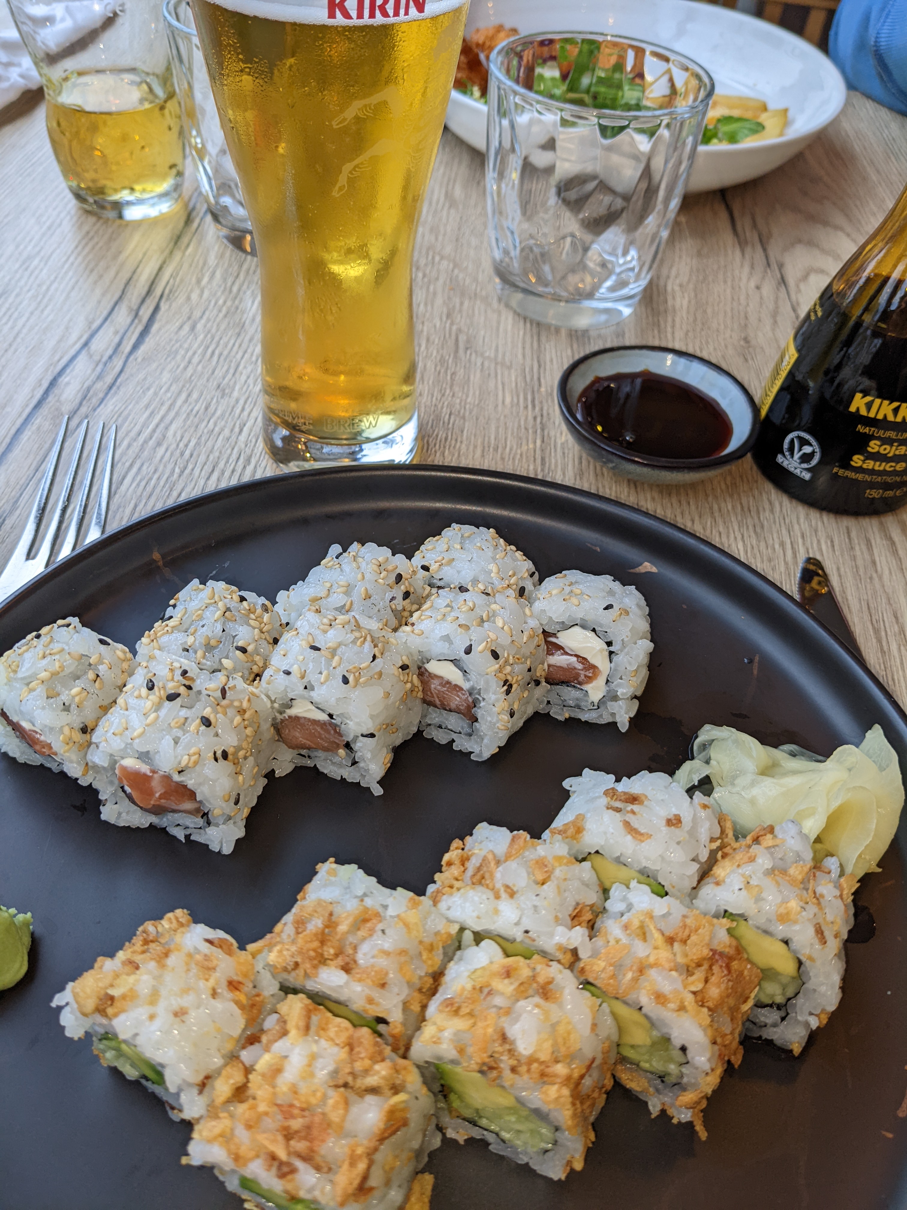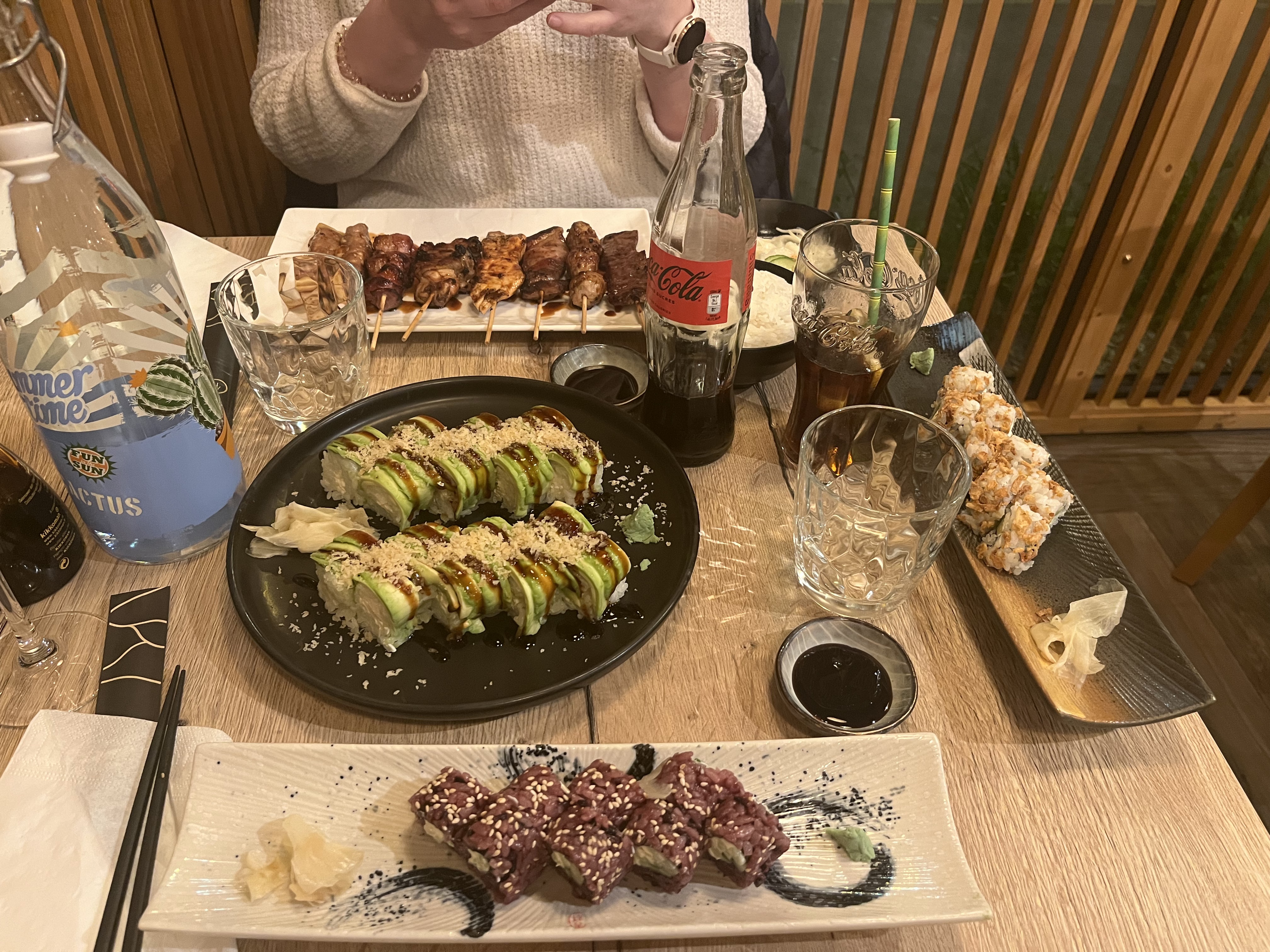 En arrivant, on profite d'une décoration super sympa qui met tout de suite dans l'ambiance. Pour le reste l'accueil est bien, le service sympathique. Les sushis signatures sont bons, mais au final l'addition est quand même importante dans l'absolu...
