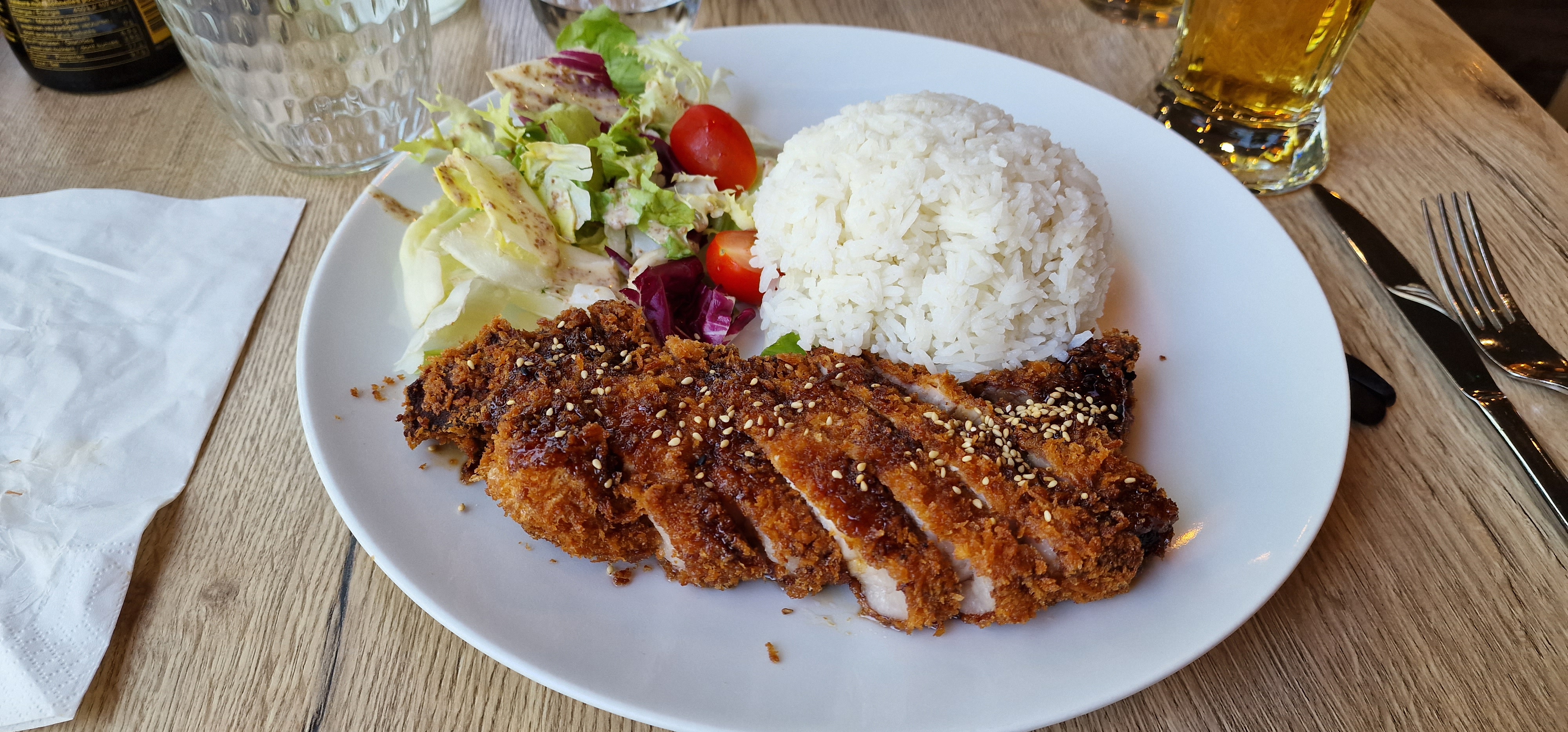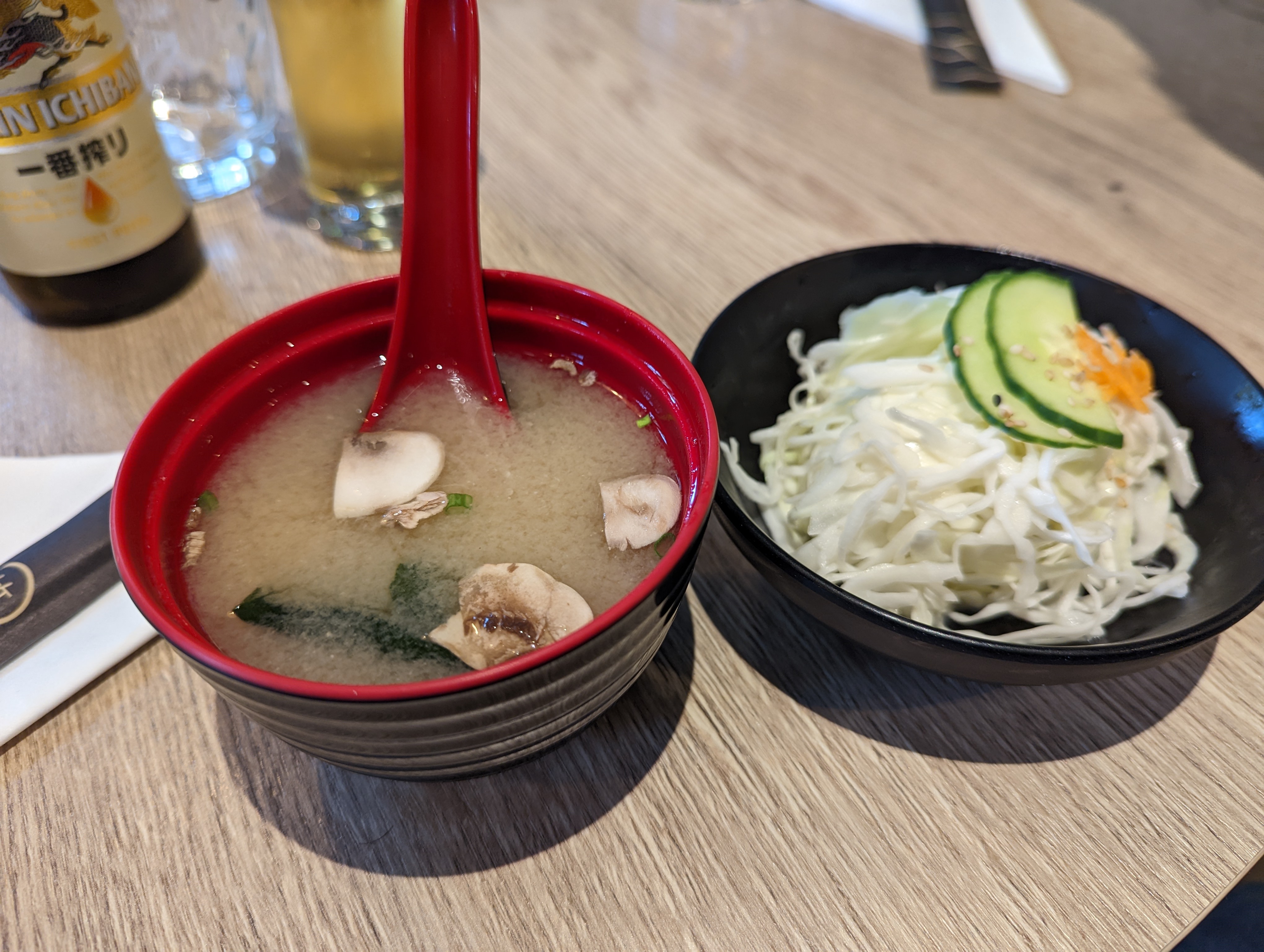 Donkatsu était bon, et la sauce du Miso Ramen était un peu moins riche que le goût habituel du Miso Ramen. 👍 la prochaine fois j'essaierai les rolls. En tout cas, on a été servis très rapide, le prix ça va, les decos très sympas, même les toilettes très propres, les serveurs accueillants.
