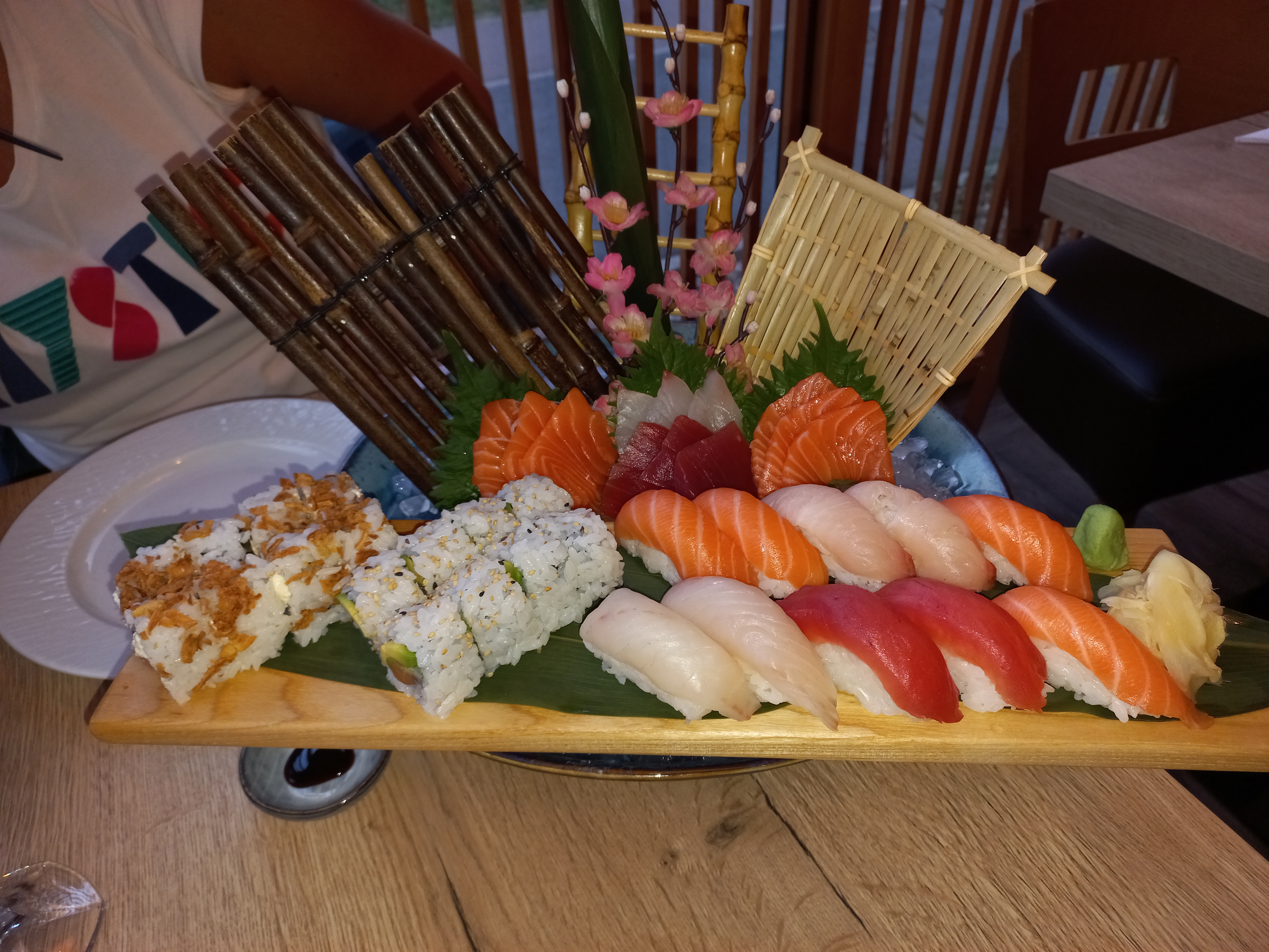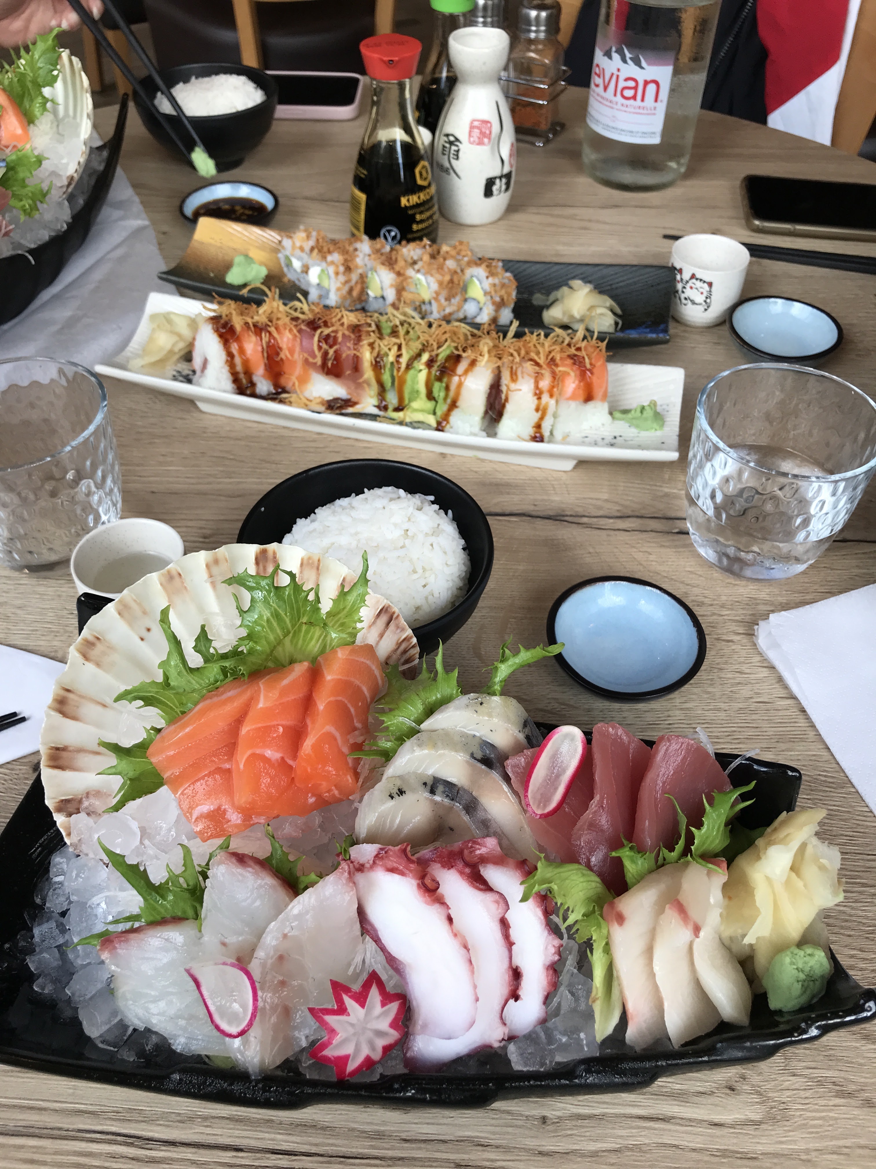 Un super dîner. Nous avons commandé en livraison. Le rapport qualité prix est tout à fait correct, les brochettes sont plutôt basiques mais les sashimis sont bien épais et savoureux. J'ai adoré les croquants rolls ainsi que les dragon rolls. La commande est arrivée à l'heure indiquée, il n'y a pas eu de soucis concernant la commande.