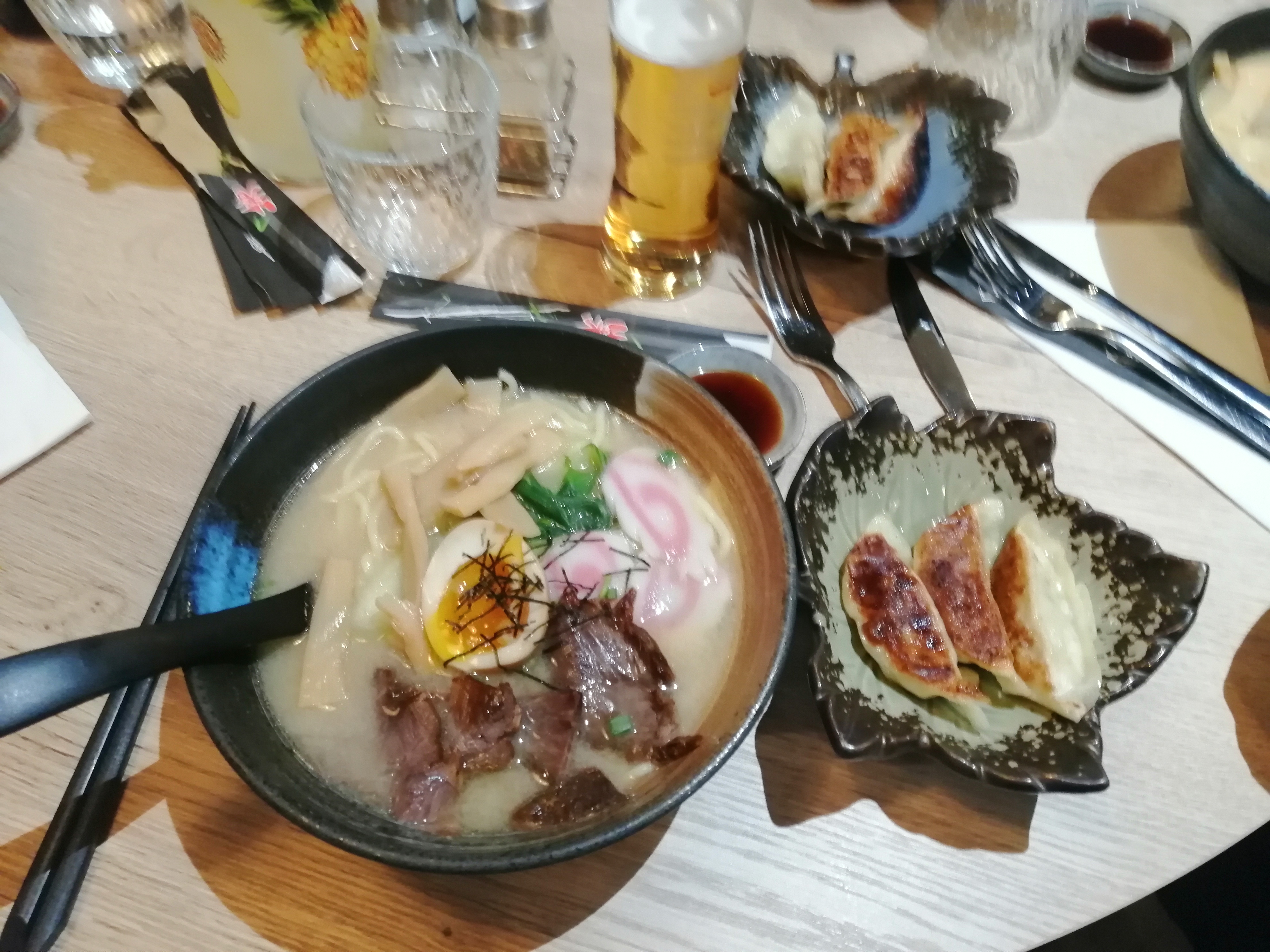 Seconde fois pour moi dans ce restaurant et je me suis vraiment régalée. Je n'ai pas encore pu goûter aux sushis car j'ai pris leur excellent ramen au boeuf et des brochettes, mais j'y retournerai volontiers et avec grand plaisir. Tarifs plus que convenable pour la qualité de leur cuisine. Service un peu long et maladroit car je pense que la serveuse était nouvelle et débutante, donc je n'en prendrai pas compte. Si vous cherchez des ramens sans devoir aller jusqu'à Paris, vous êtes à la bonne adresse 😉.