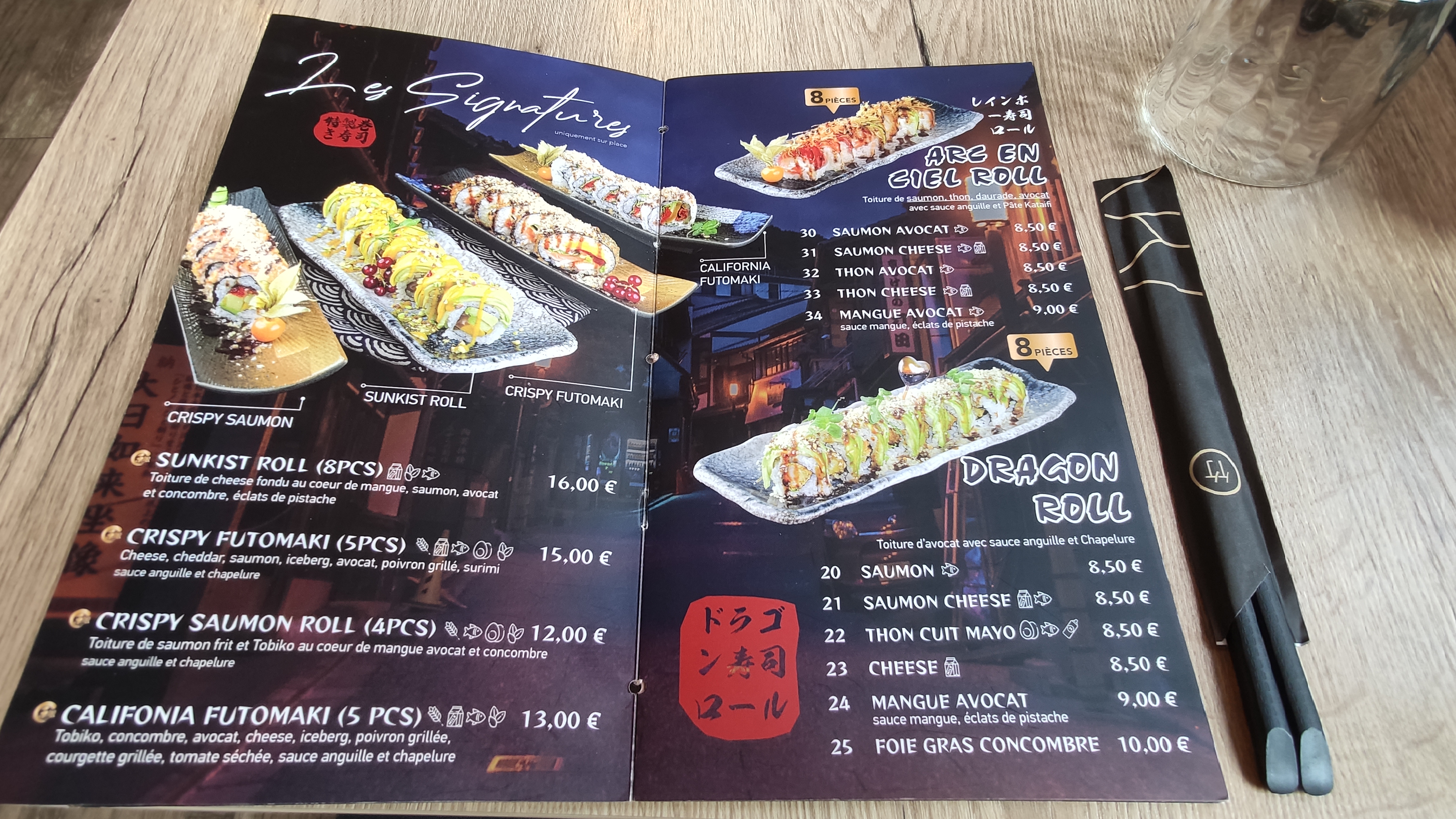 Nous y avons dîné dans le cadre d’un week-end au parc Disneyland. Belle décoration, on apprécie le choix du bois pour les murs. Côté food, nous avons pris un assortiment d’entrées frites à partager et un menu love chacun.Très complet il propose une série de sushis, sashimis et californian rolls suivis de brochettes. Le poisson était d’une fraîcheur impeccable et les makis très bien confectionnés. Le personnel est souriant et attentionné. À tester