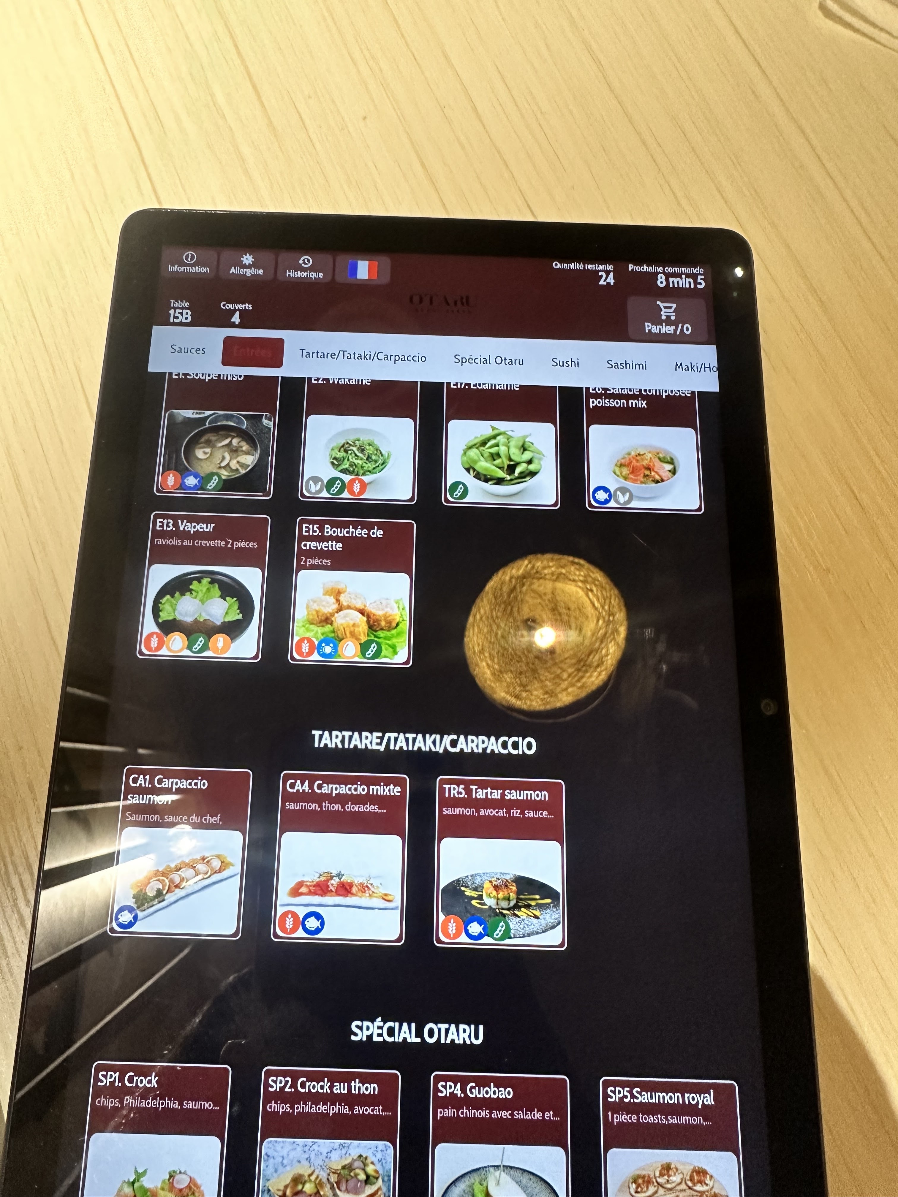 Posté le 11/02/2023 à 13:34"Déjeuner en couple à Otaru. Bon accueil, on vous installe et on vous explique le concept (buffets pour les entrées et plats servis à table / boissons et desserts en supplément). Les commandes se font via une tablette qui vous est remis dès votre installation (merci, on n'est pas obligé de sortir le téléphone). Vous pouvez commander autant de fois que vous voulez mais chaque commande est limitée à une quantité et il y a un temps minimum à attendre entre chaque commande. Une fois les commandes passées, vous êtes très vite servis. La présentation des plats est un peu plus soignée et les plats sont correctes gustativement. Un peu déçu par les guobao car le pain chinois était bien trop sec. Je trouve dommage (avis personnel) que les makis, hosomakis, californias et rolls ne peuvent être commandés qu'avec un minimum de 6 pièces car ça peut faire beaucoup pour certains (le riz cale vite). Sinon, le restaurant est bien décoré. J'aime beaucoup les boxs de 4 et 6 personnes qui sont au centre du restaurant, ça donne envie de s'y installer. Je pense que j'y retournerai avec plaisir :-)"