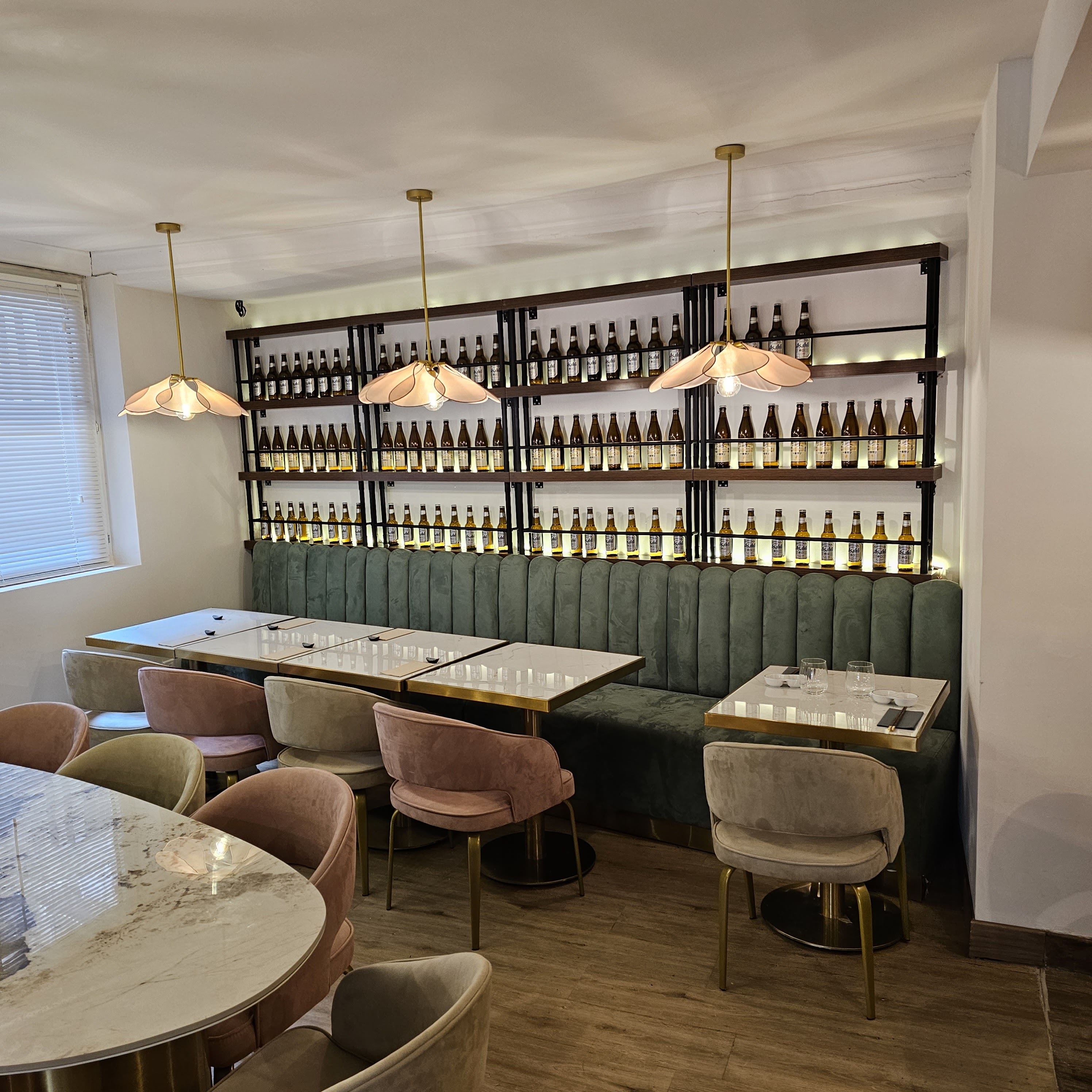 Lieu super bien placé, chaleureux, super décoration. Service un peu froid. Les plats sont bons mais manque de générosité... (nous trouvons que les makis sont très petits, même aux anciens locaux c'était le cas). (Petite déception pour ma part, que mon petit chien ne soit pas accepté. )