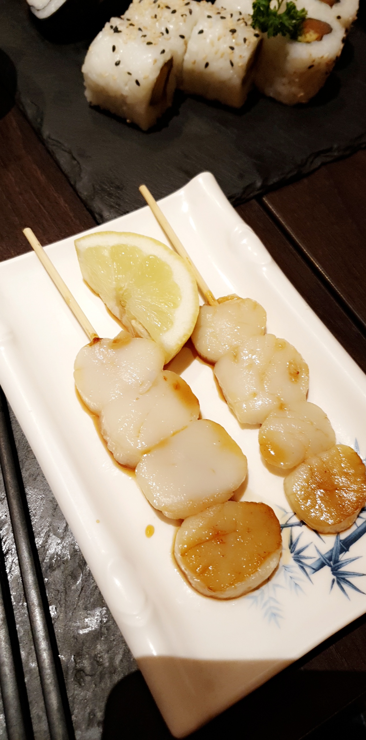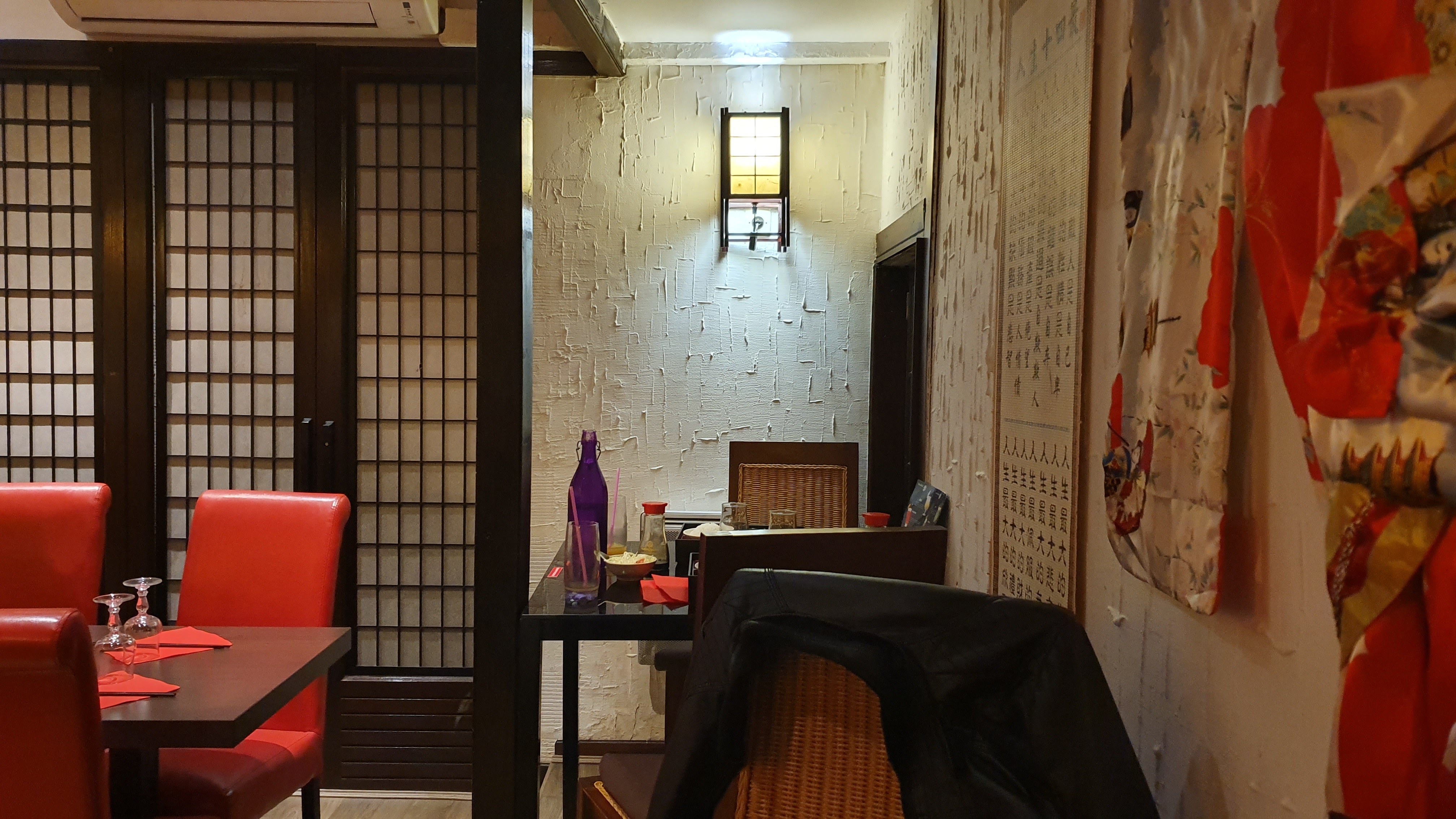 La déco à l'étage est superbe, nous avons était accueilli par un Monsieur agréable et souriant et qui a été à l'écoute pour ma Maman qui a la maladie de cœliaque...Tout s'est bien passé les sushis sont bons les brochettes et gyozas délicieux.
