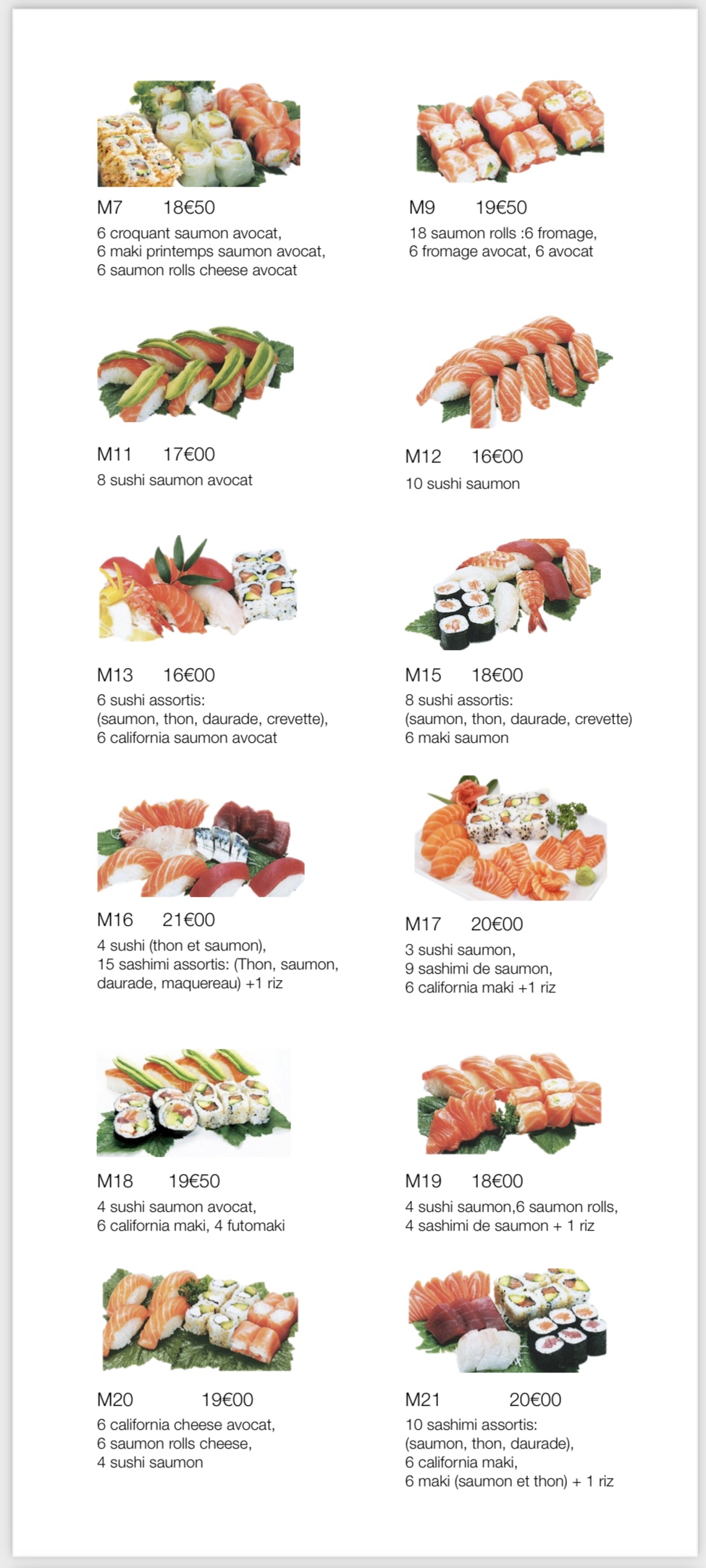 Faites attention, j’ai voulu passer commande, la dame au téléphone me dit que la dernière fois je n’ai pas payé et pas récupéré ma commande alors que cela ne m’est jamais arrivé ! Une erreur de son collègue qui apparemment est en vacances … Les sashimi on rétrécis +++ alors que le prix reste le même.