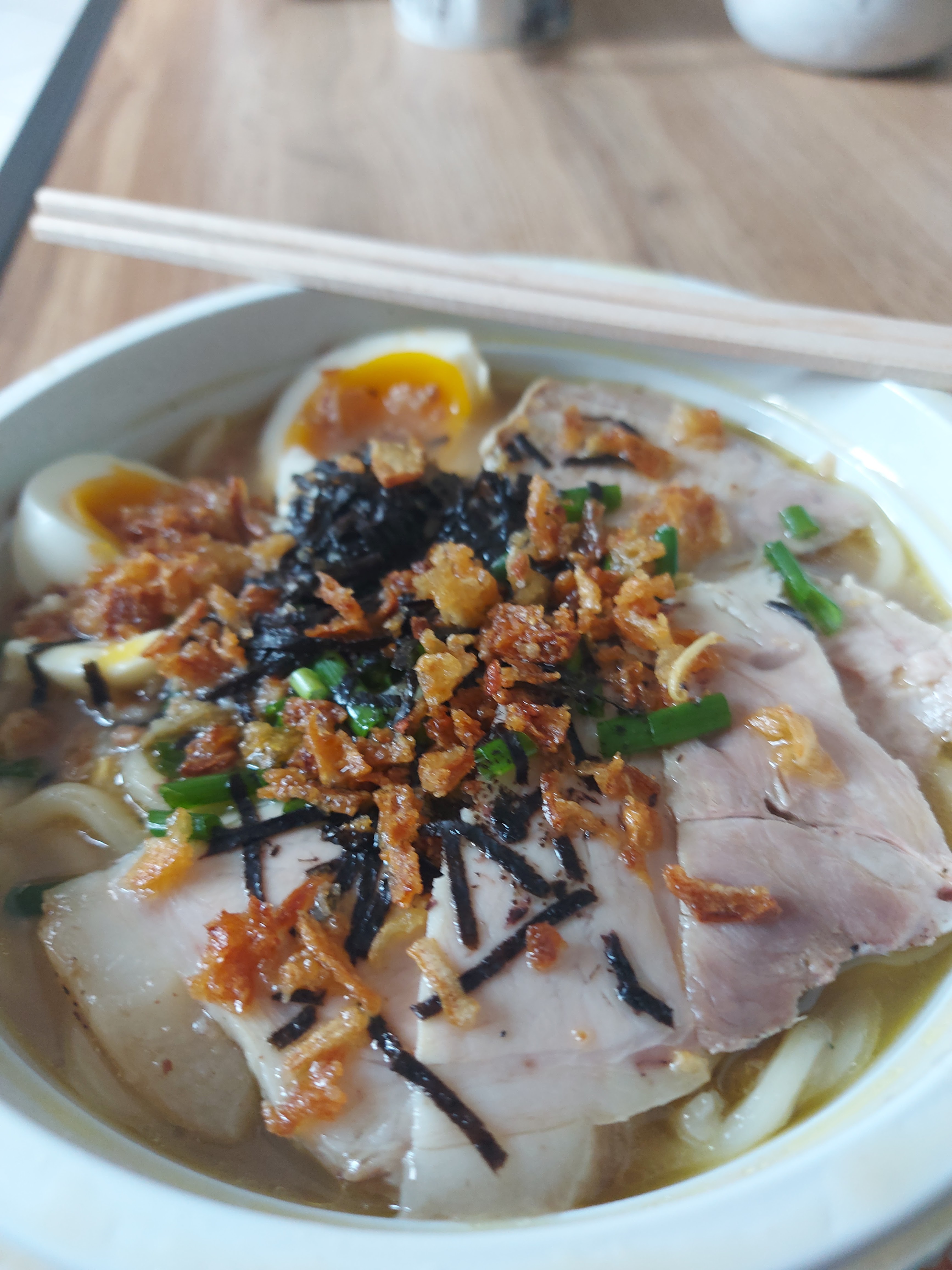 Commander un bol de ramen et nem au poulet par uber eat , tous c est bien passer les ramen sont bon les nem aussi , seul bémols par uber est il y avais boul coco je crois offert après 15euro d achat je n ai pas eu et en vrai de vrai je m attendais a voir des ramène comme naruto 🤣🤣 je suis déçu 🤣🤣🤣 bien entendu je plaisante pour naruto Bon courage à l équipe