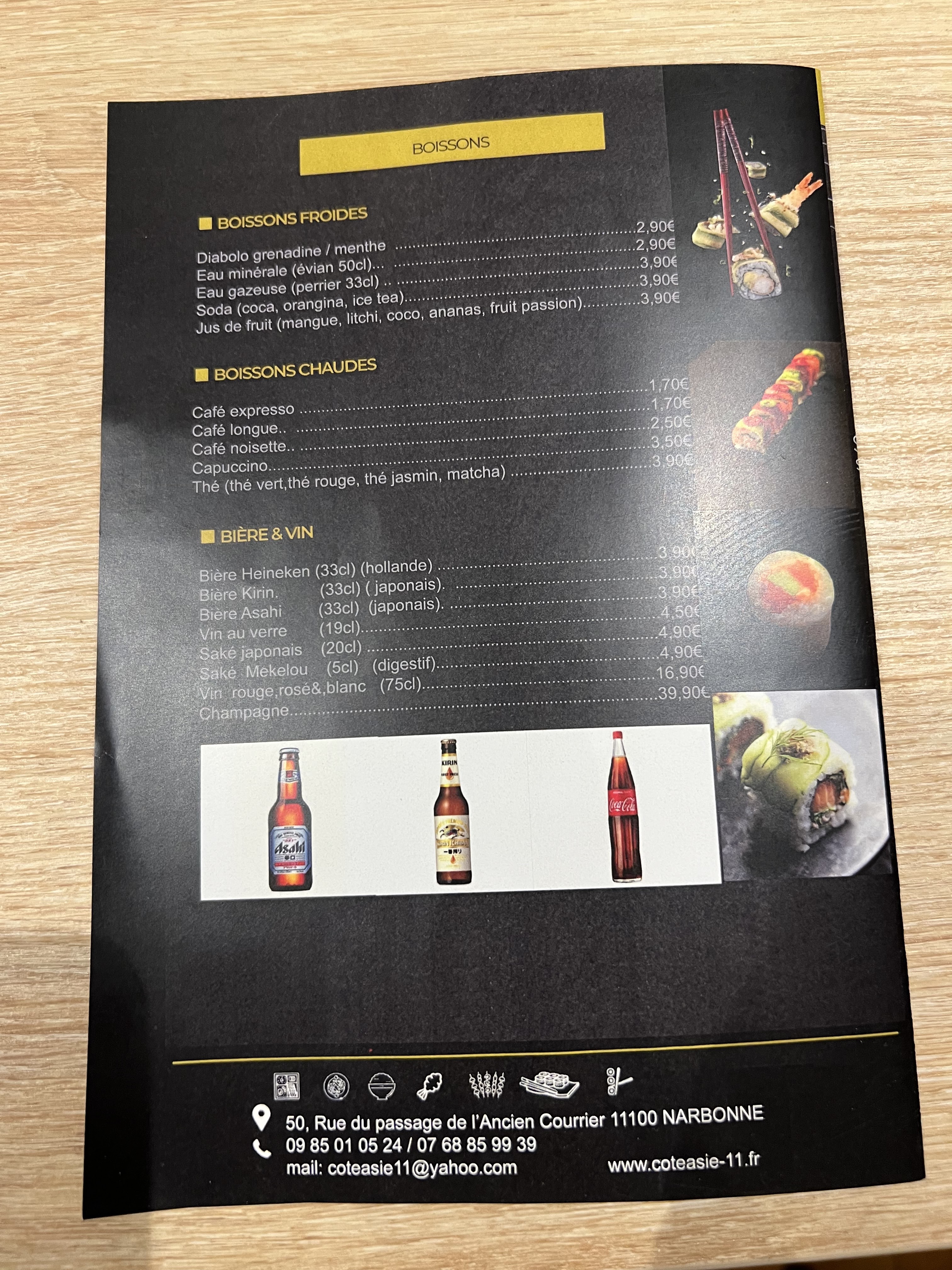 Nous vous remercions avoir choisir notre restaurant côté Asie Narbonne À bientôt.