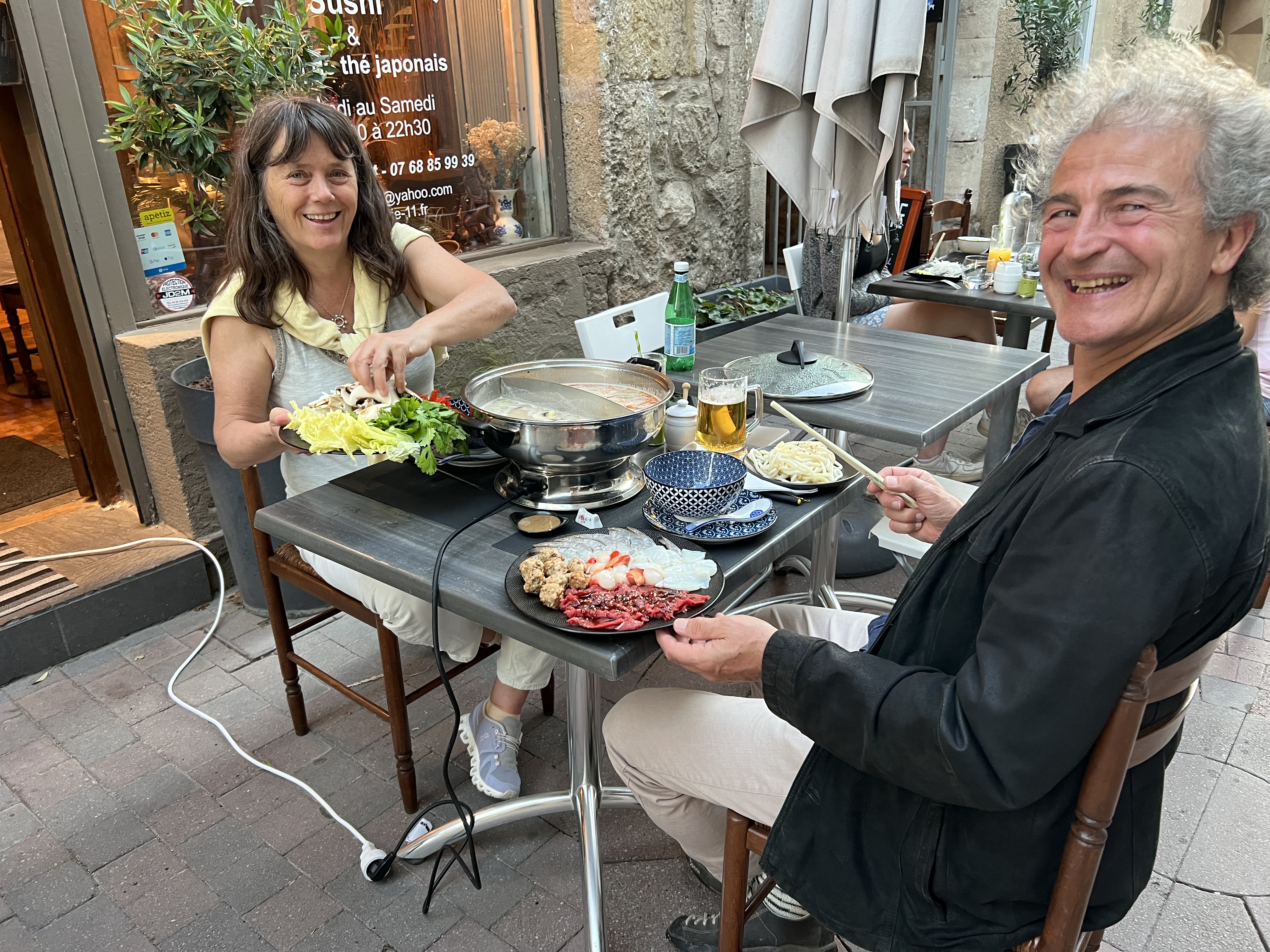 Très bonne expérience. Nous avons commandé une fondue japonaise, délicieuse, généreuse, odorante, composée d'ingrédients d'une grande fraîcheur. L'ambiance du restaurant est agréable avec sa douce musique, son aquarium et son couple de perruches callopsite. Les propriétaires sont d'une grande gentillesse, souriants et attentifs. Avons bien aimé également la banane flambée au saké et la salade de mangues au dessert.