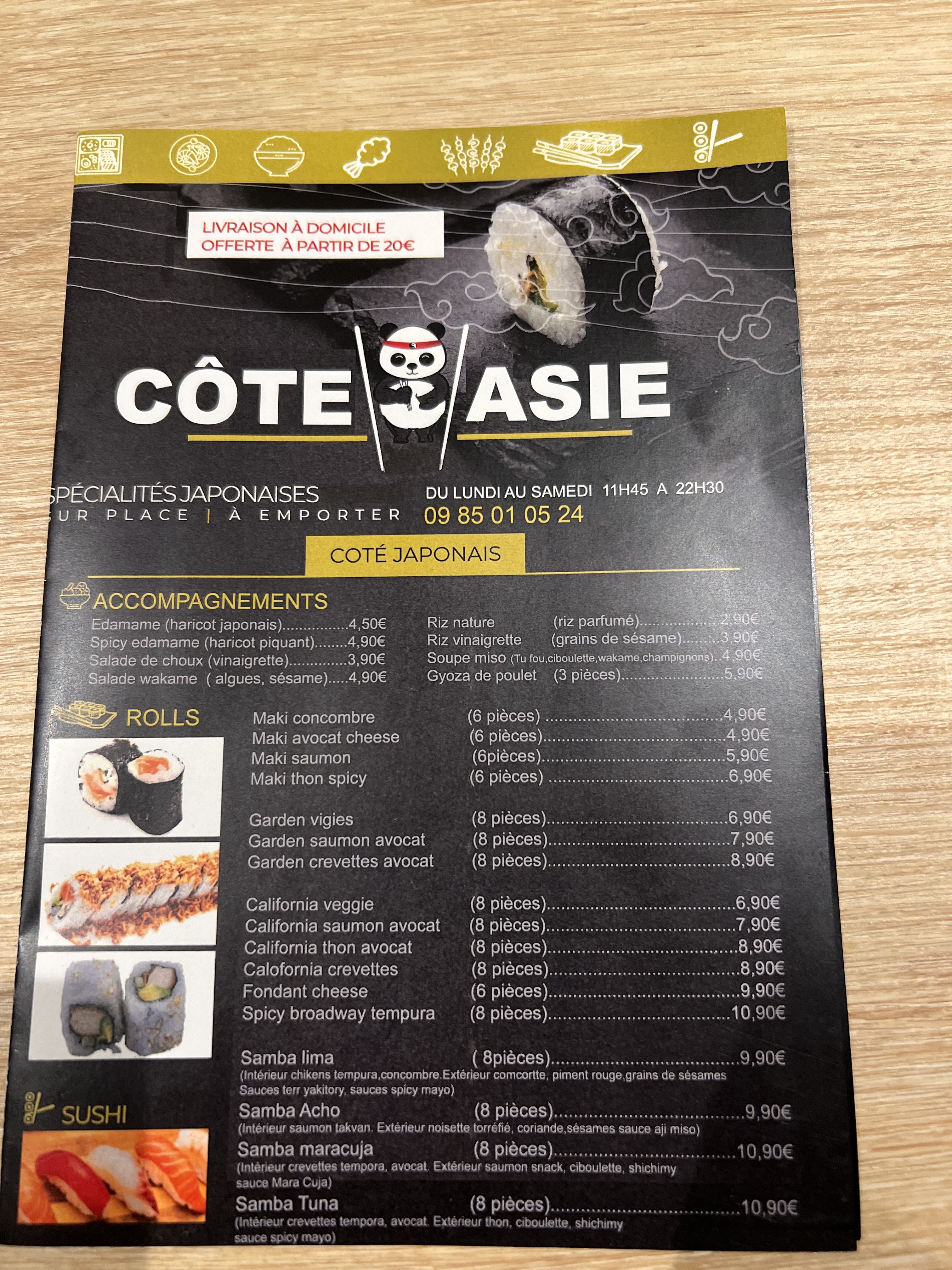 Nous vous remercions avoir choisir notre restaurant Côté Asie. À très vite.