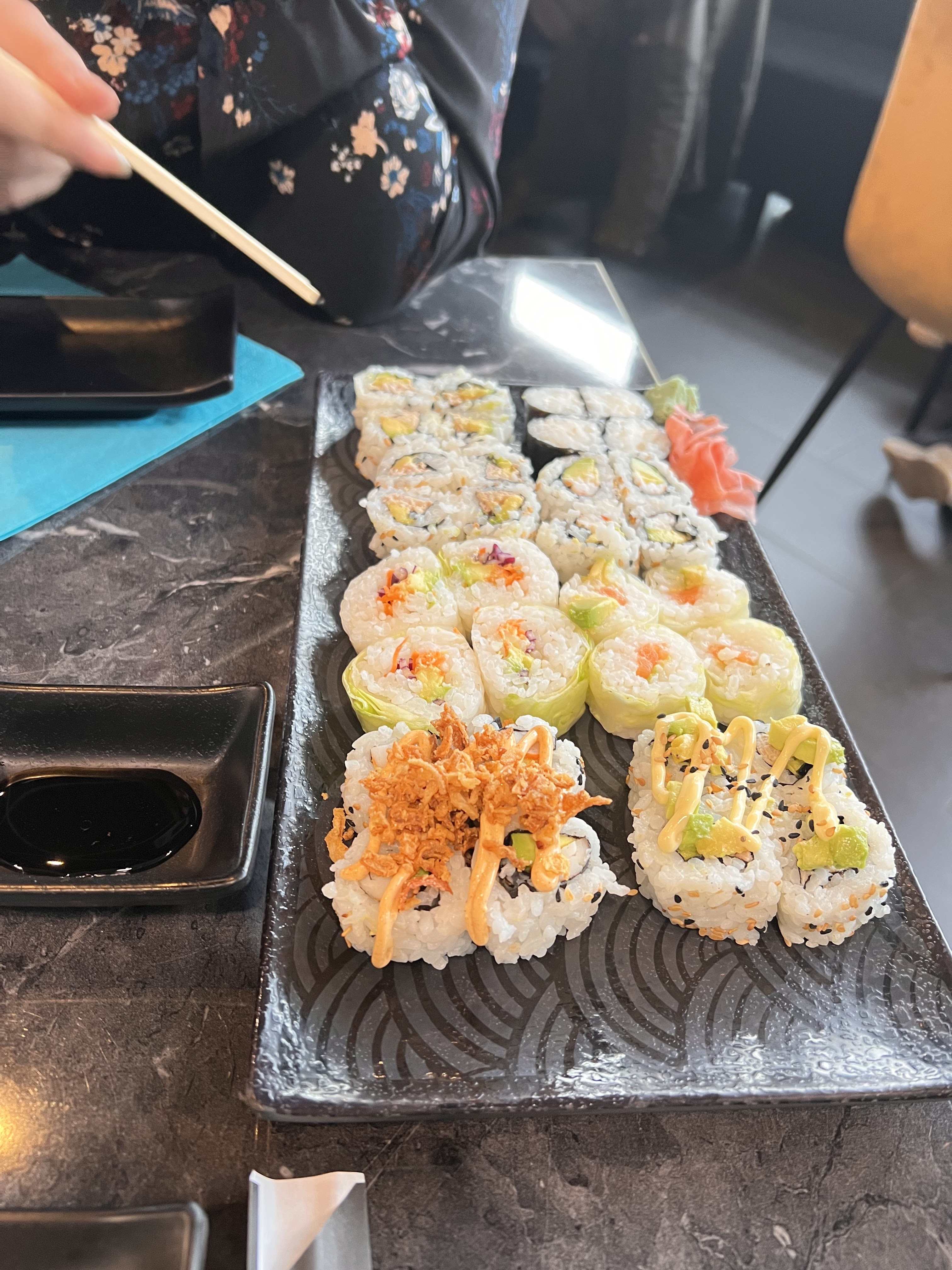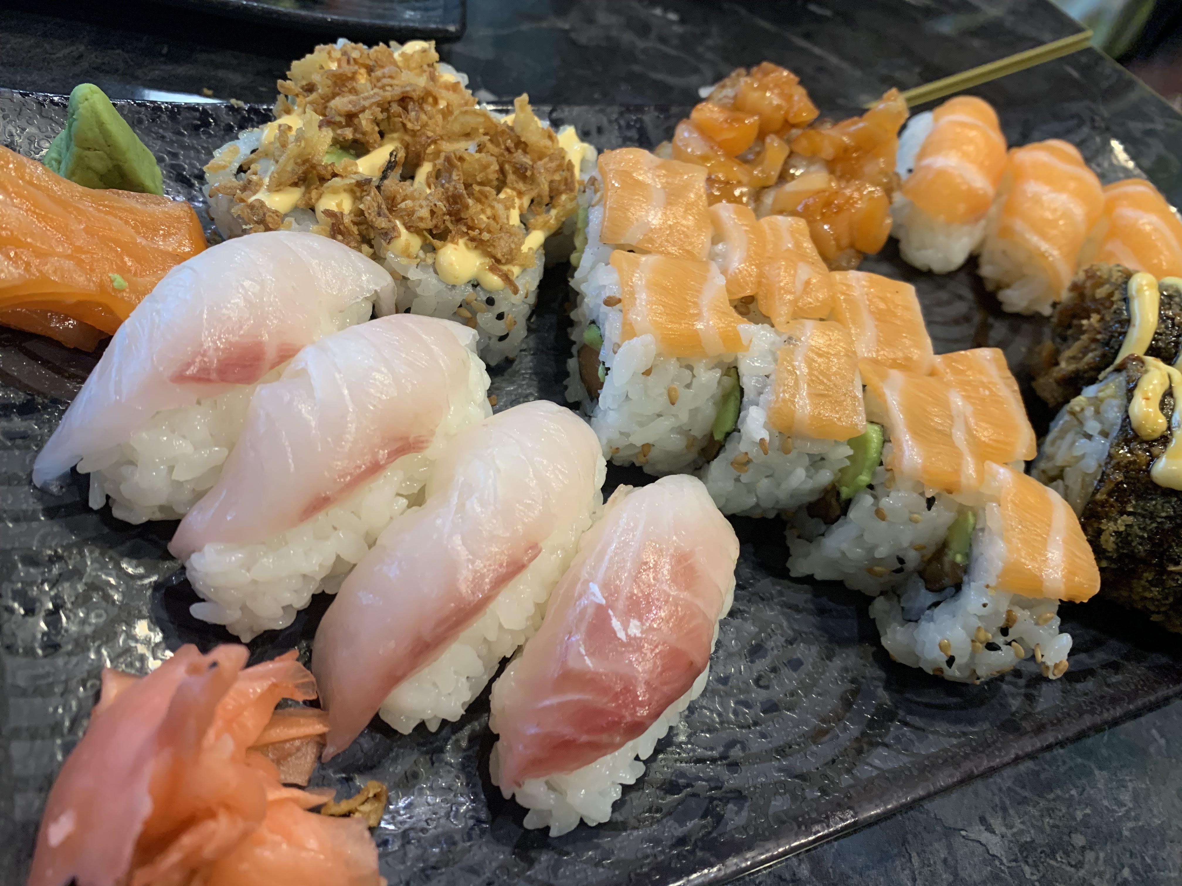 Je ne vous conseille absolument pas ce restaurant. Augmentation des prix du menu mais portions beaucoup beaaaaucoup plus petites : presque aucun poisson n'est visible dans les maki, sushi avec 95% de riz et 5% de poisson ( aussi épais qu'une feuille) et surtout taille des sashimi vraiment ridicule comparé à avant. Alors oui c'est à volonté mais quand même, on s' attendait avec la grosse augmentation du prix à avoir au minimum la même qualité/quantité qu'avant, et ce n'est clairement plus le cas... C'est dommage , vous avez perdu deux clients de plus .