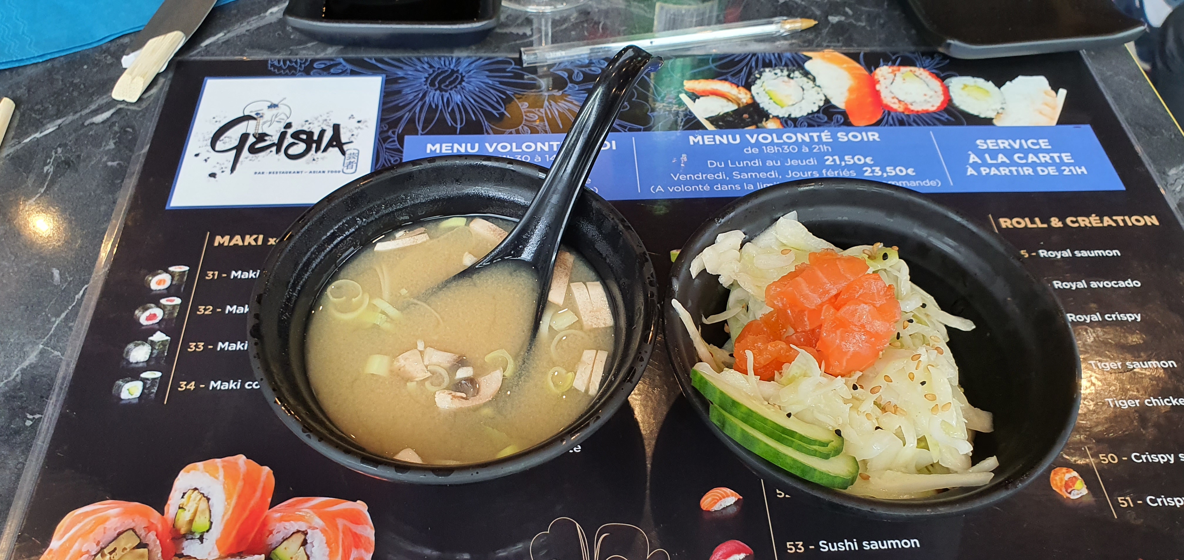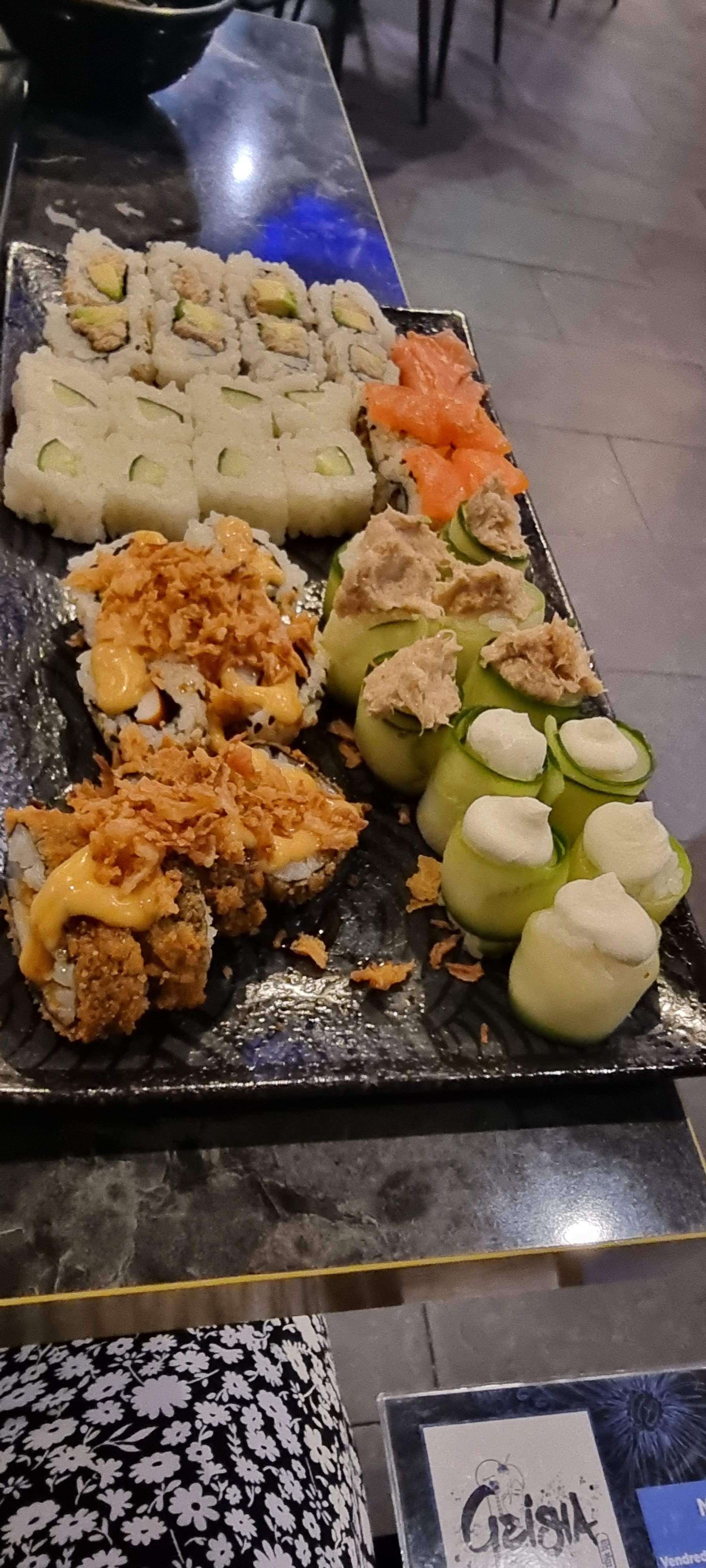 Première fois à geisha, service rapide et agréable, visuellement très bien présenté, qualité bien pour le prix ! Franchement 21,50€/prs c’est un très bon plan 😉