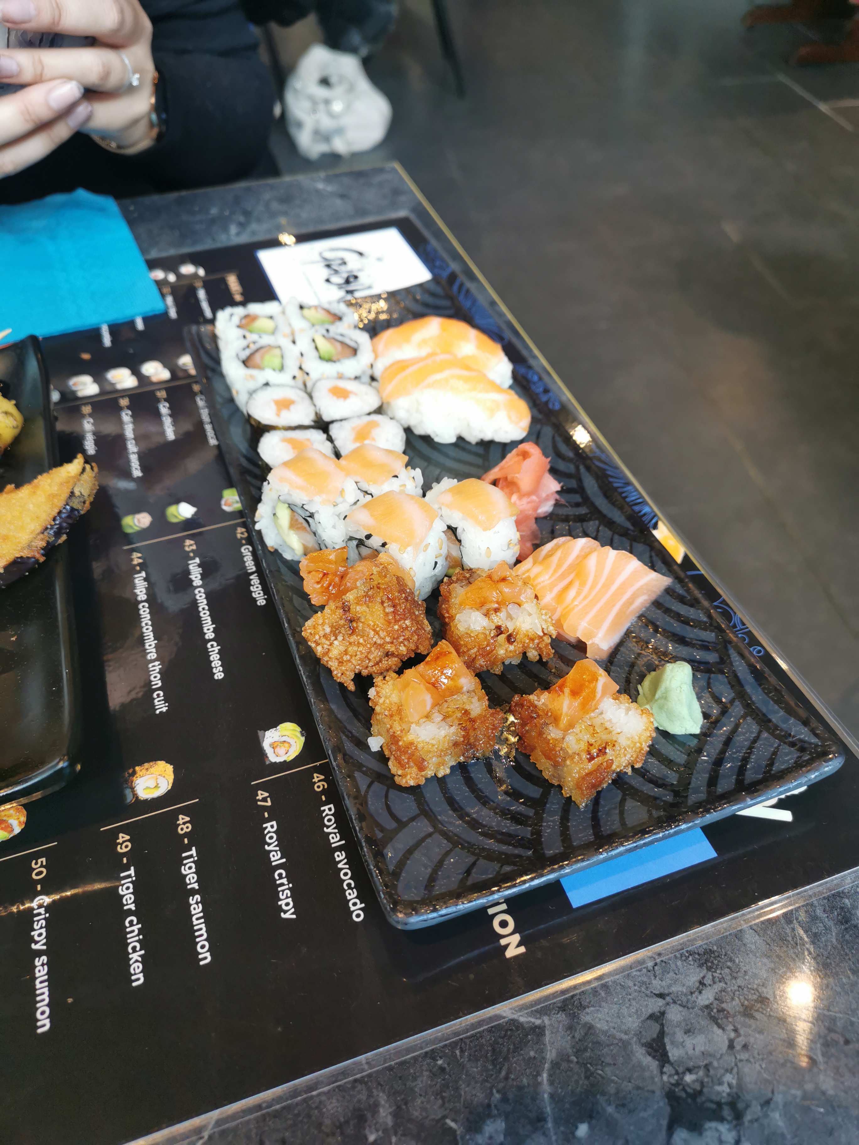 Les sashimis sont délicieux. Les sushis et makis sont bons, mais assez petits comparés à d'autres restaurants japonais. Par contre ils ne prennent pas la carte restau, c'est dommage.