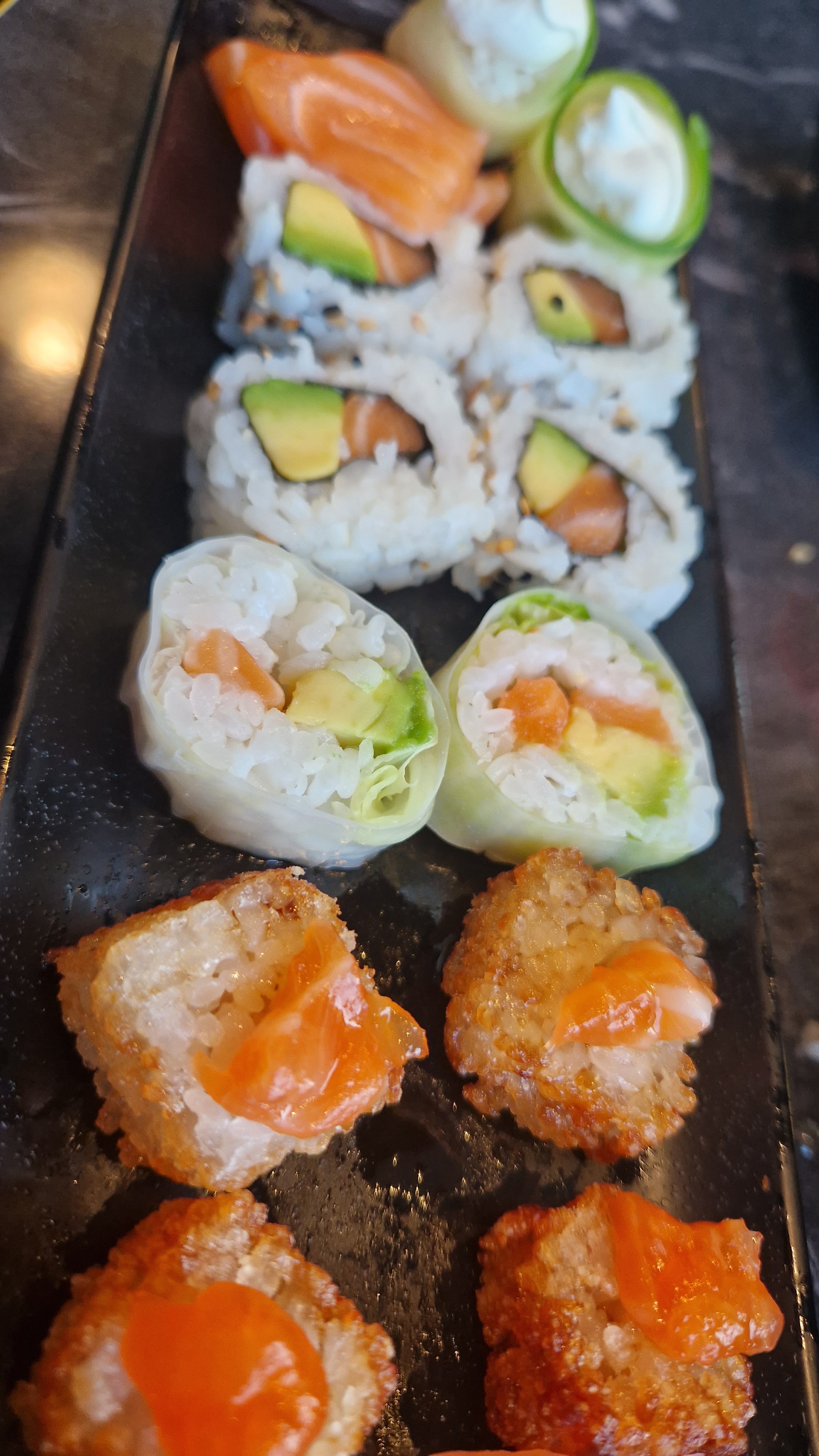 Changement de propriétaire (anciennement Yukito). Testé un samedi soir. Ambiance agréable, tables espacées. A volonté jusqu'à 20h30, beaucoup de choix. 23€50 à volonté les WE. Prix un peu élevé mais la qualité est là. Moins cher en semaine & le midi. Les fritures sont bonnes, avec du goût, bémol pour les tempuras de légumes (courgette panée), il n'y a plus les tempuras crevettes dommage 😌! Les sushi très bons ! Moins de riz donc moins bourratifs, les sushis créations; bonne découverte !! Les Brochettes boeuf fromage au top ! Je testerai le Bo bun la prochaine fois ! La musique était un peu forte par moment 🤷♀️. Réservation conseillée ++ car salle pleine à 20h. Les serveurs sont sympathiques 🙂.