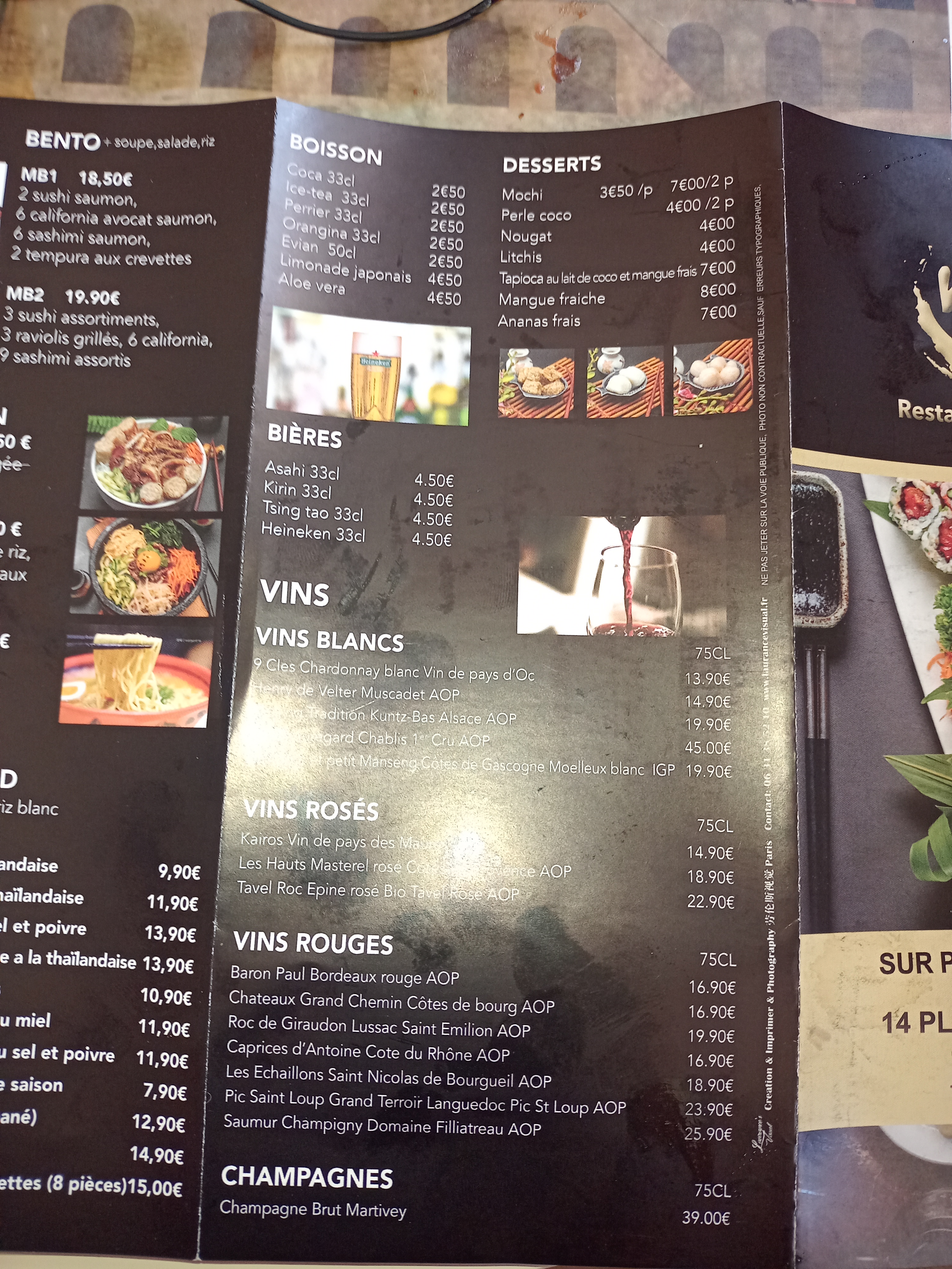 Posté le 10/05/2022 à 04:51"Superbe restaurant japonais et coréen, la carte propose un vaste choix de plats, sushis, desserts , bières, limonades, japonais et également du vin, les proportions sont généreuses et le personnel très agréable et sympathique. Possibilité de manger sur place en intérieur ou en extérieur ou également de commander à emporter, tout est fait sur place avec des produits frais."